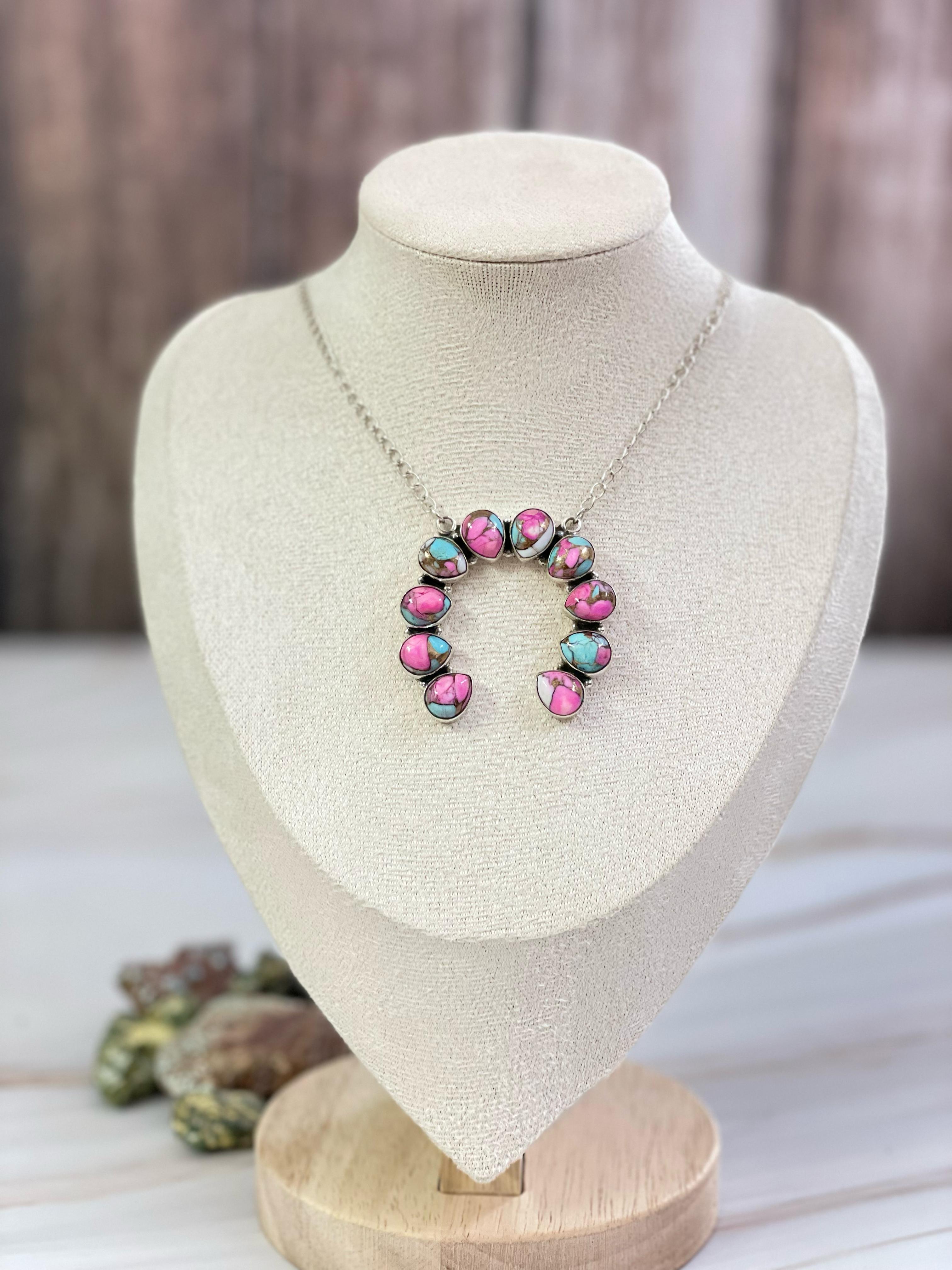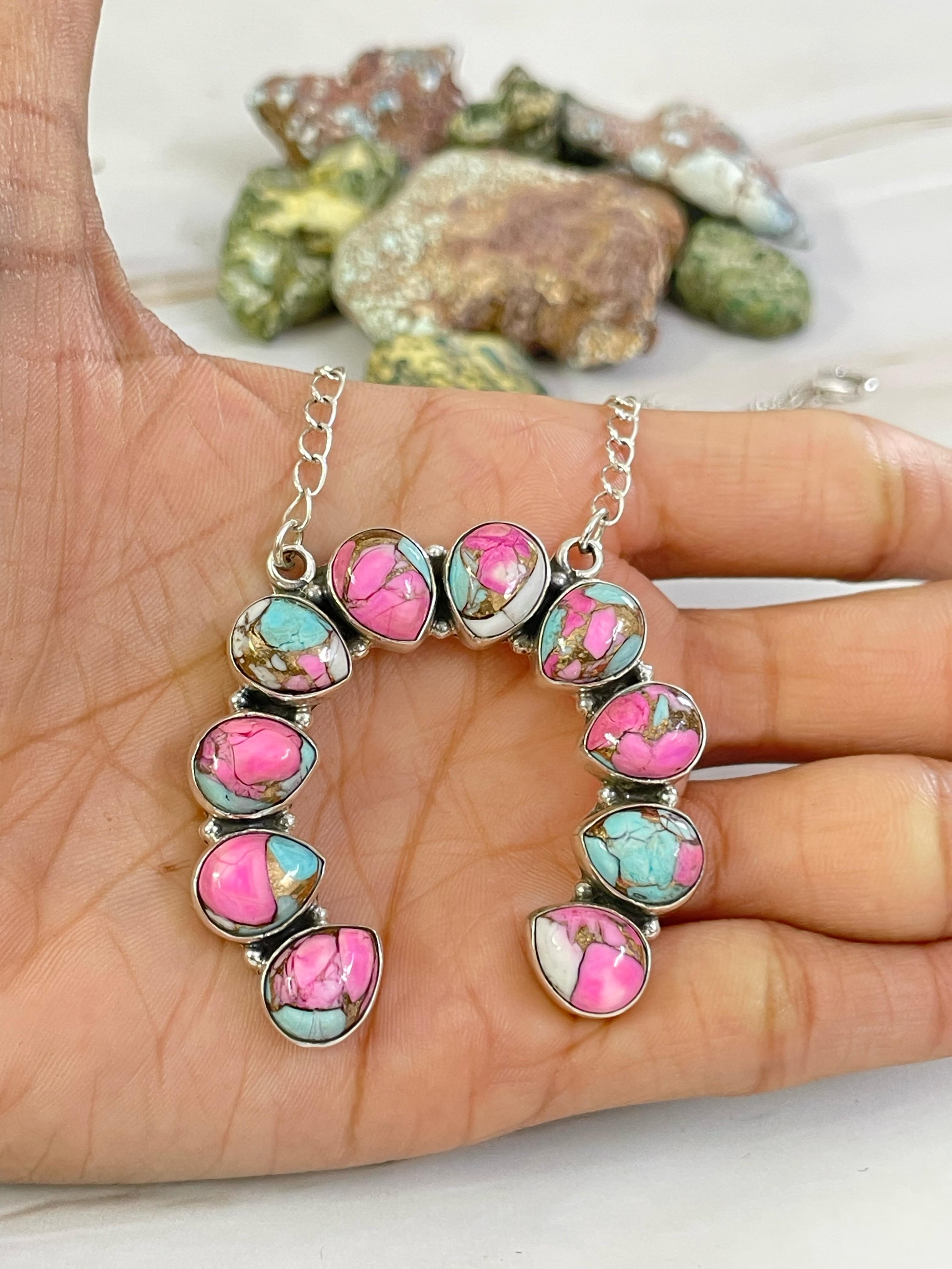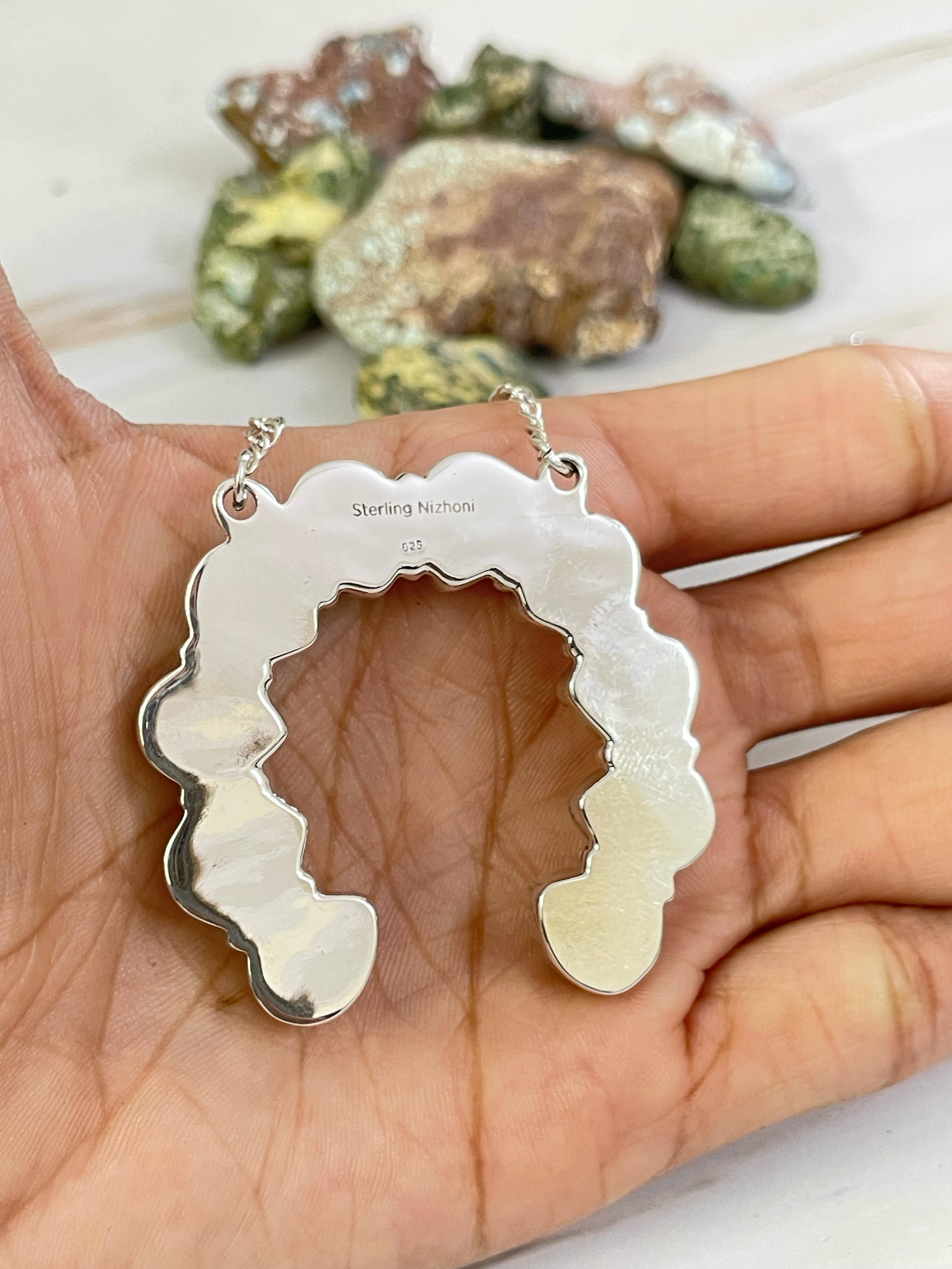 Handmade Sterling Silver Cotton Candy Turquoise Necklace, Signed Nizhoni