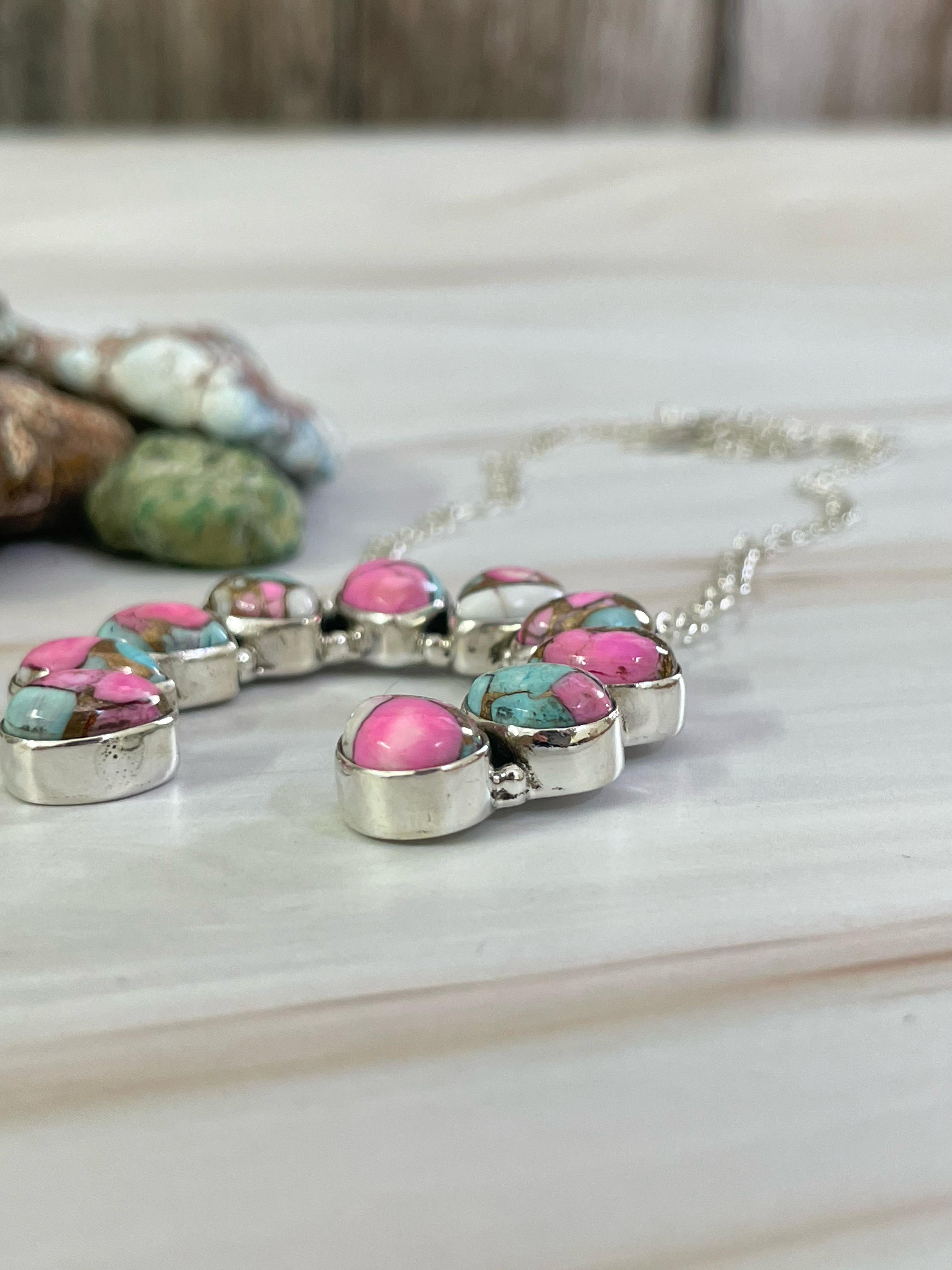 Beautiful Sterling Silver Cotton Candy Turquoise Necklace Measures length approximately 19 - 20 inches and width 1 5/8 inches.