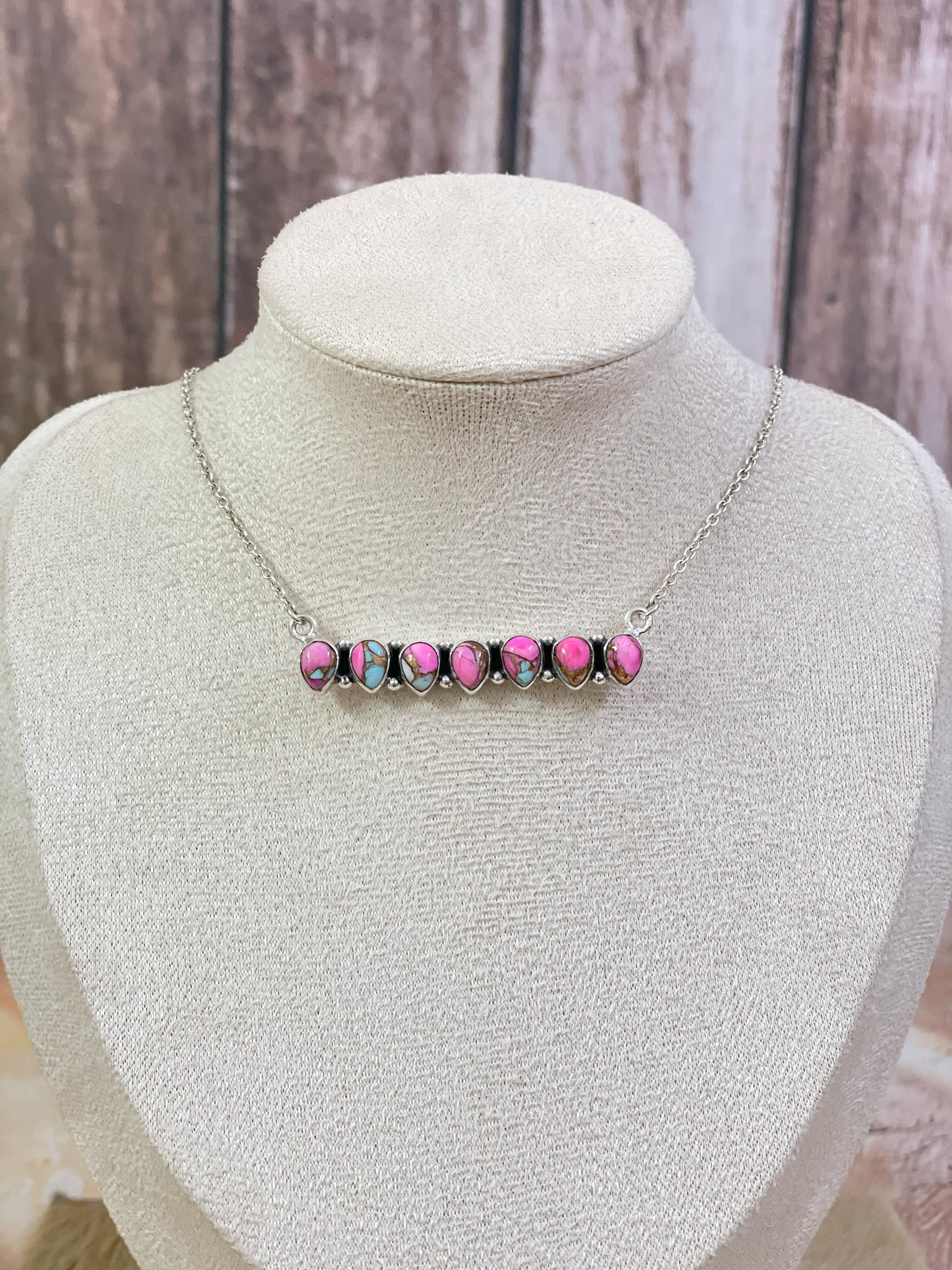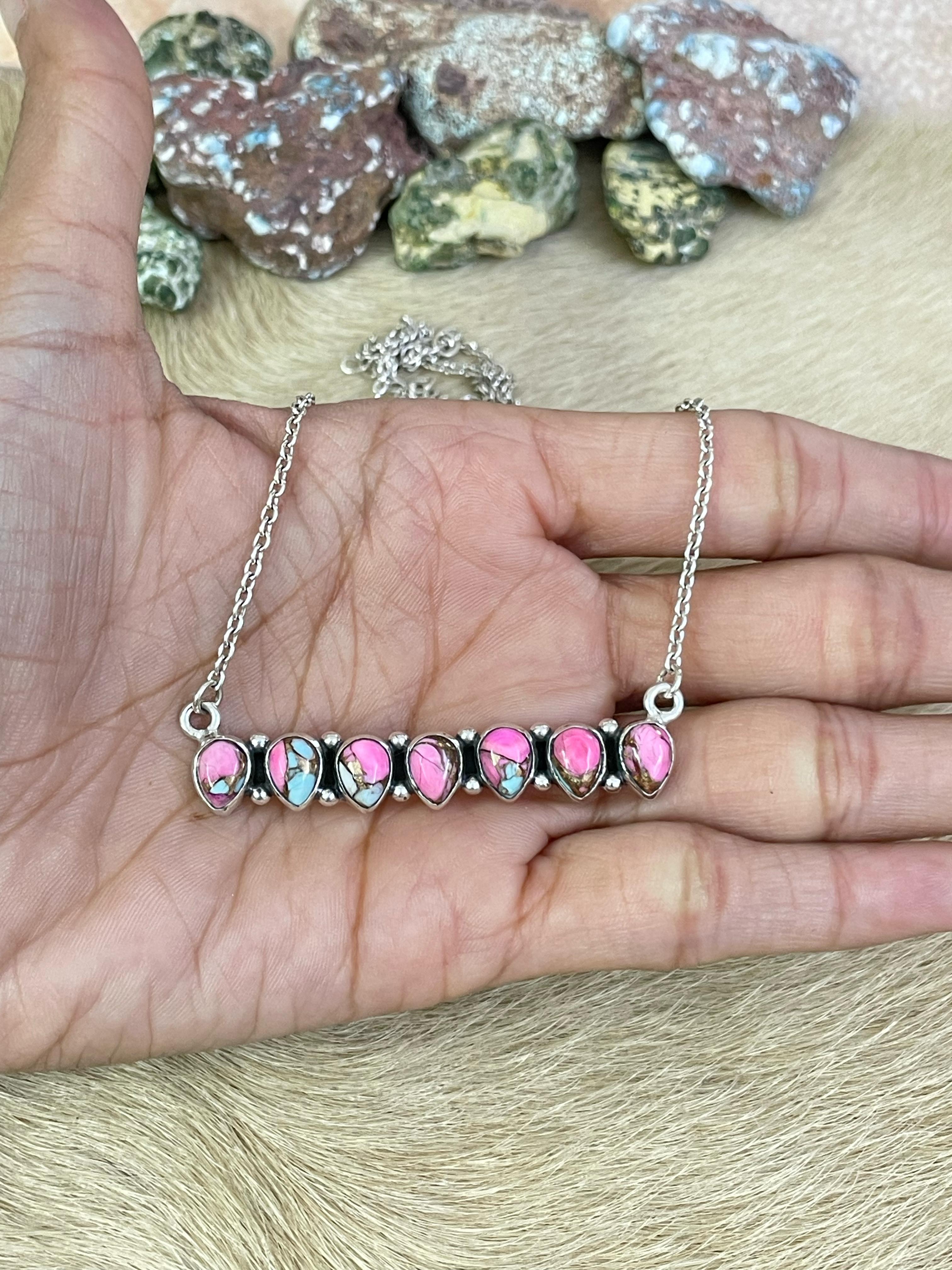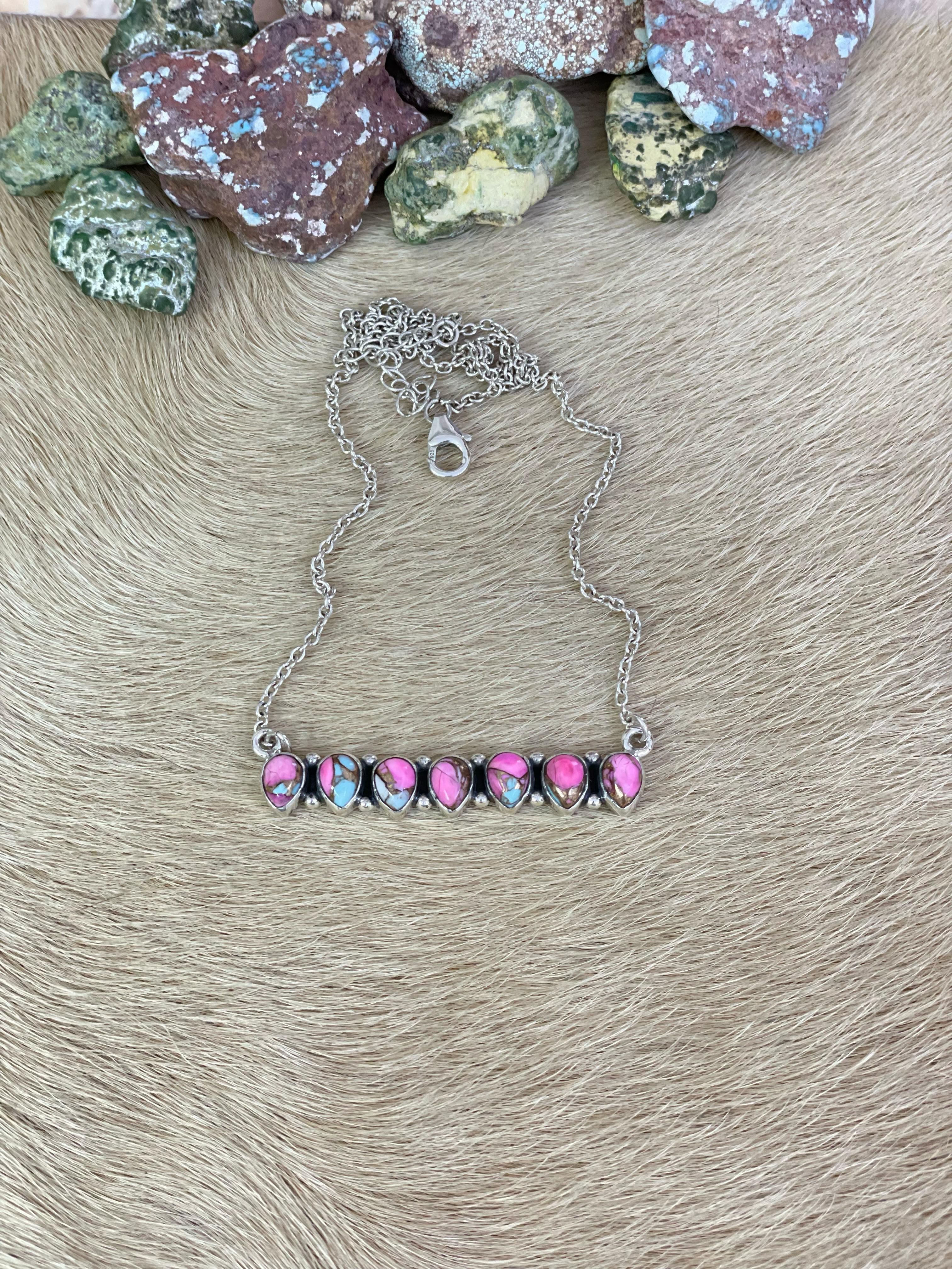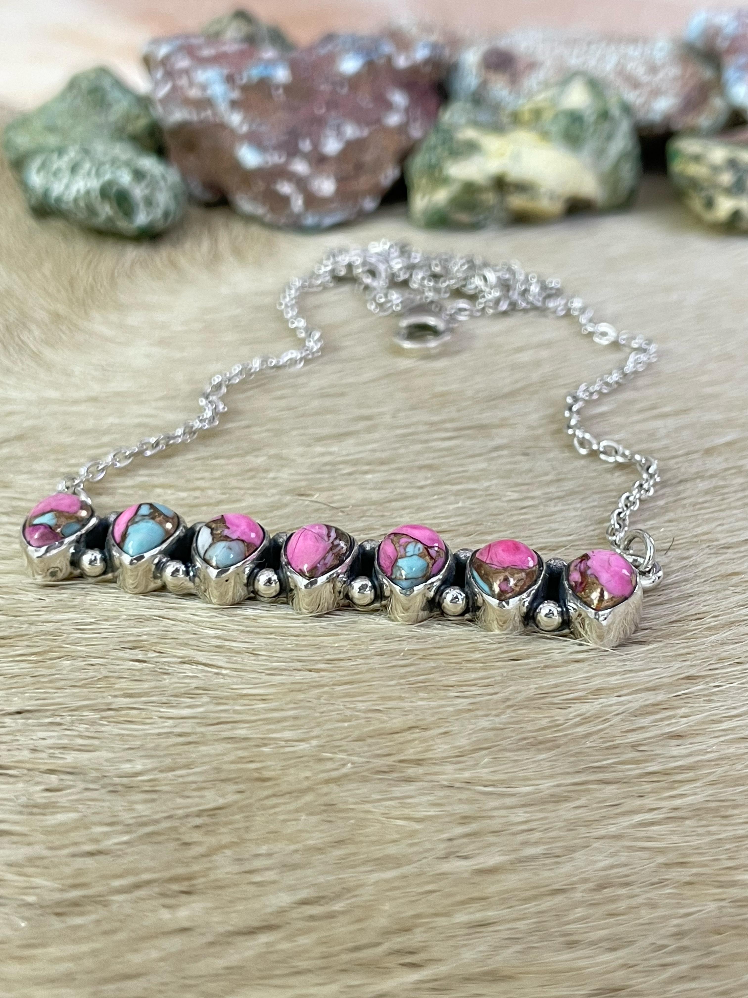 Handmade Sterling Silver Cotton Candy Turquoise Necklace, Signed Nizhoni