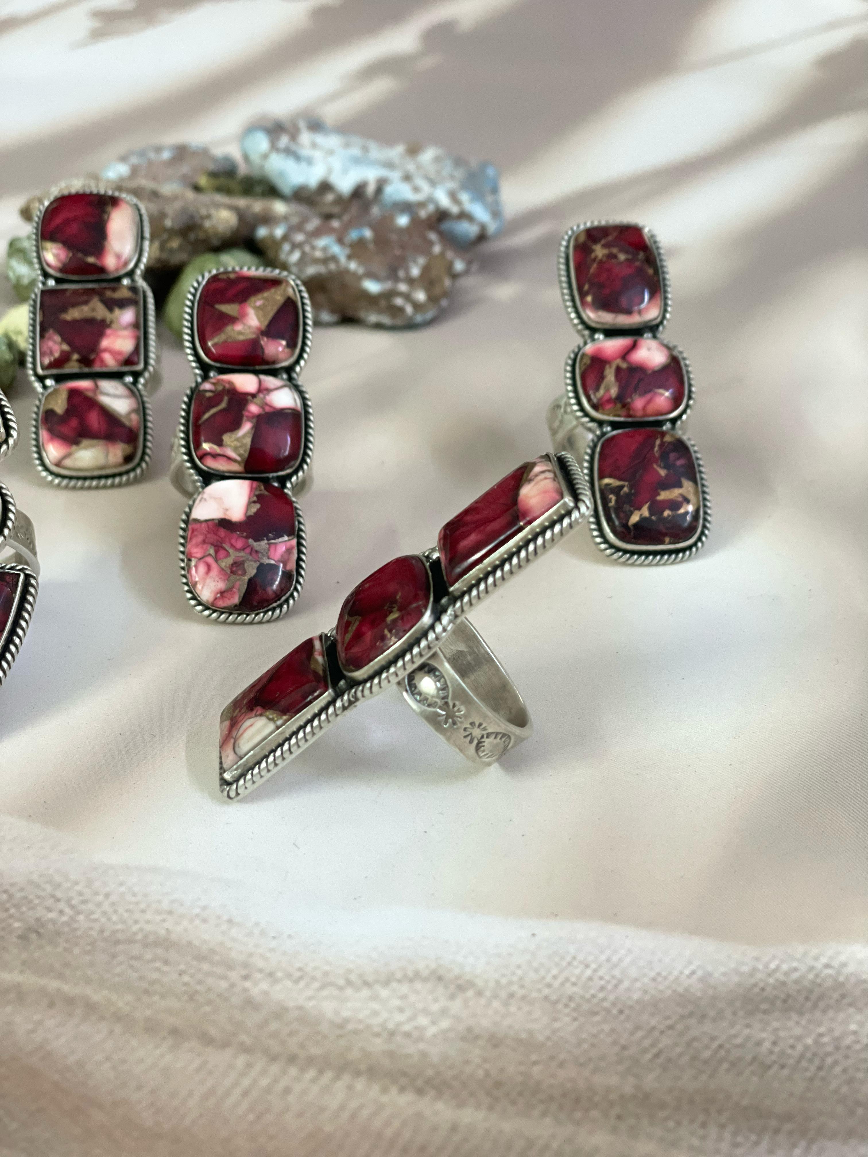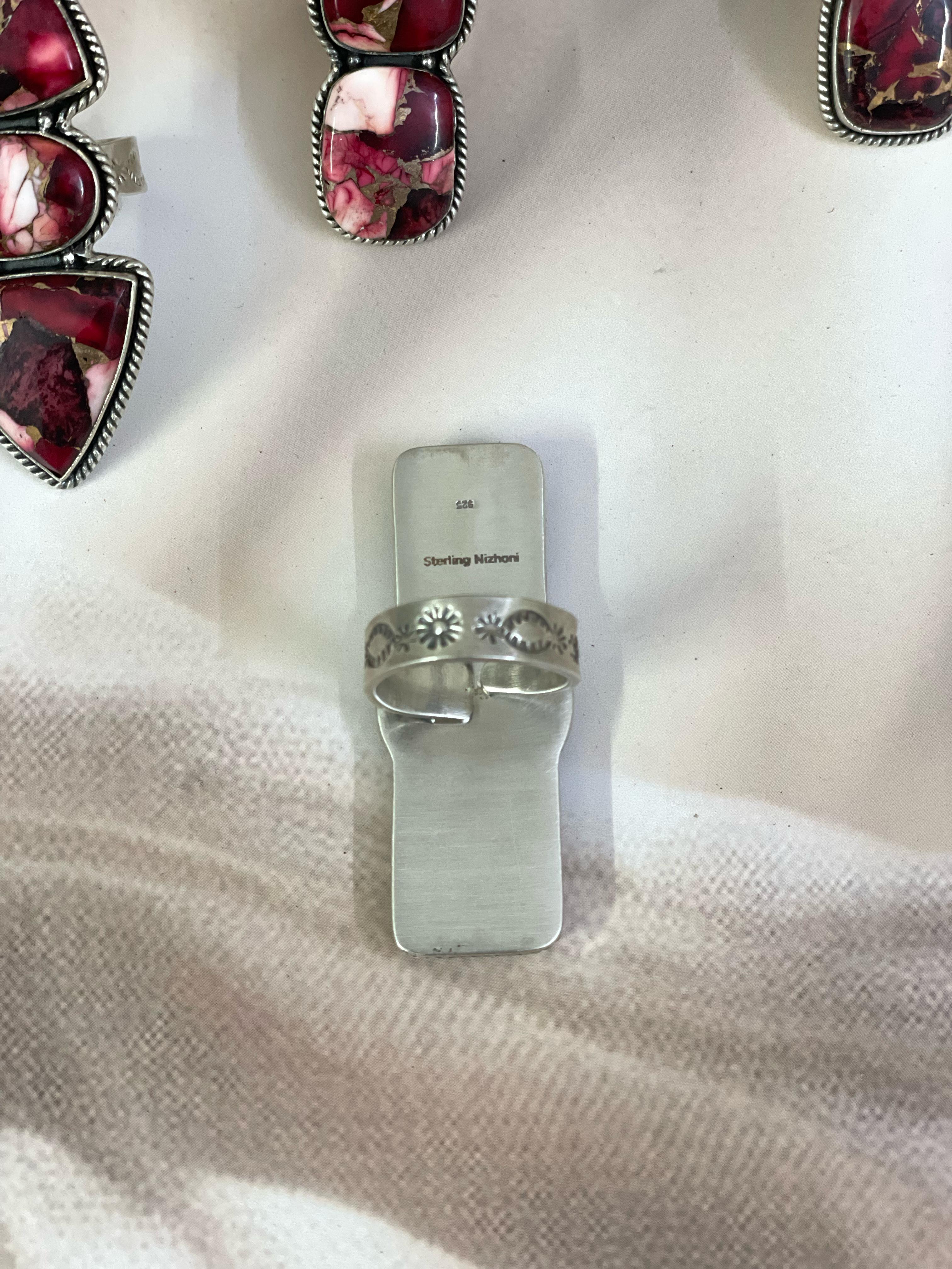 Handmade Sterling Silver Dahlia Rose Adjustable Ring with Signed Nizhoni