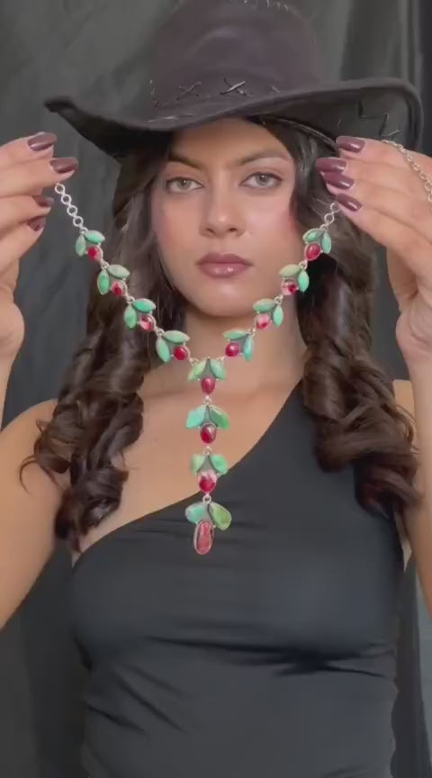 - Main Stone: Dahlia Rose with Emerald Valley Turquoise