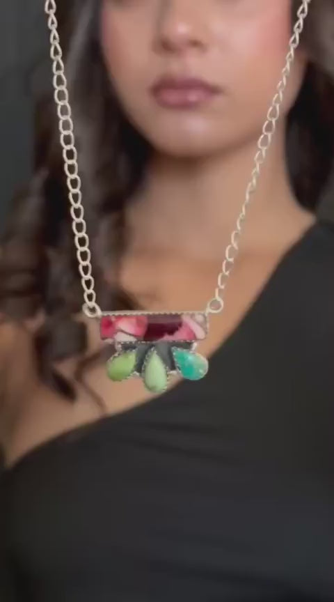 - Main Stone: Dahlia Rose with Emerald Valley Turquoise