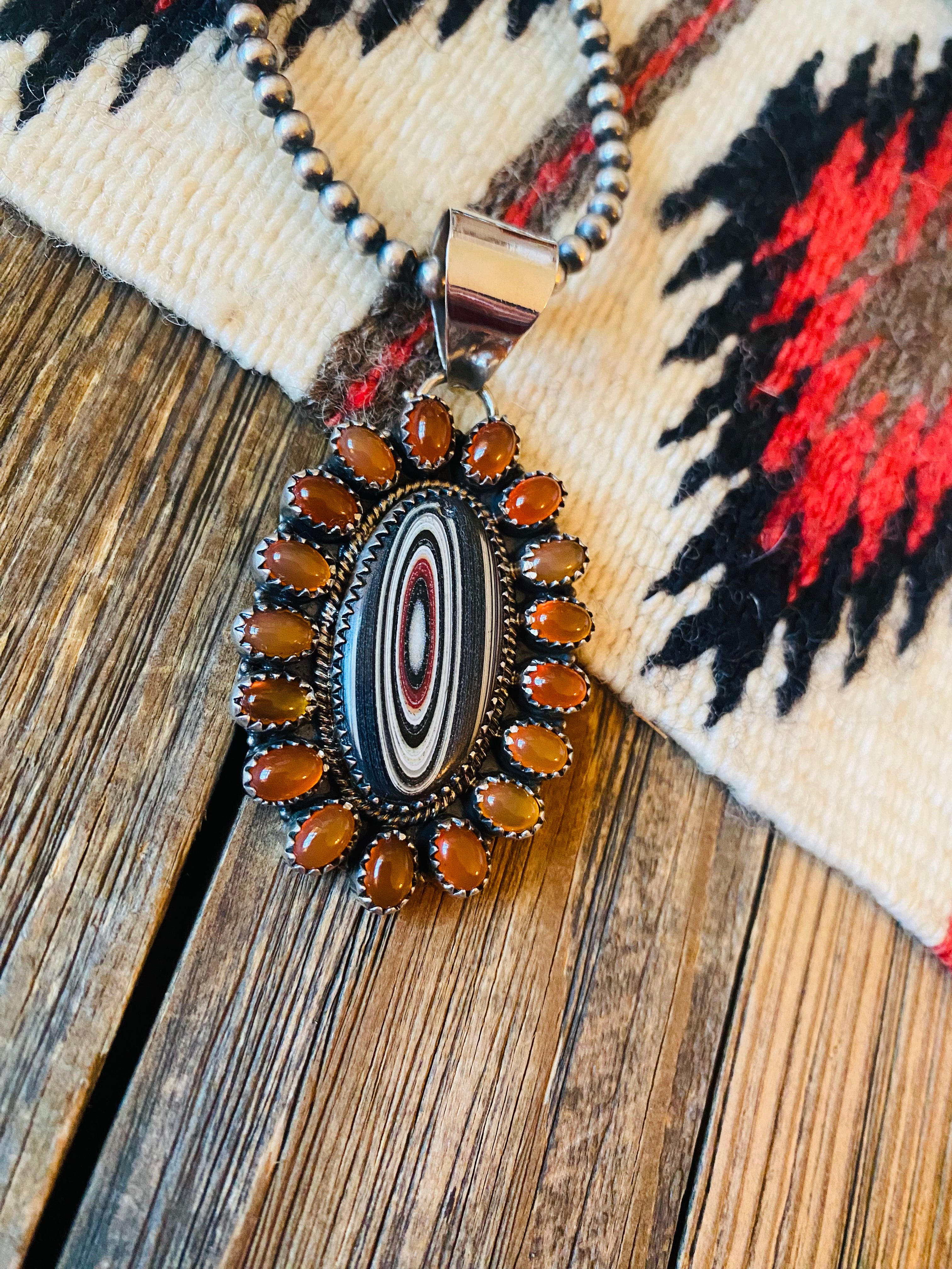 Handmade Sterling Silver, Fordite & Garnet Cluster Pendant