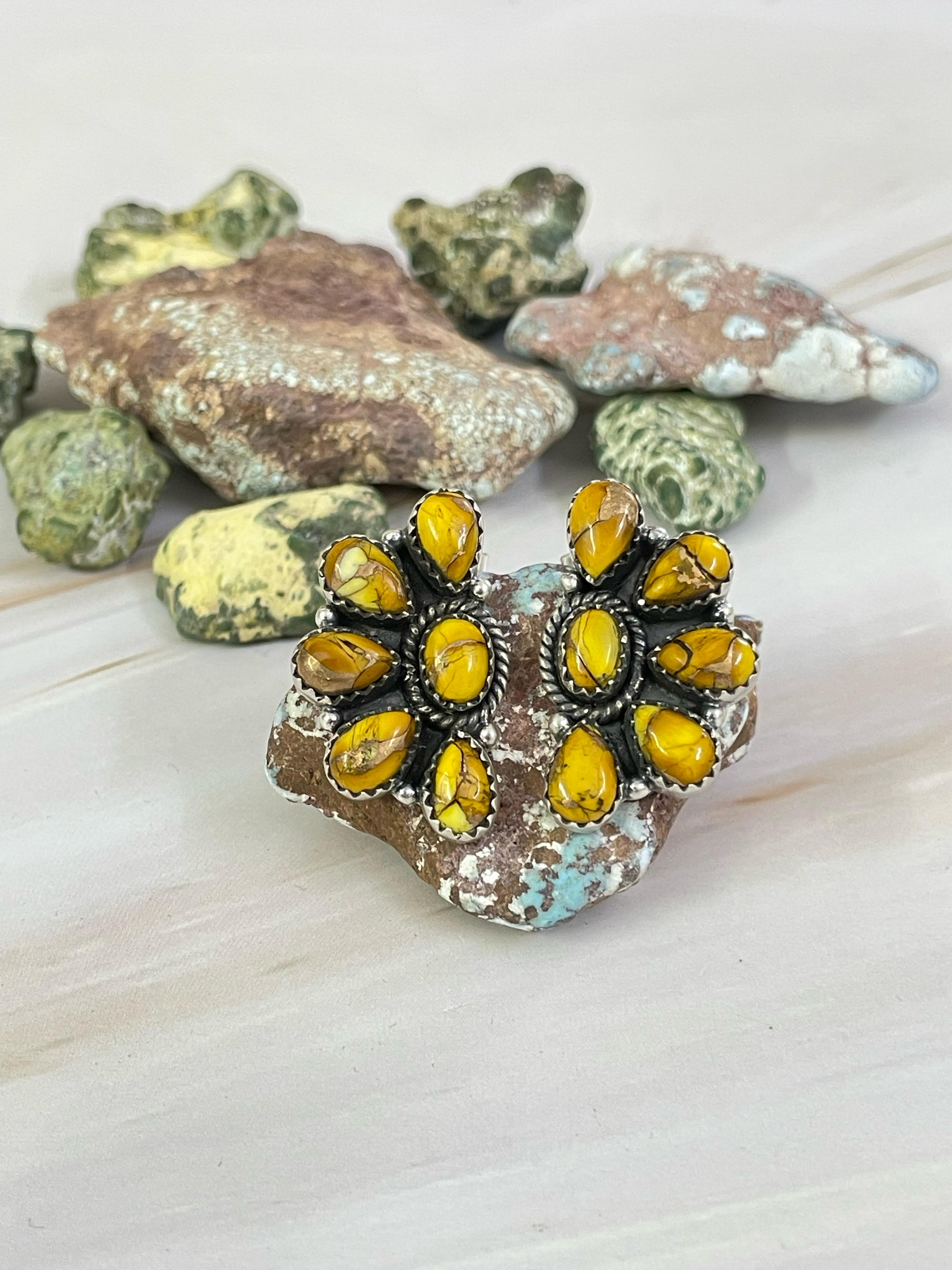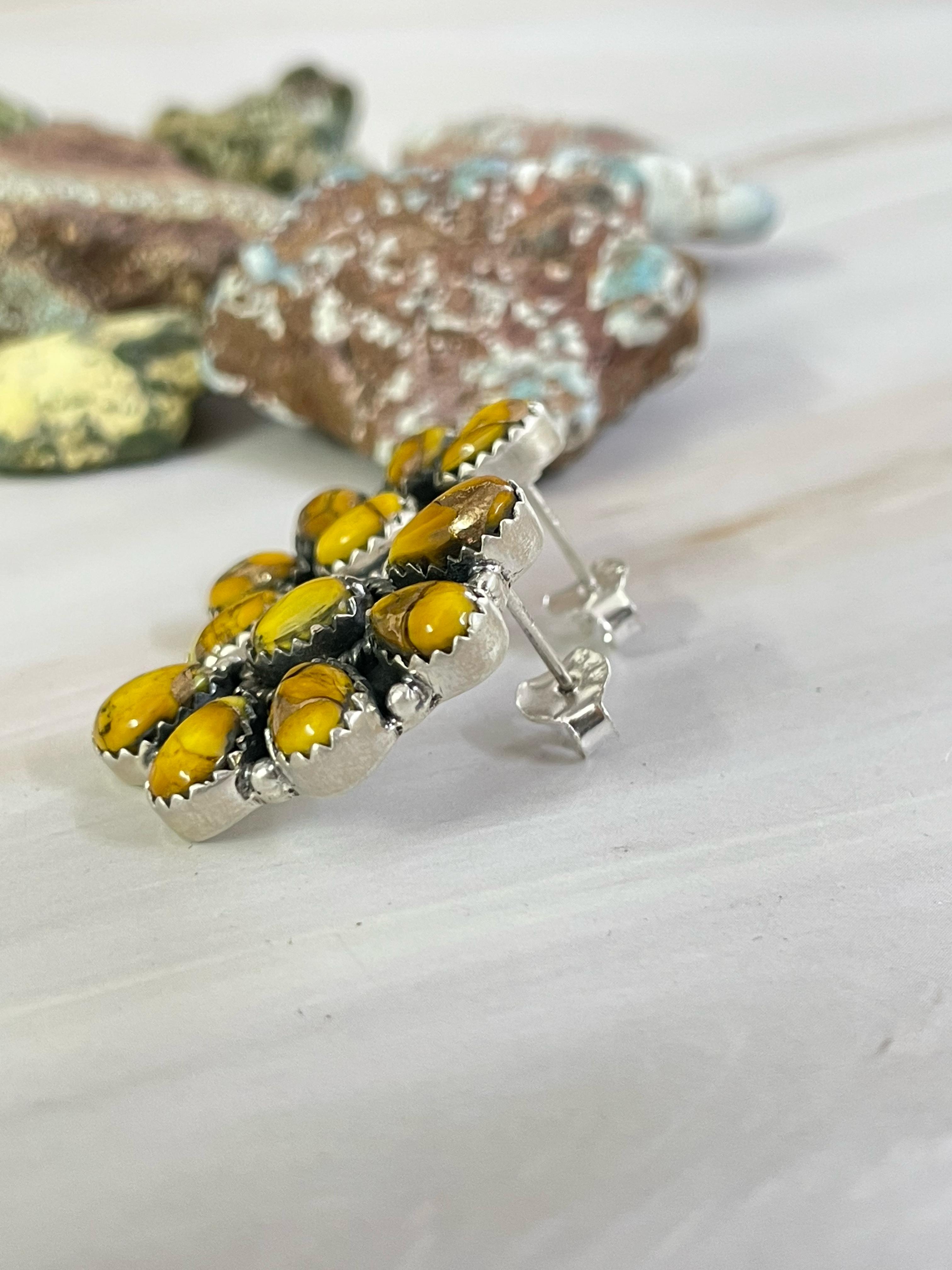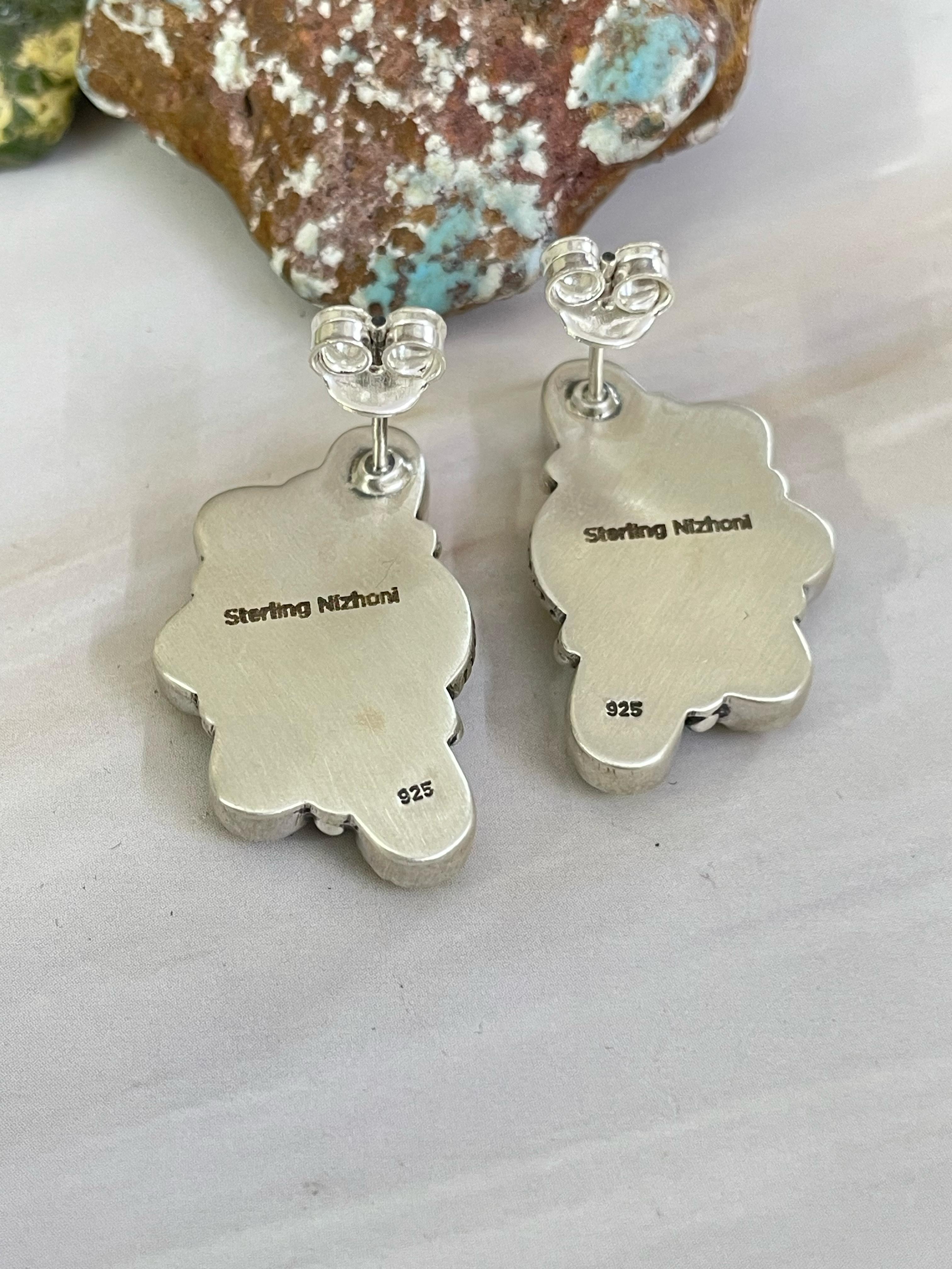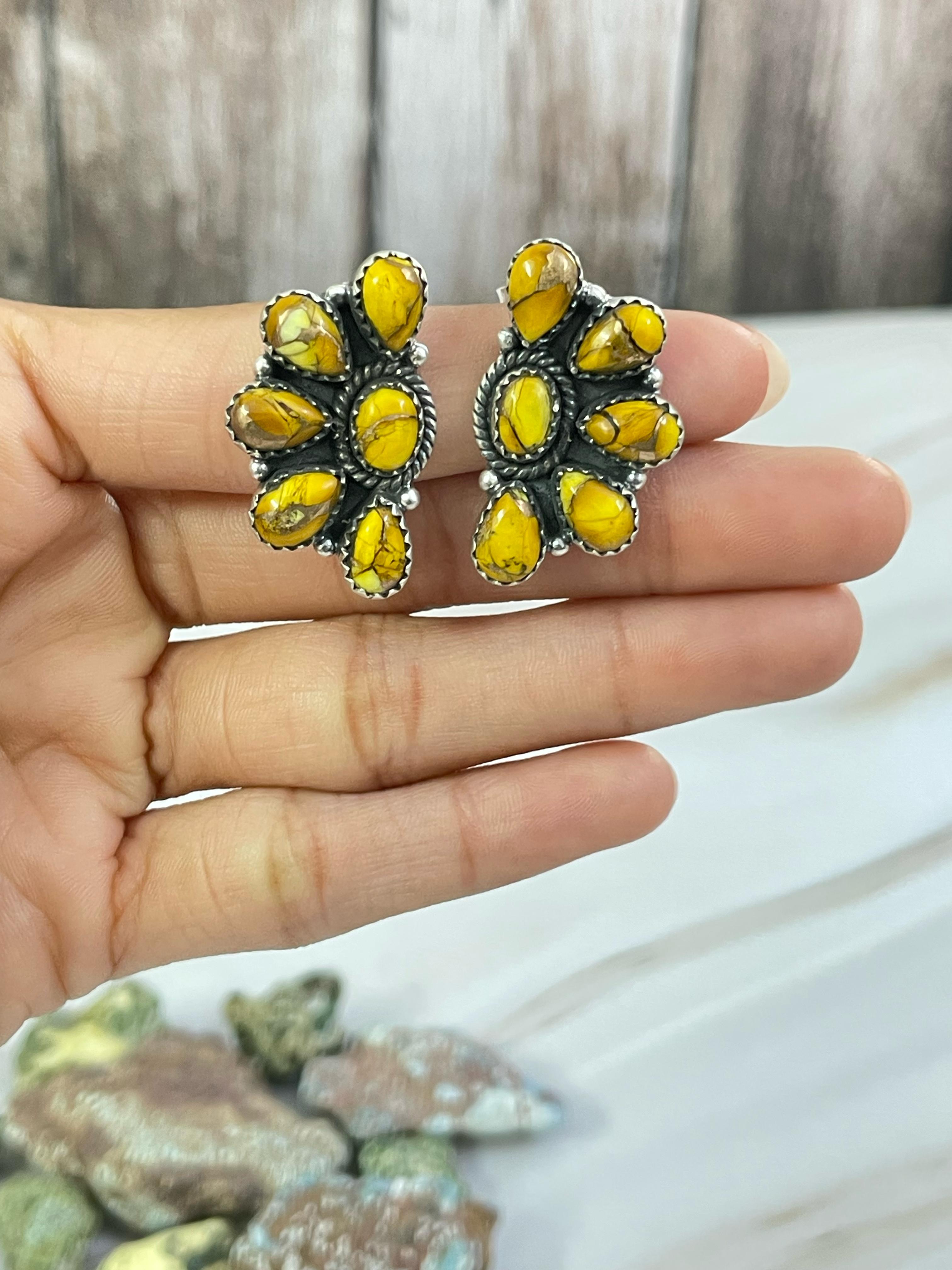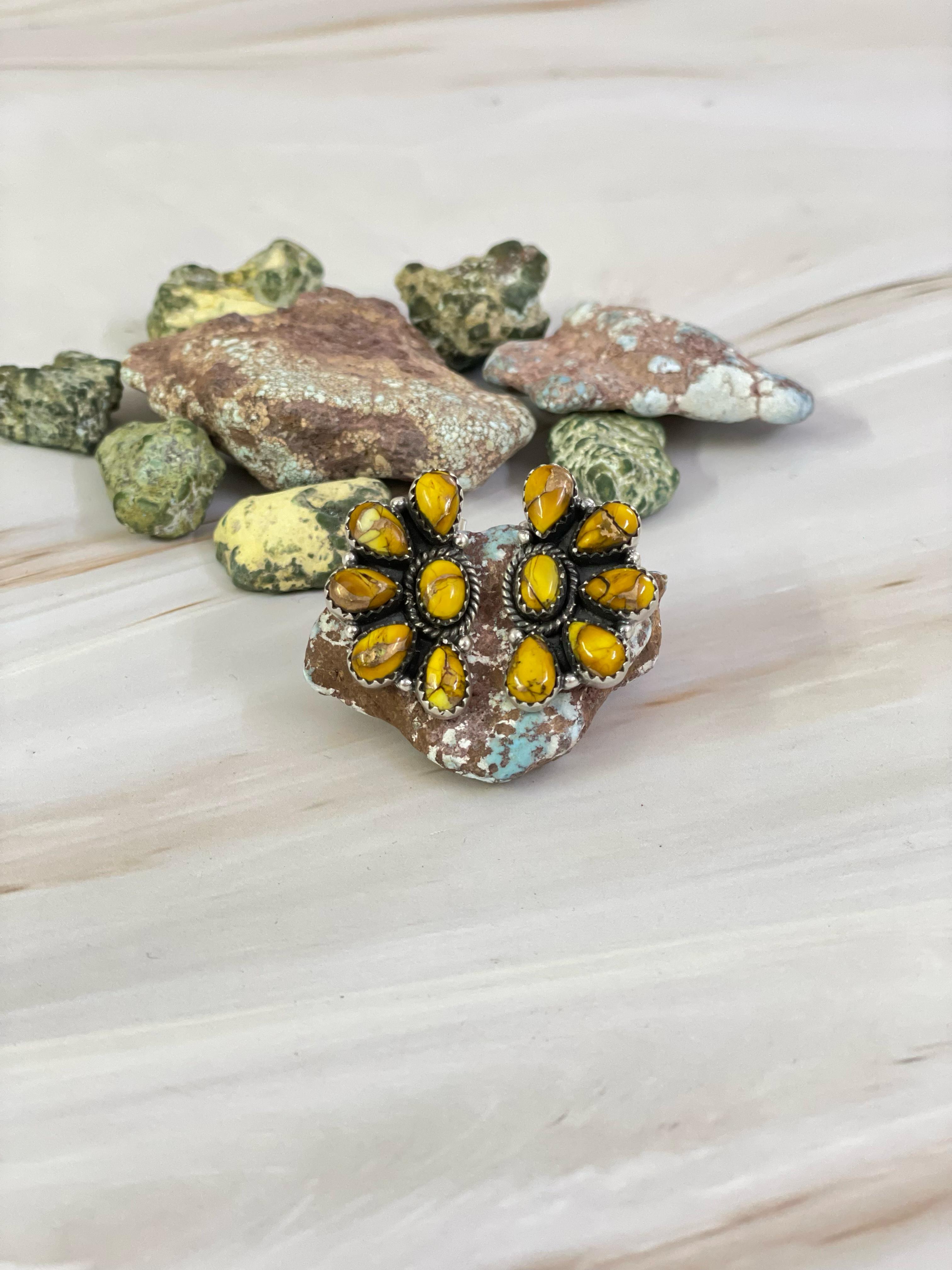 Handmade Sterling Silver Honey Dahlia Post Earrings, Signed Nizhoni