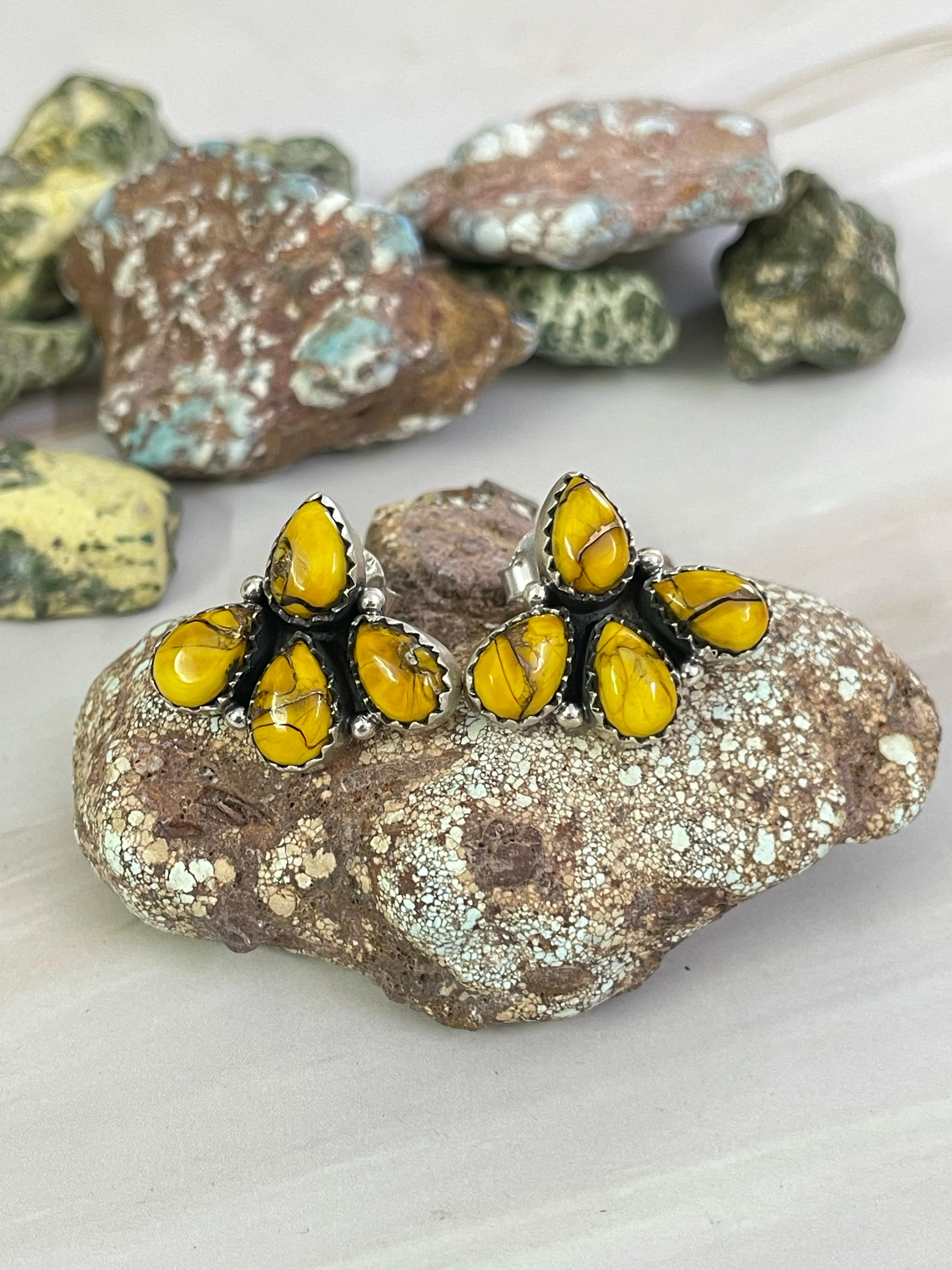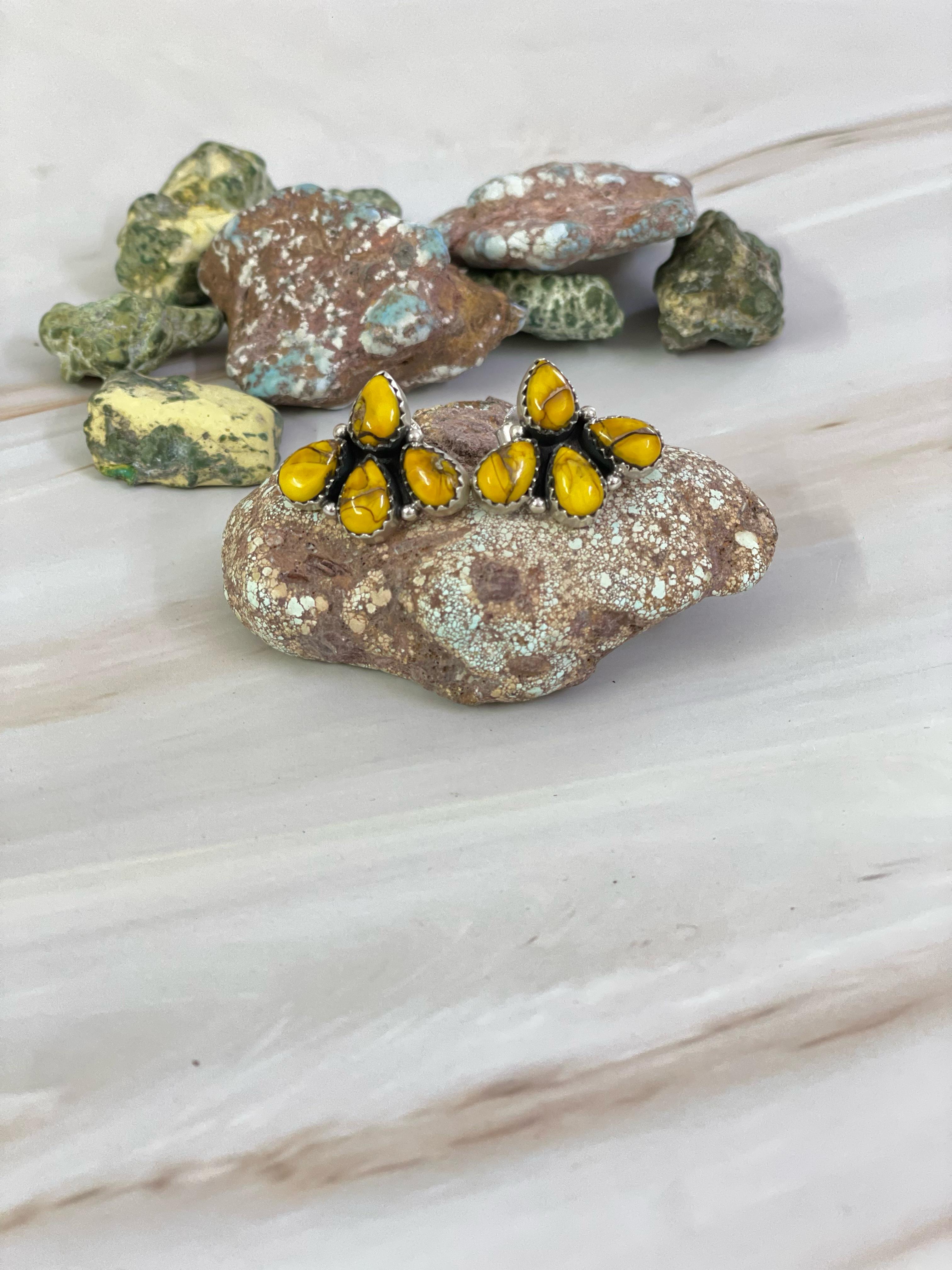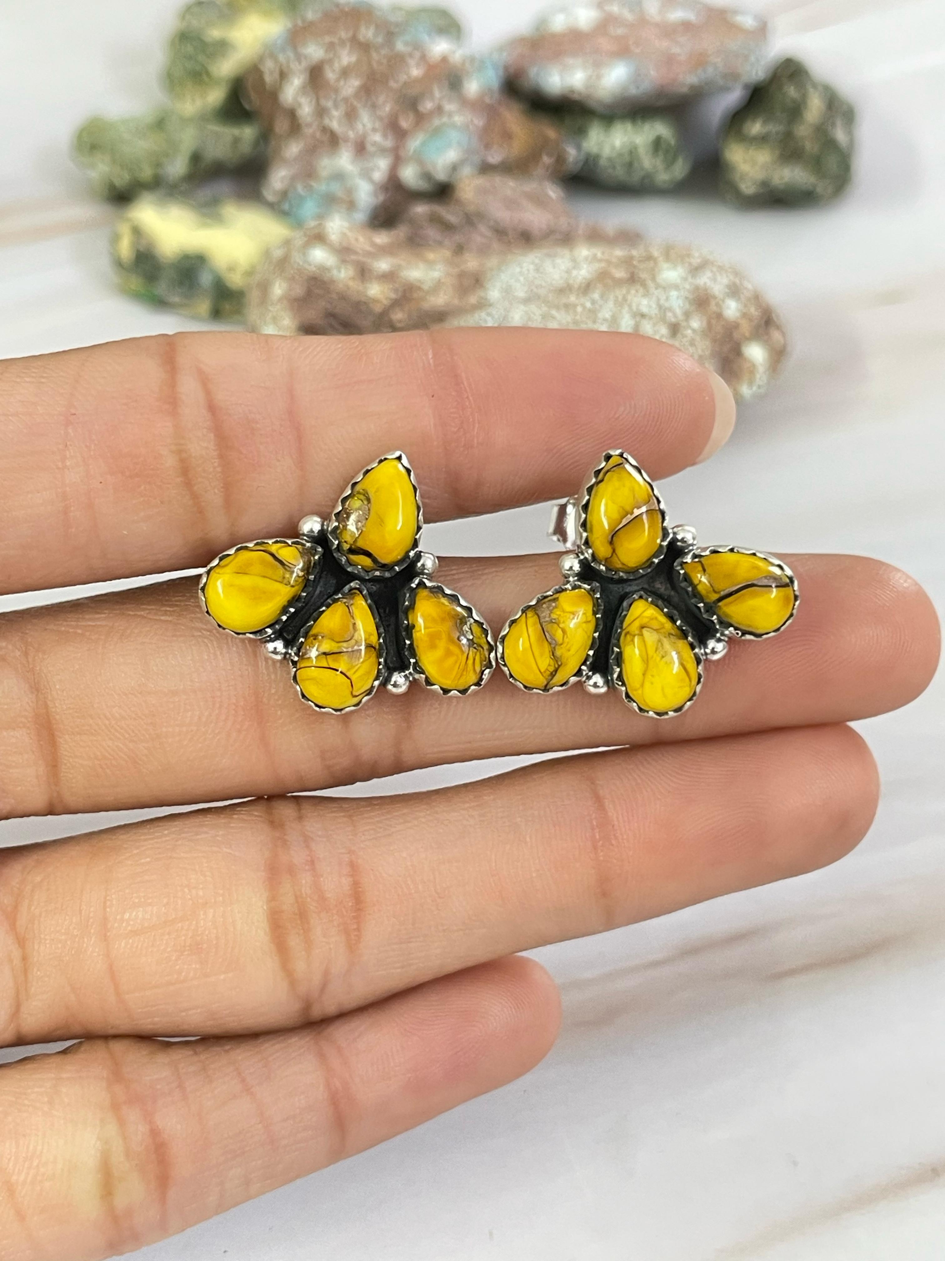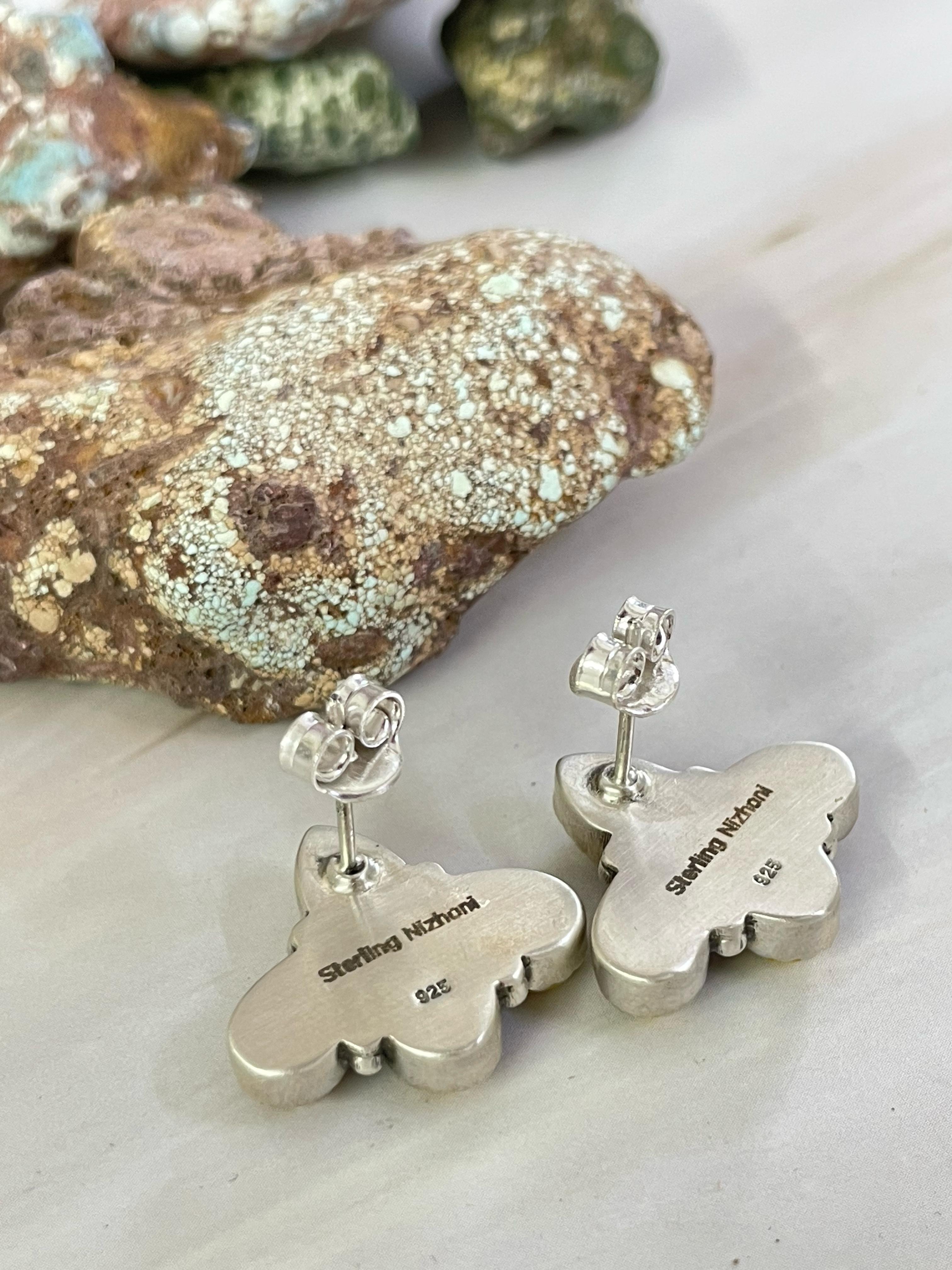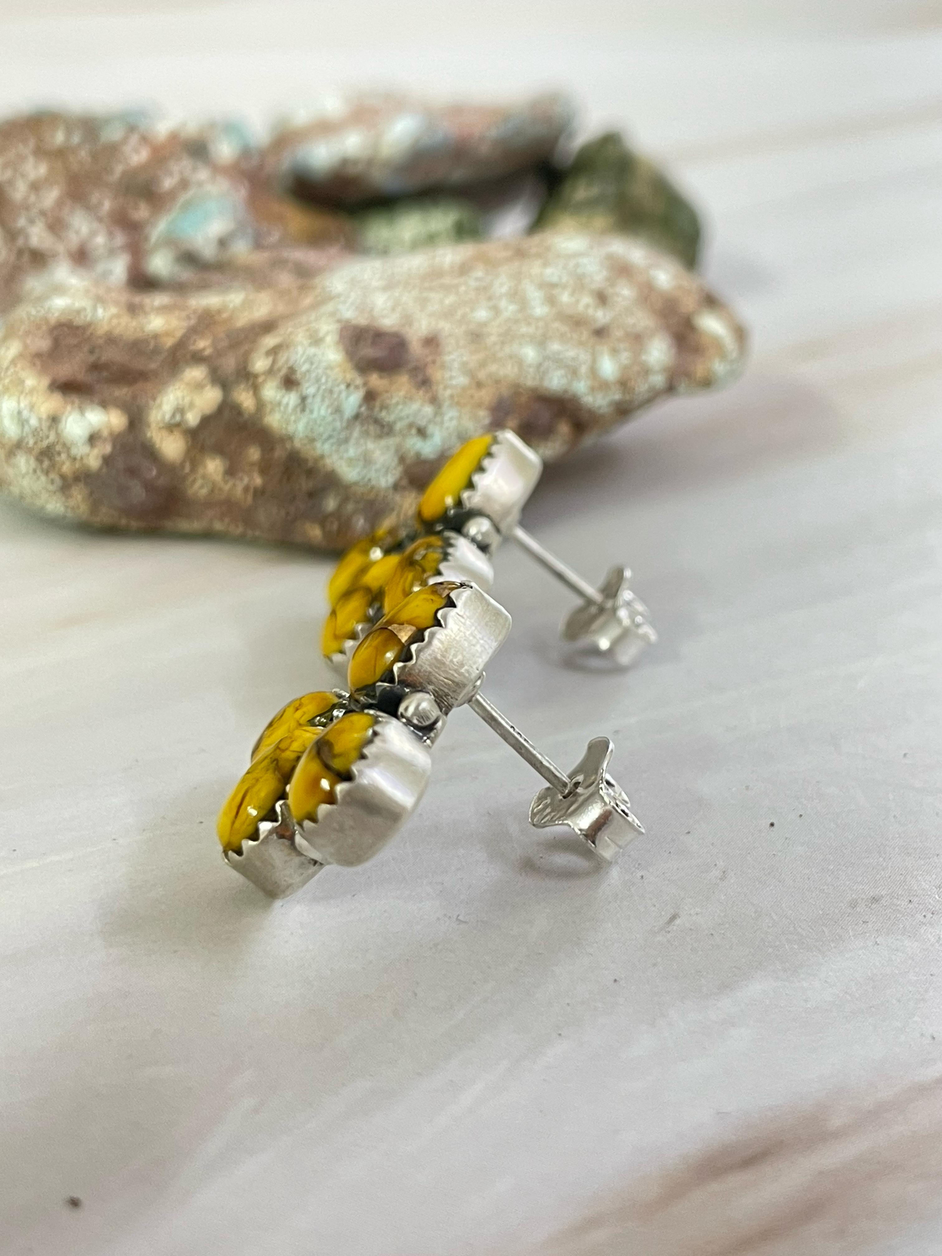 Handmade Sterling Silver Honey Dahlia Post Earrings, Signed Nizhoni