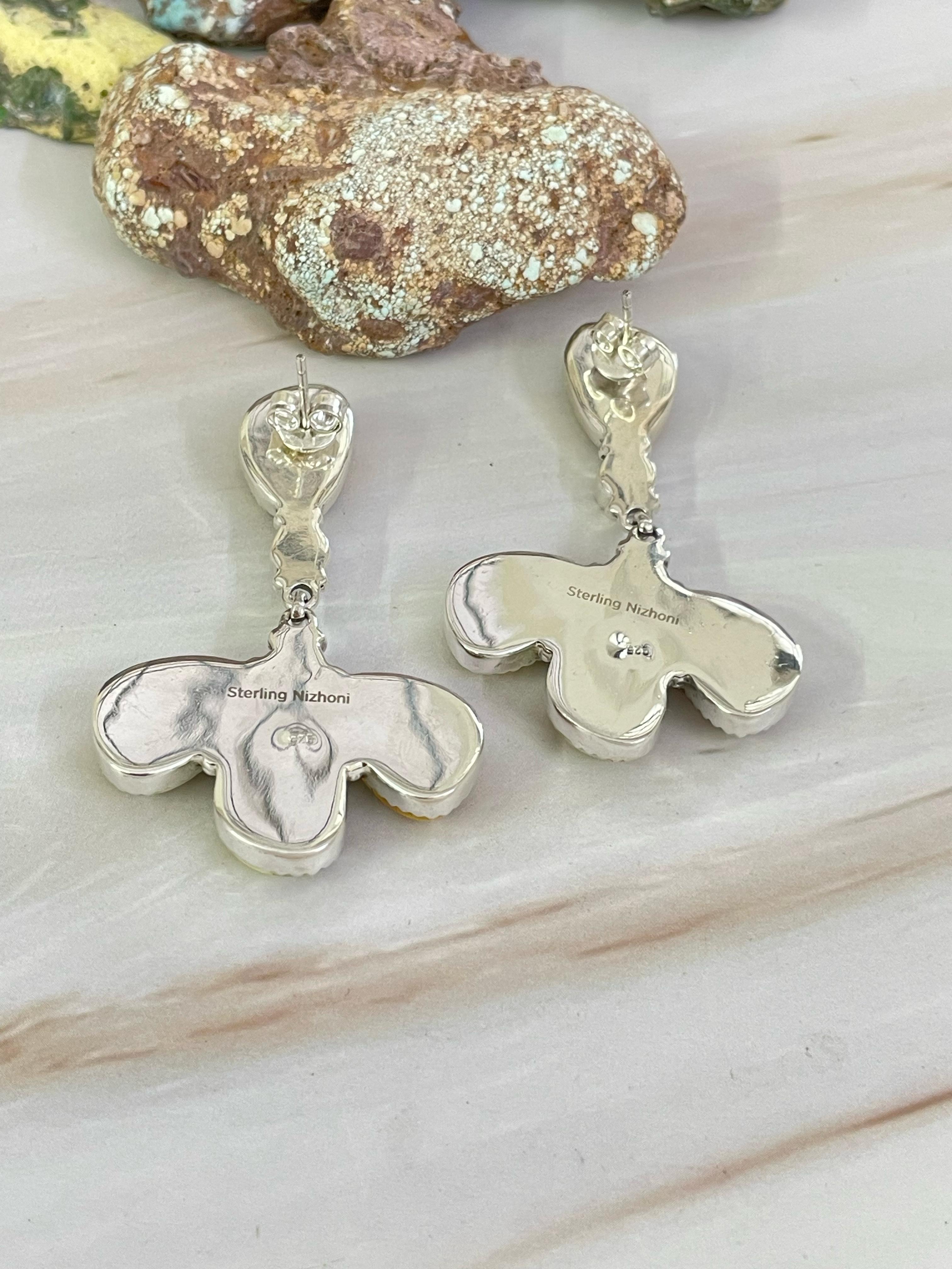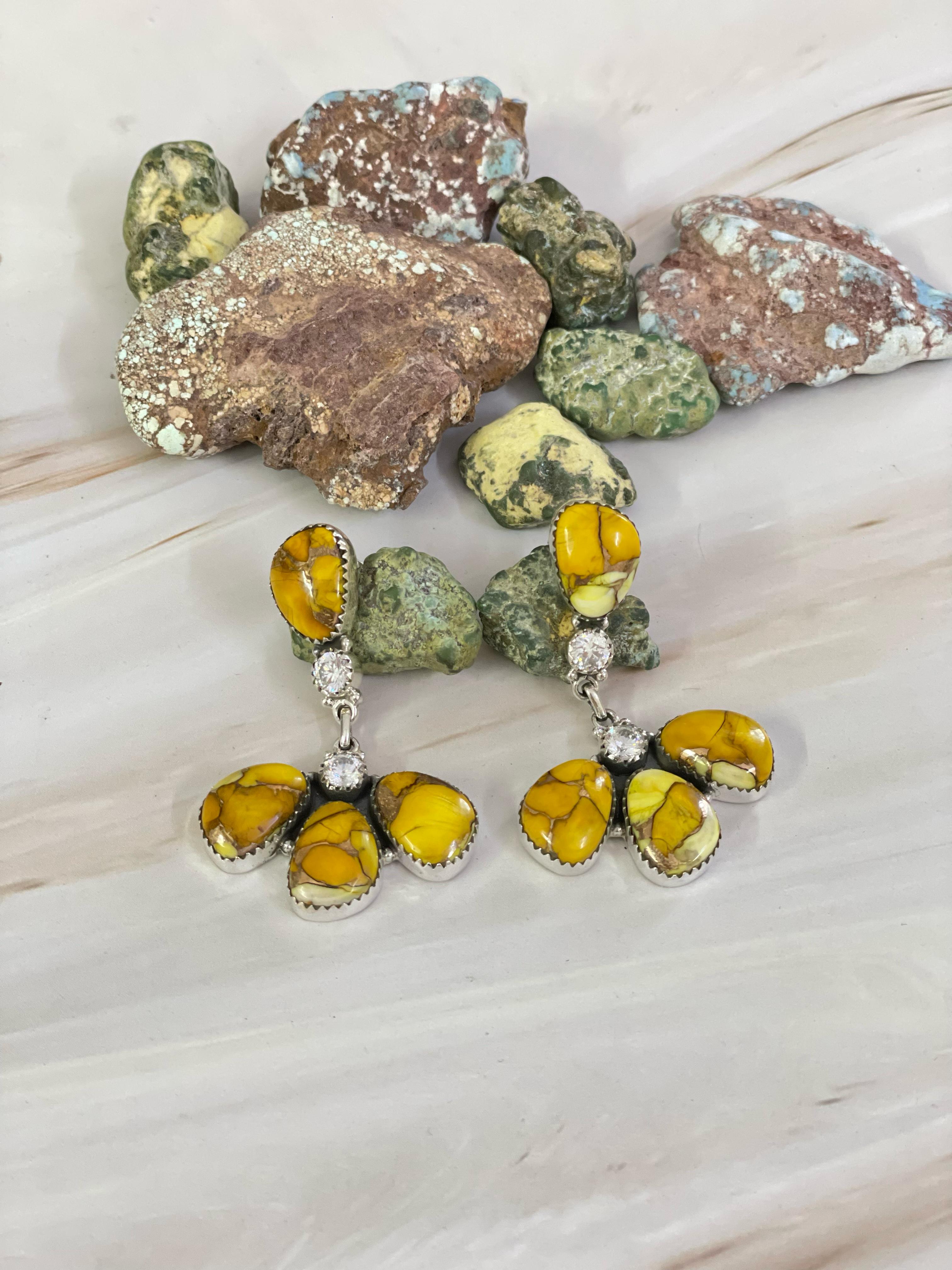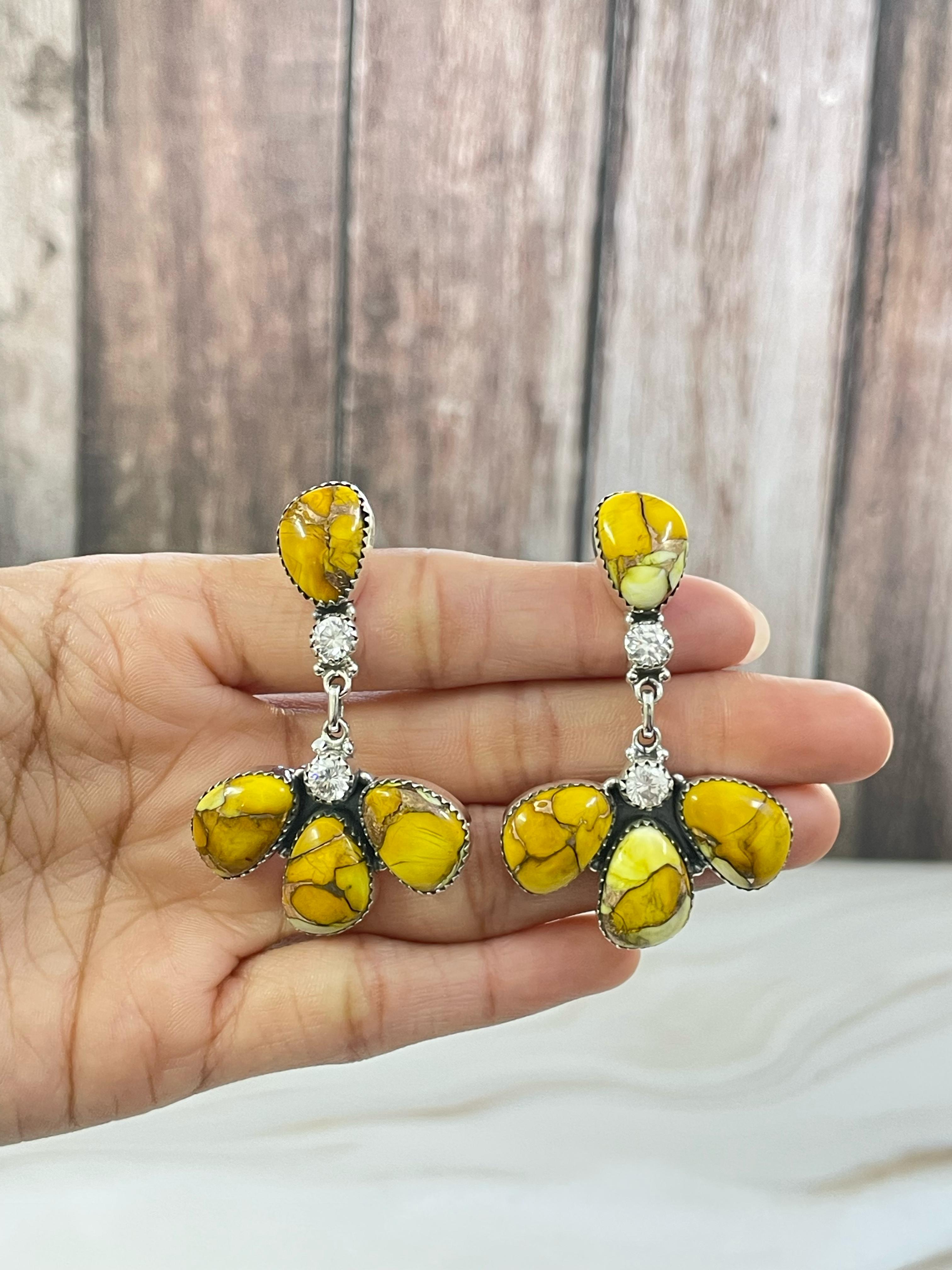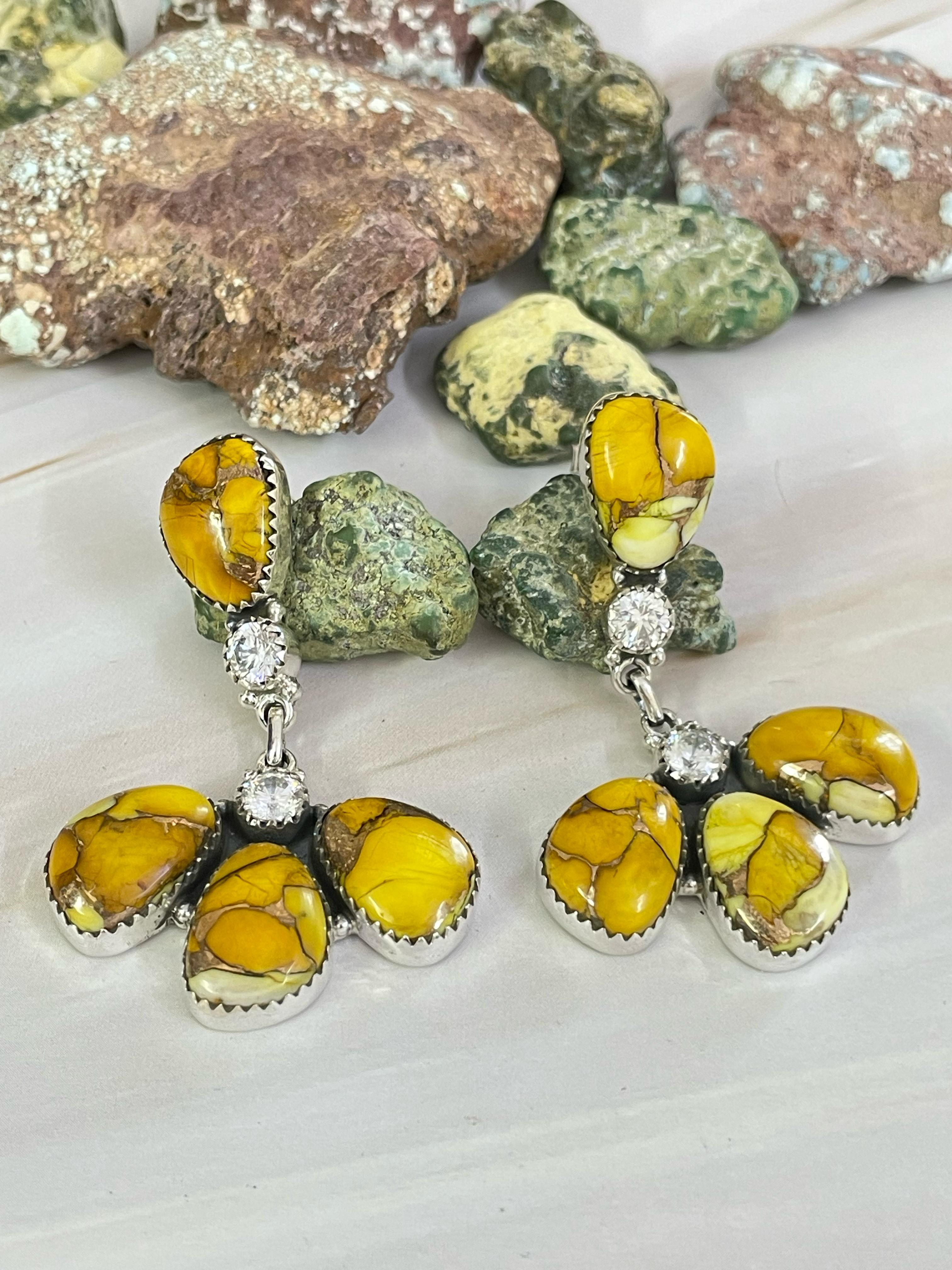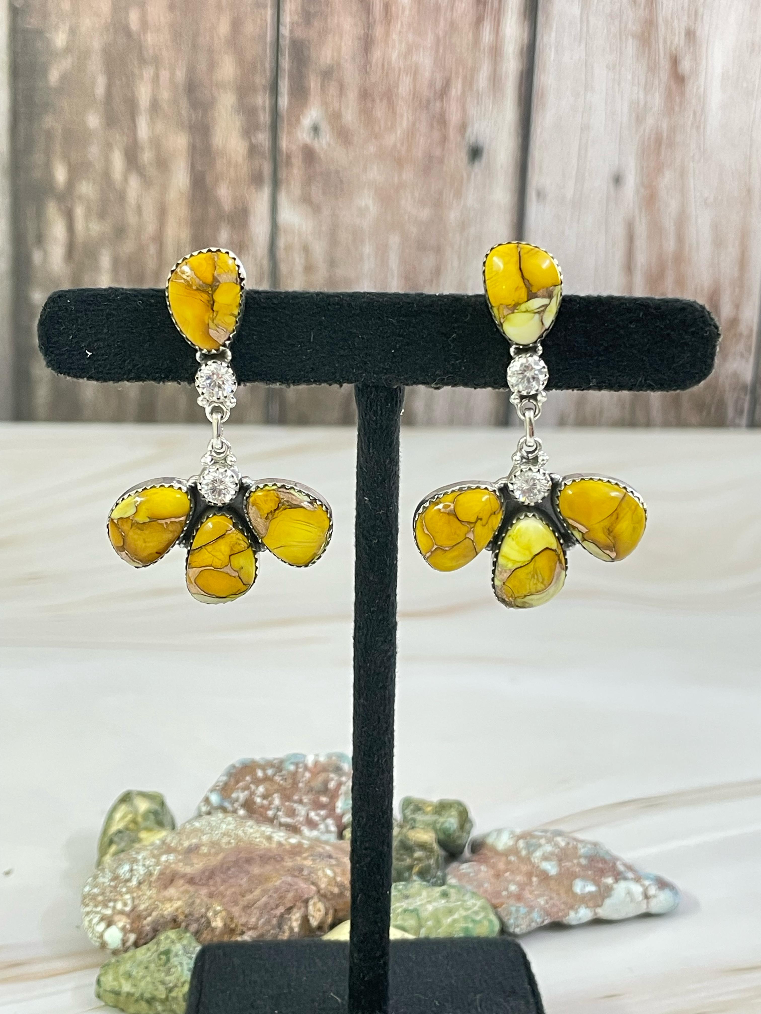 Handmade Sterling Silver Honey Dahlia with Topaz Post Earrings LENGTH- 1 6/8 inches and WIDTH- 1 1/8 inches.