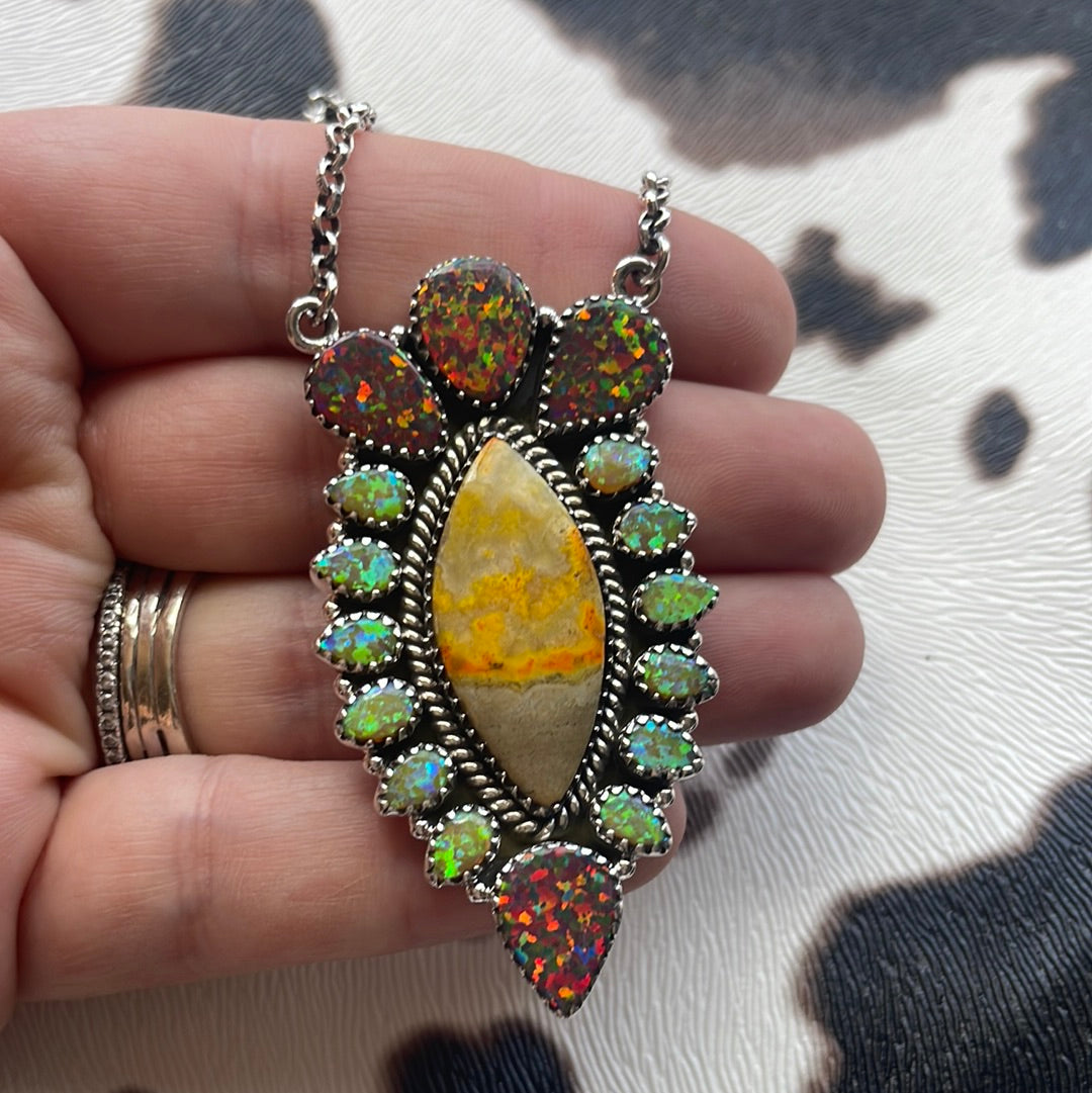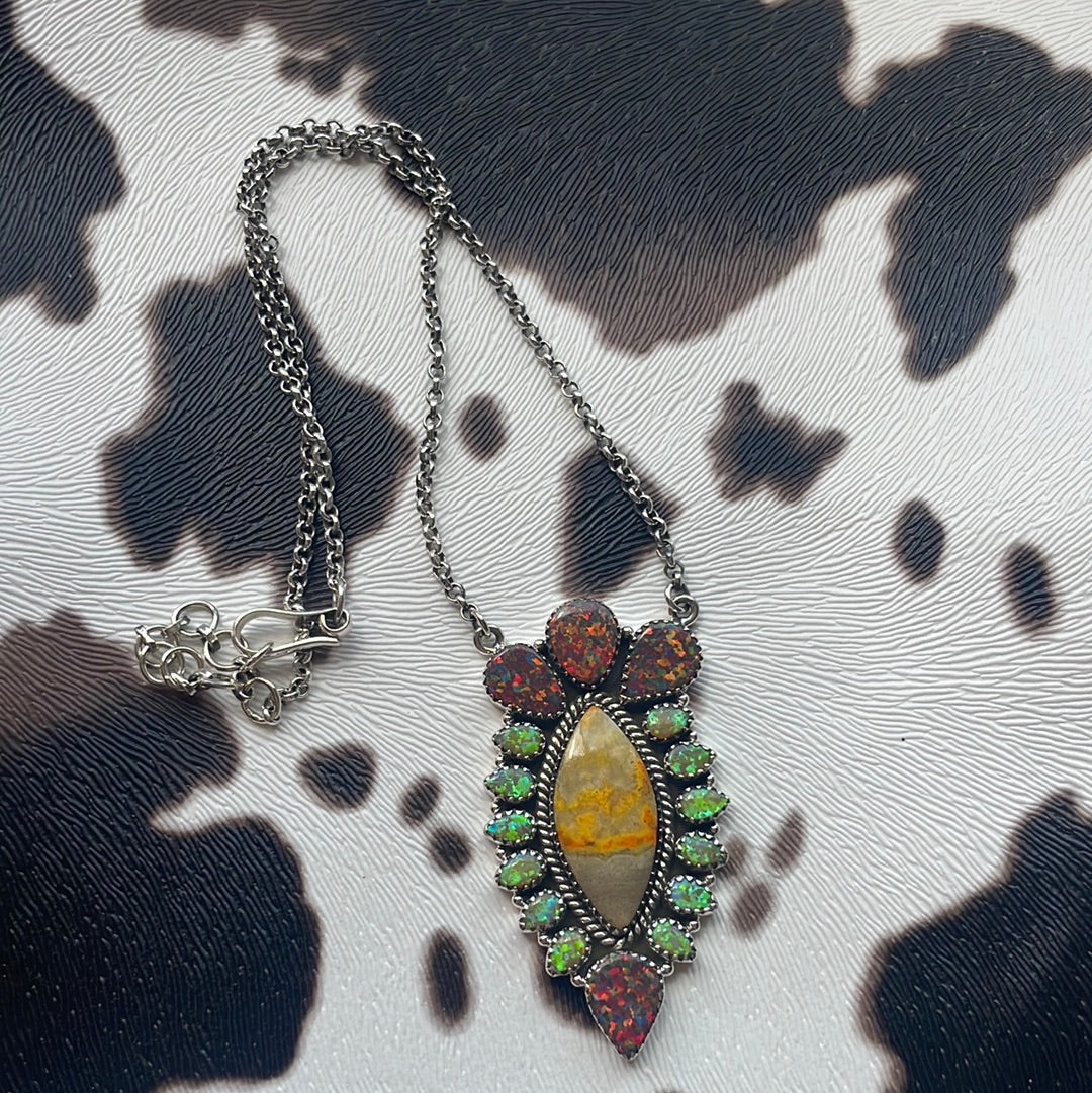 Beautiful Handmade Multi Stone Sterling Silver Necklace. Such gorgeous stones in this piece! Necklace measures 16 inches long.