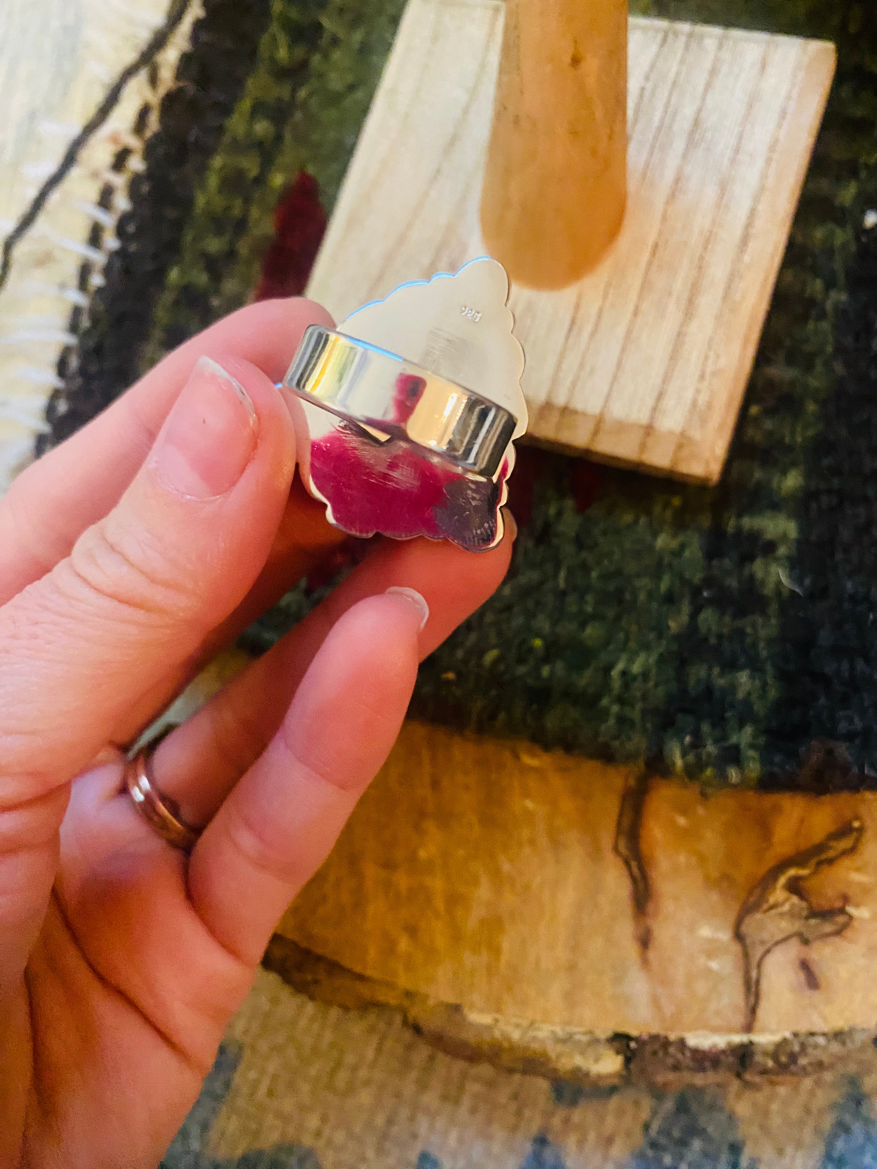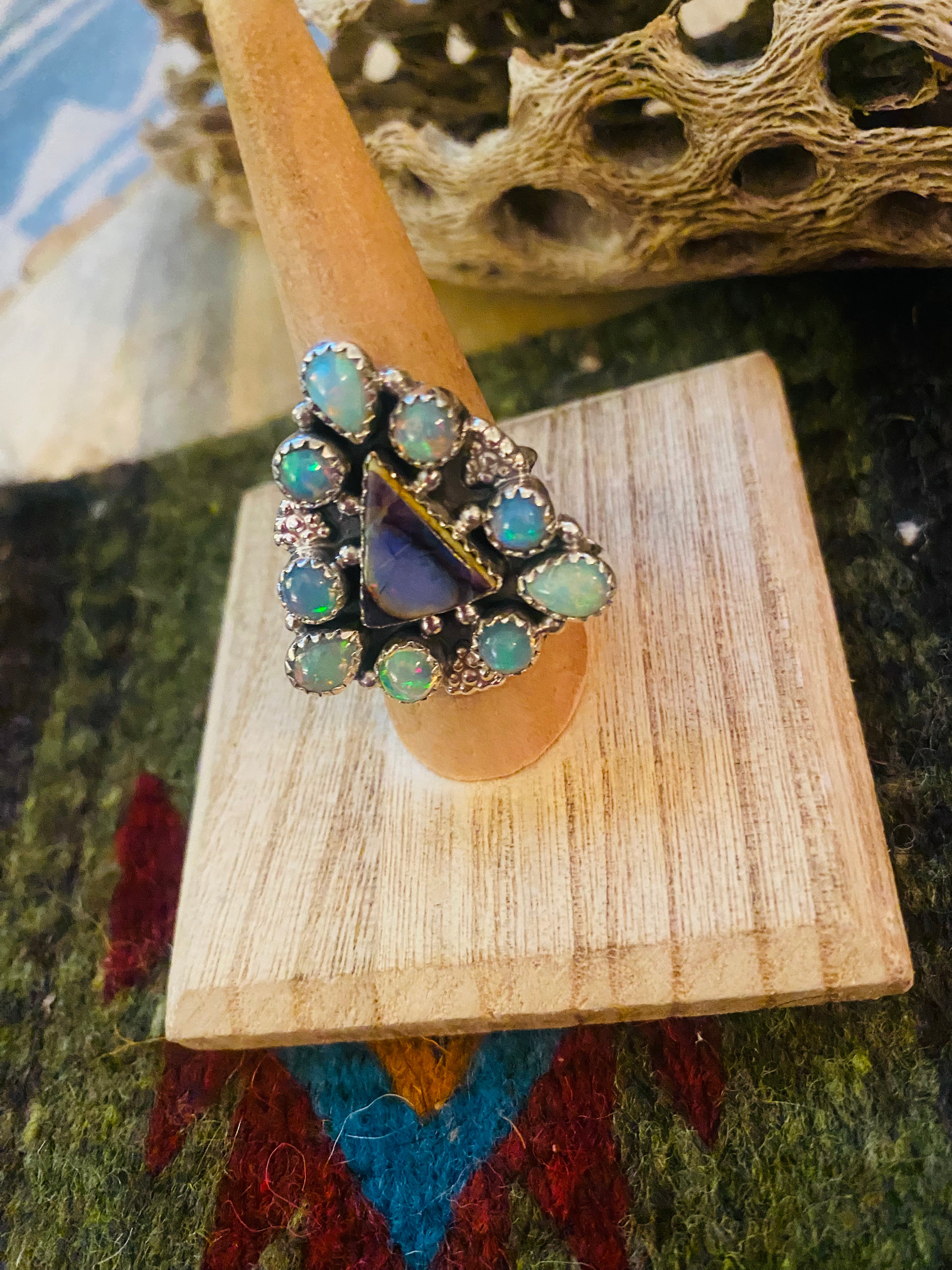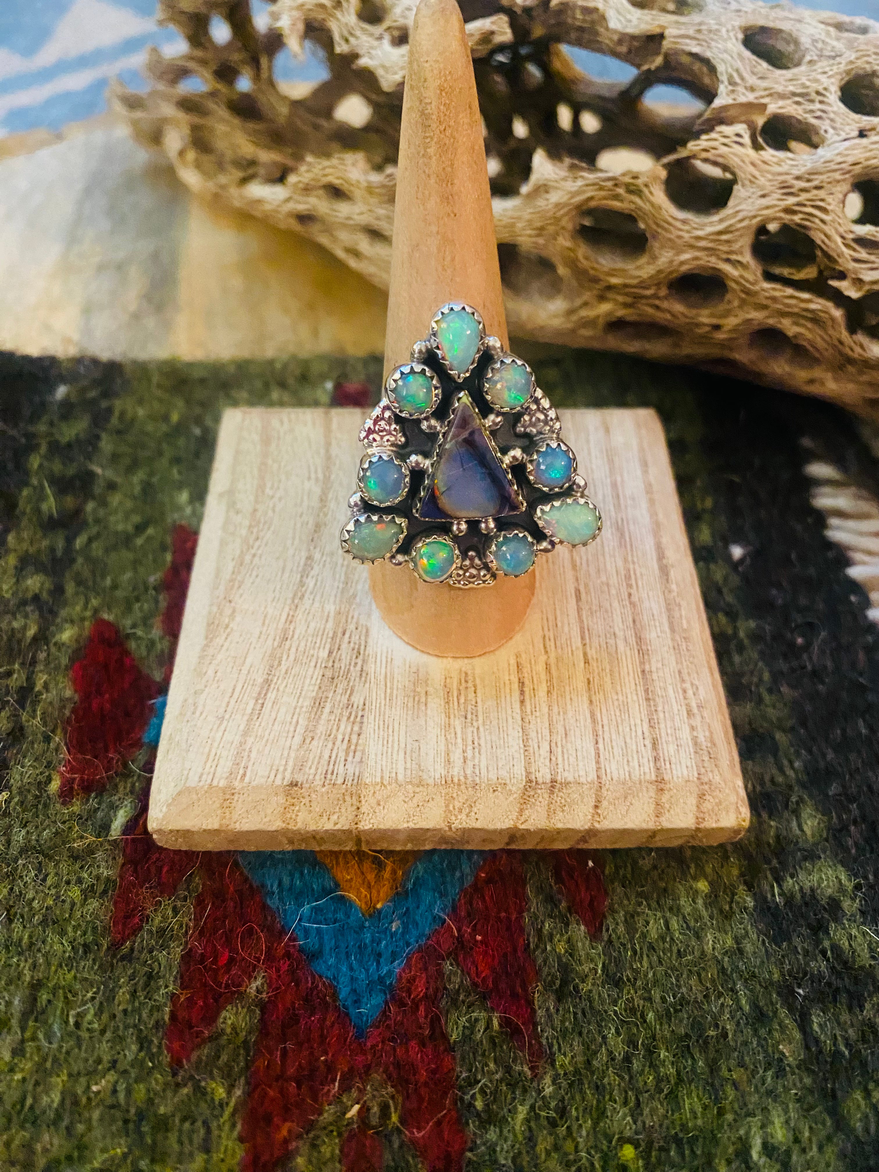 This is a beautiful handmade Opal and Sterling Silver Adjustable Cluster Ring. Ring measures 1 1/4 inches long and wide. Stamped sterling. So beautiful!