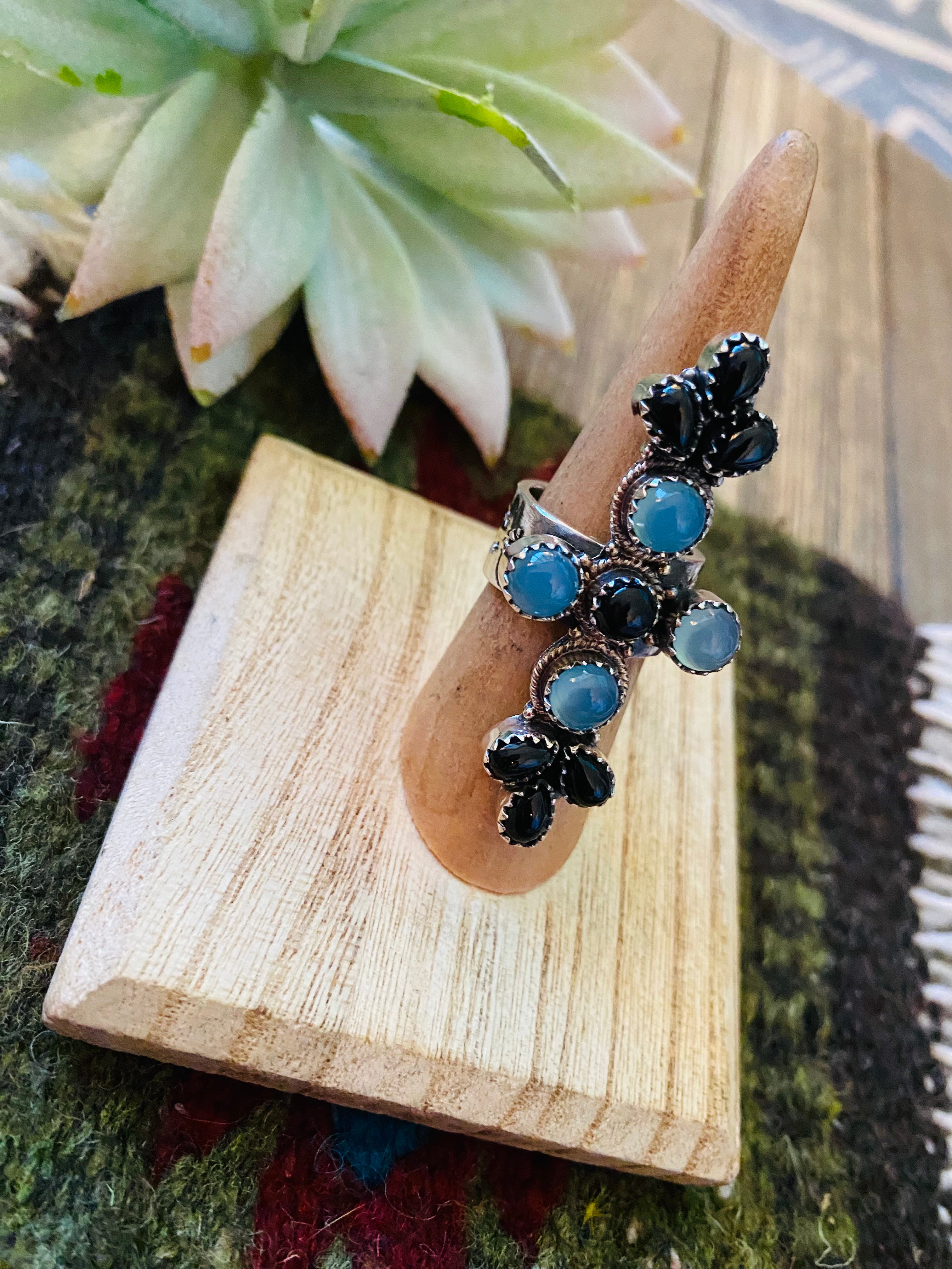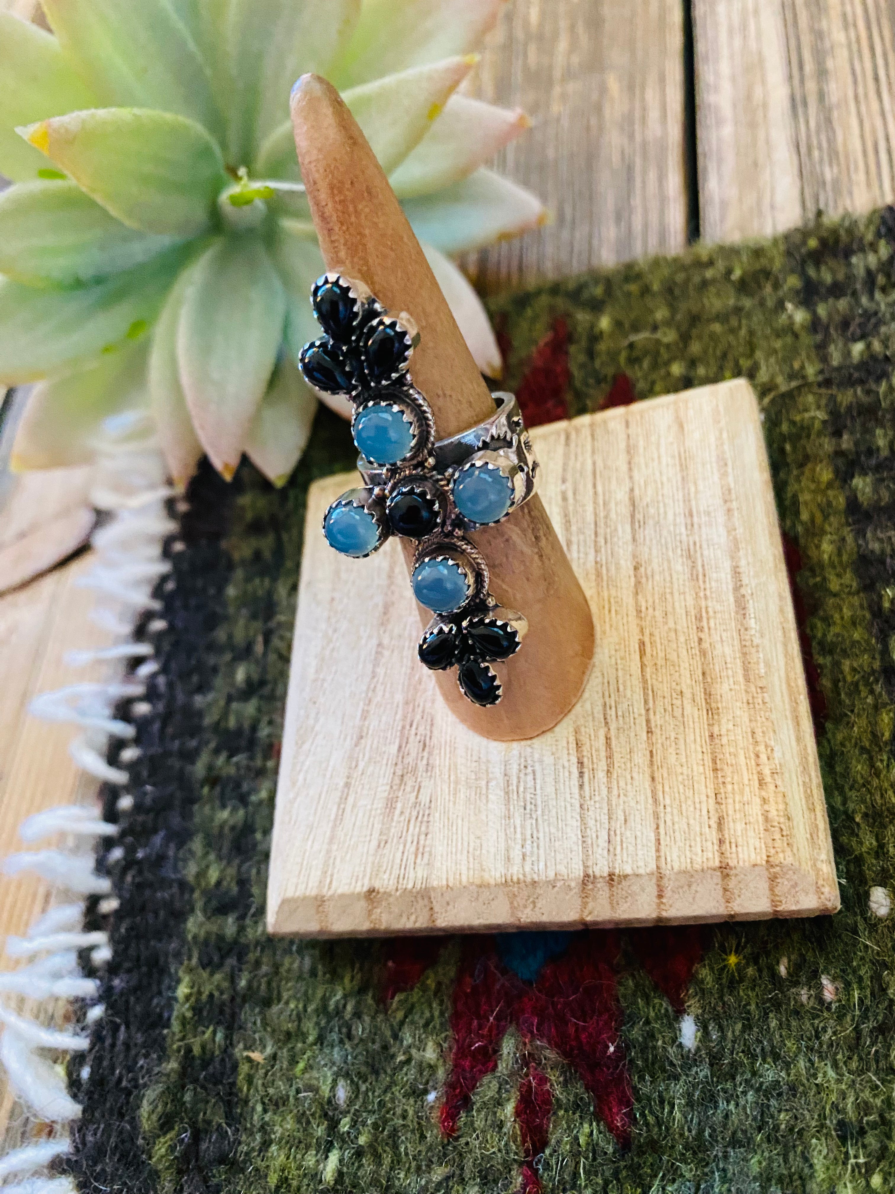 Handmade Sterling Silver, Opalite & Onyx Cluster Adjustable Ring