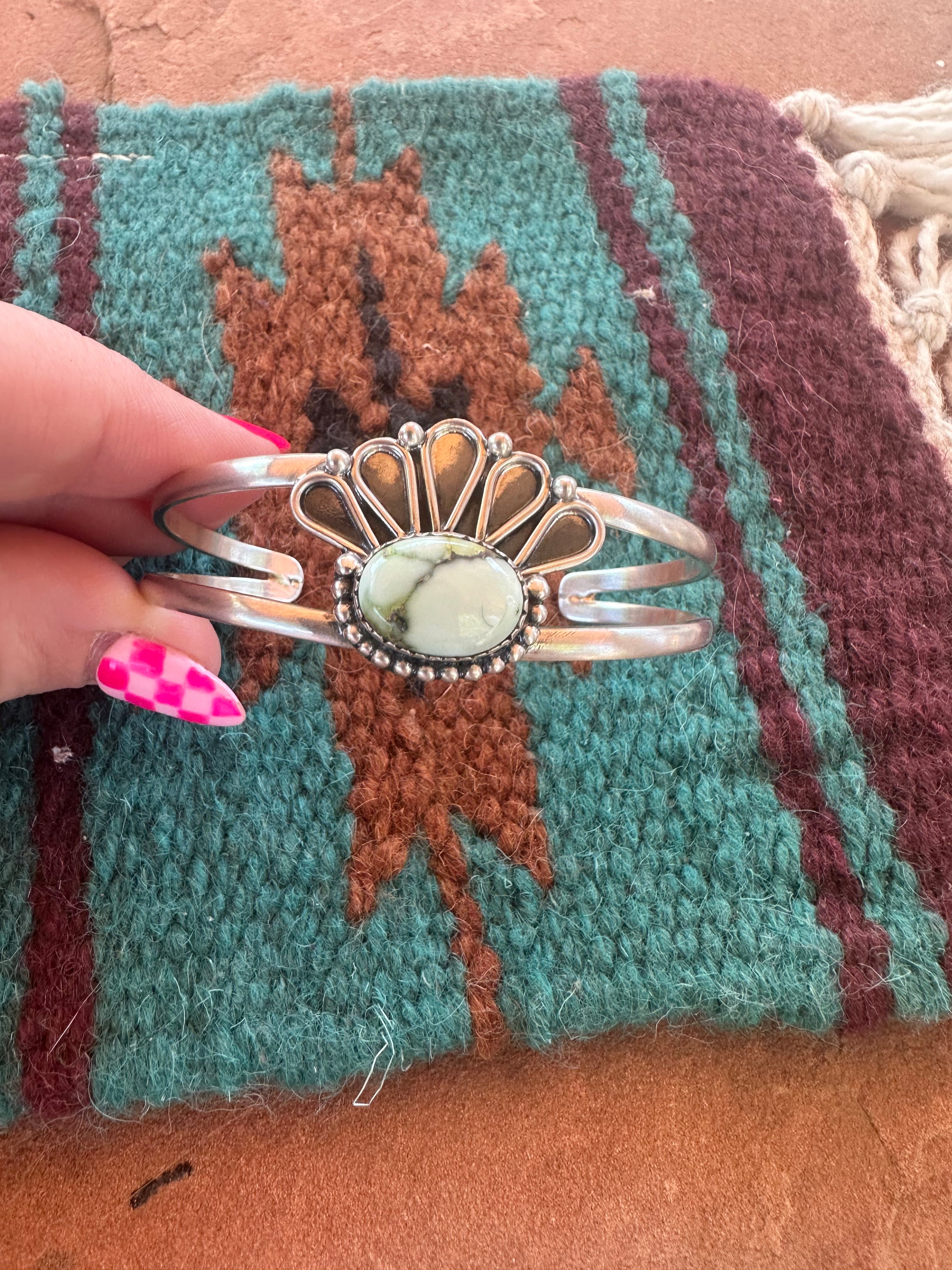 Handmade Sterling Silver & Palomino Turquoise Adjustable Cuff Bracelet LIGHTER