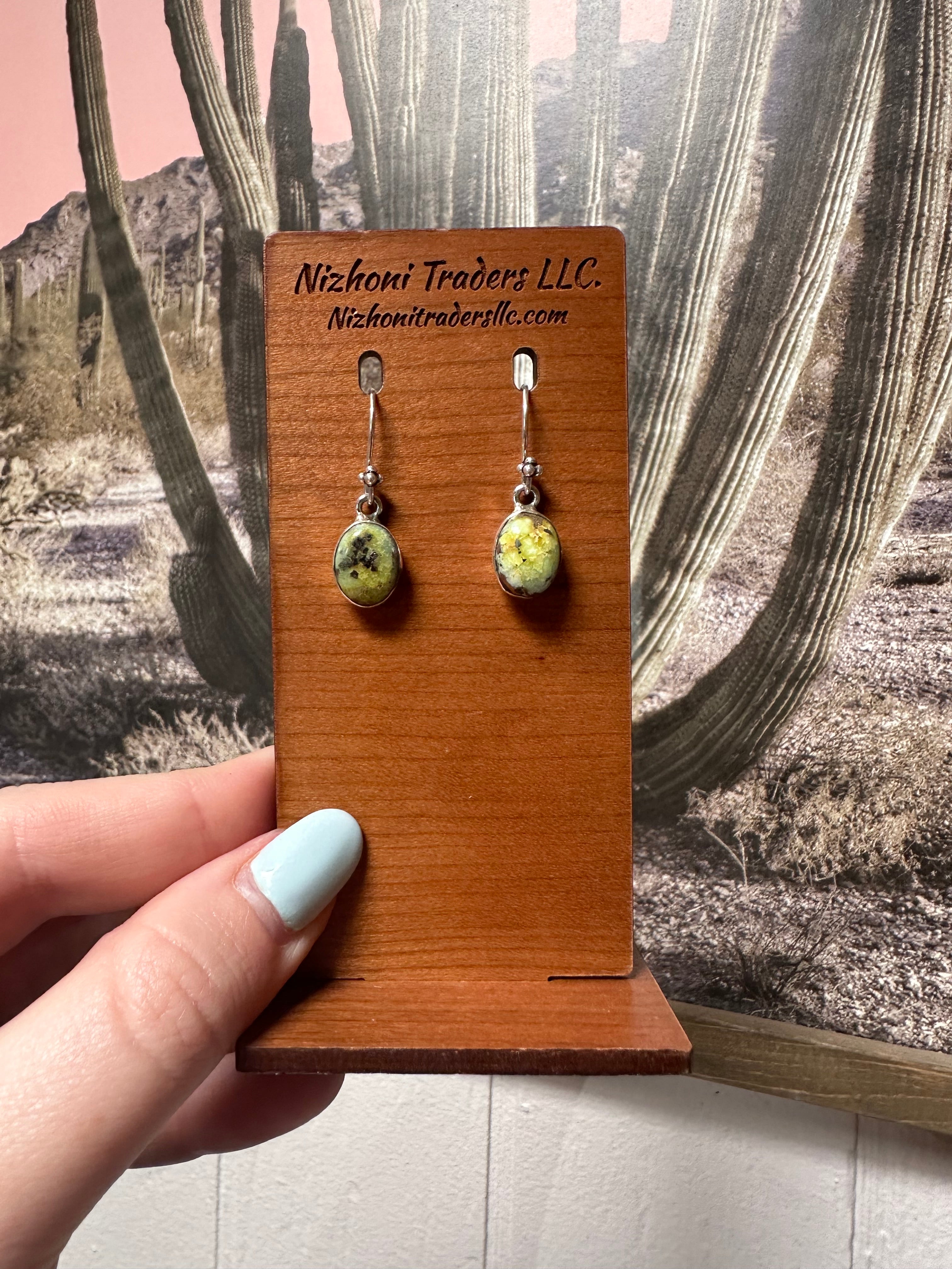 Handmade Sterling Silver & Palomino Turquoise Dangle Earrings OVAL