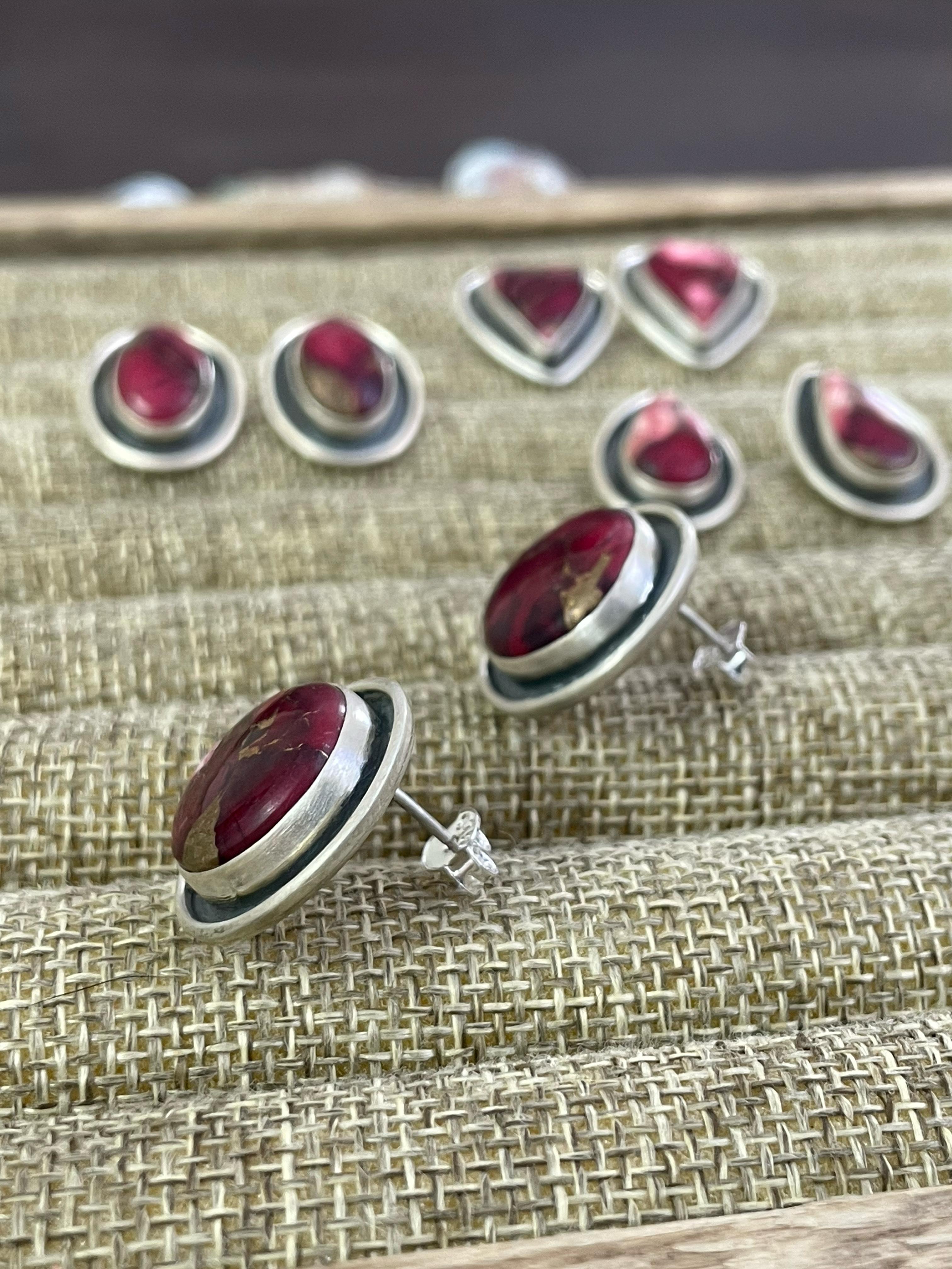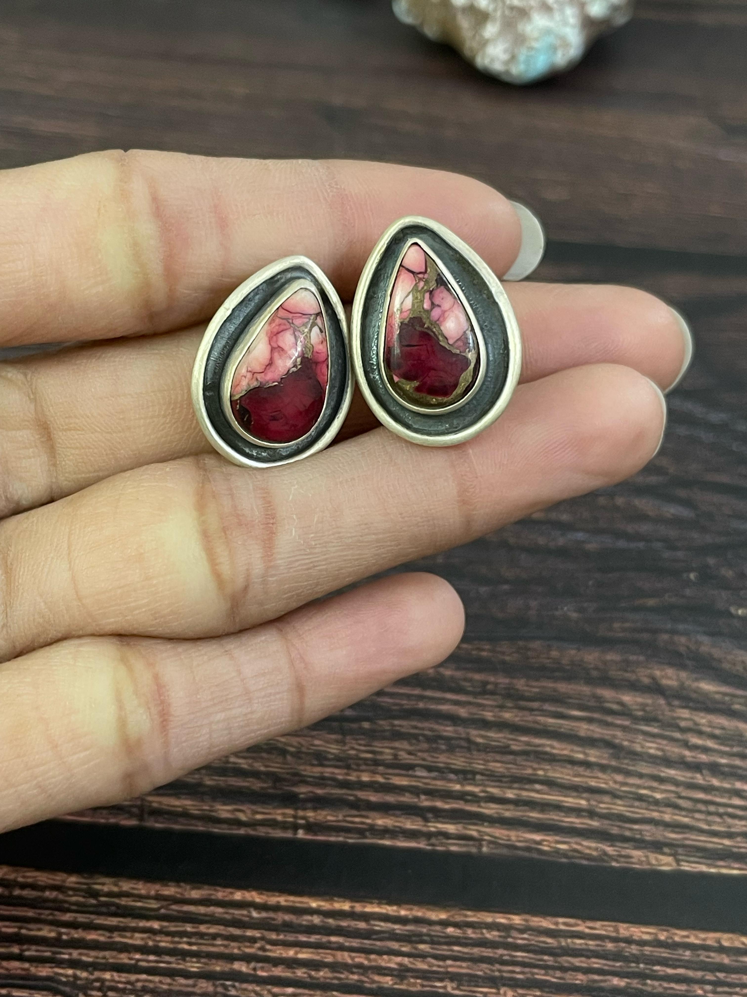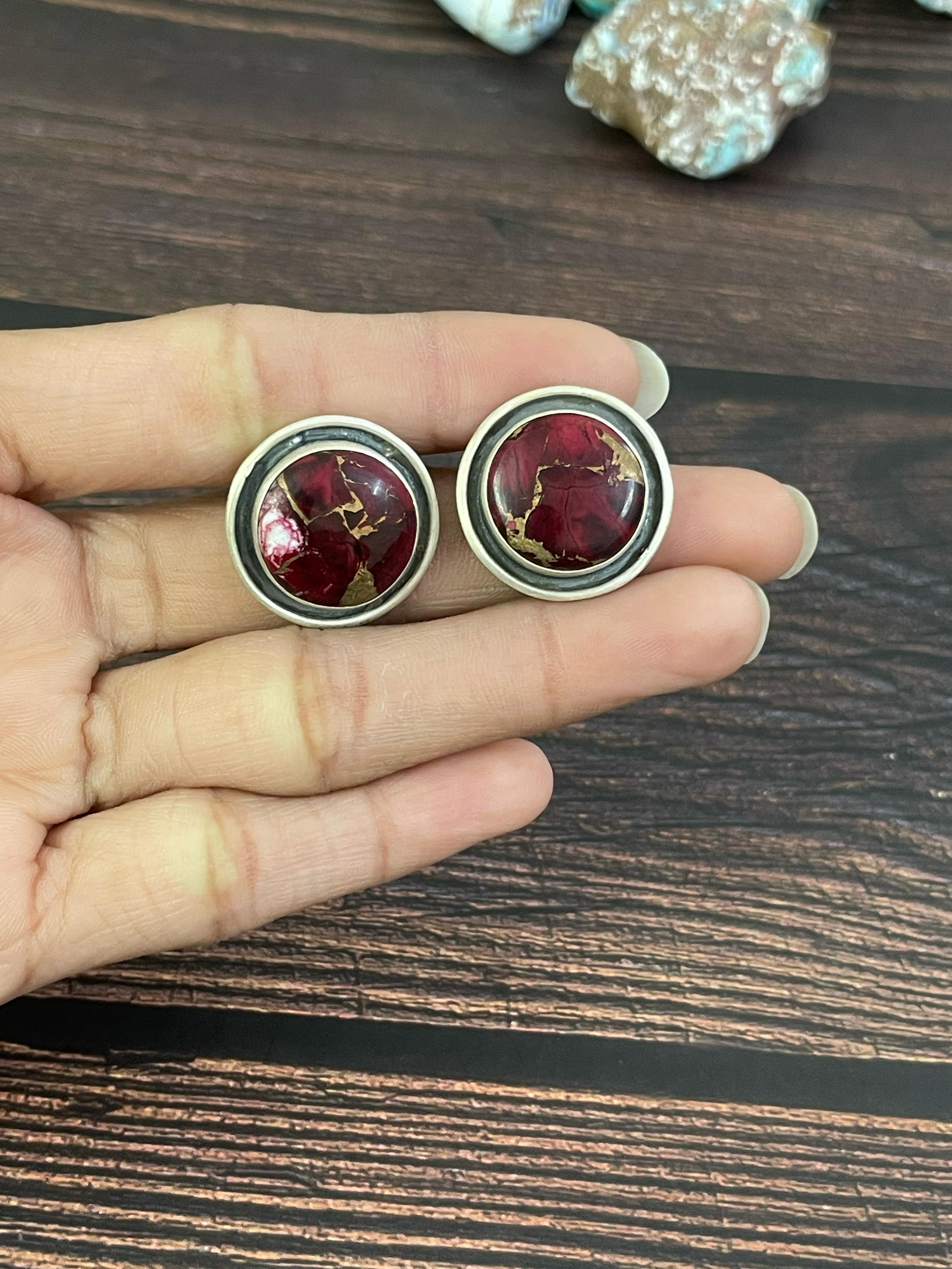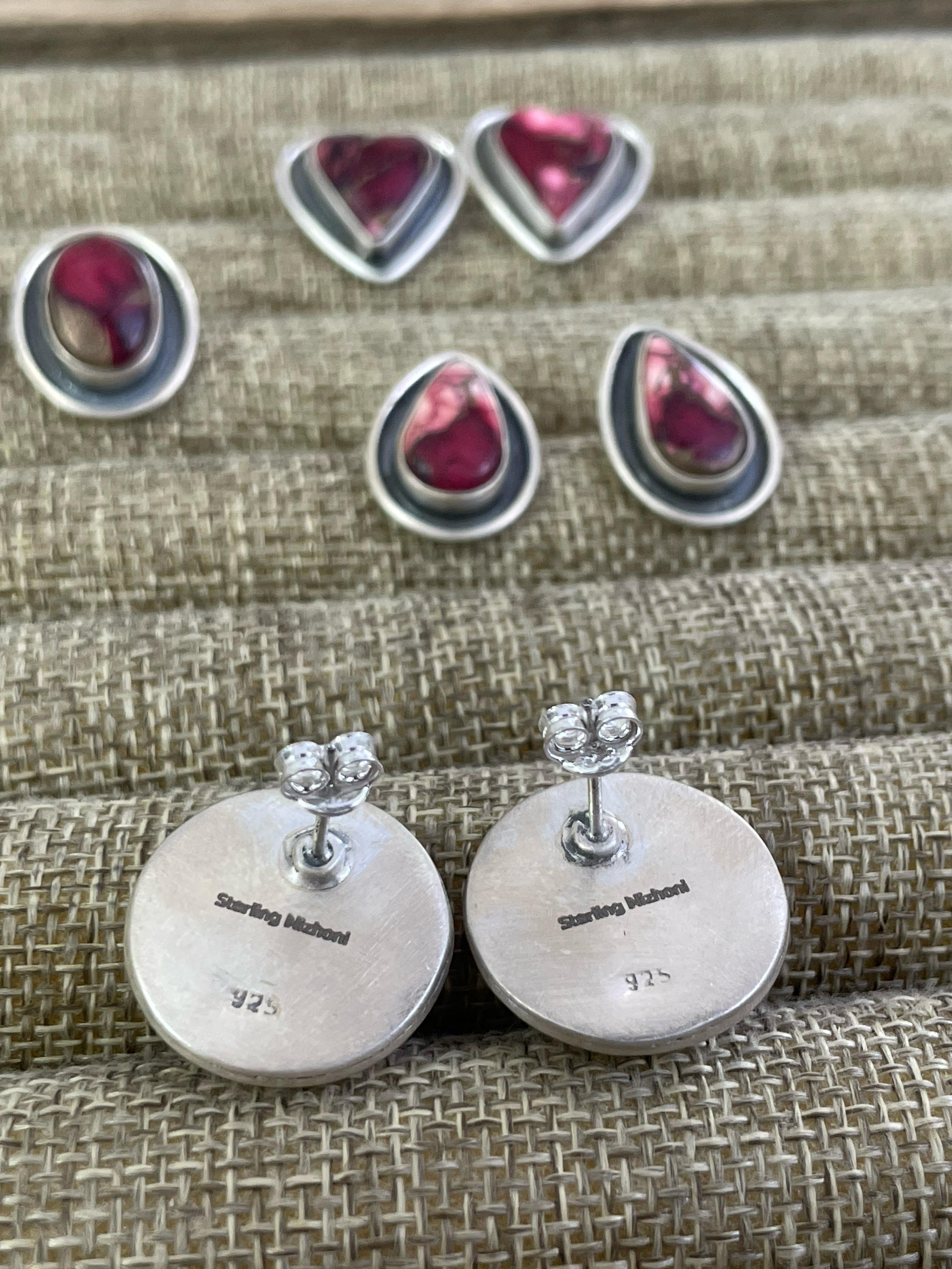 Handmade Sterling Silver Red Rose Dahlia Post Earrings, Signed Nizhoni