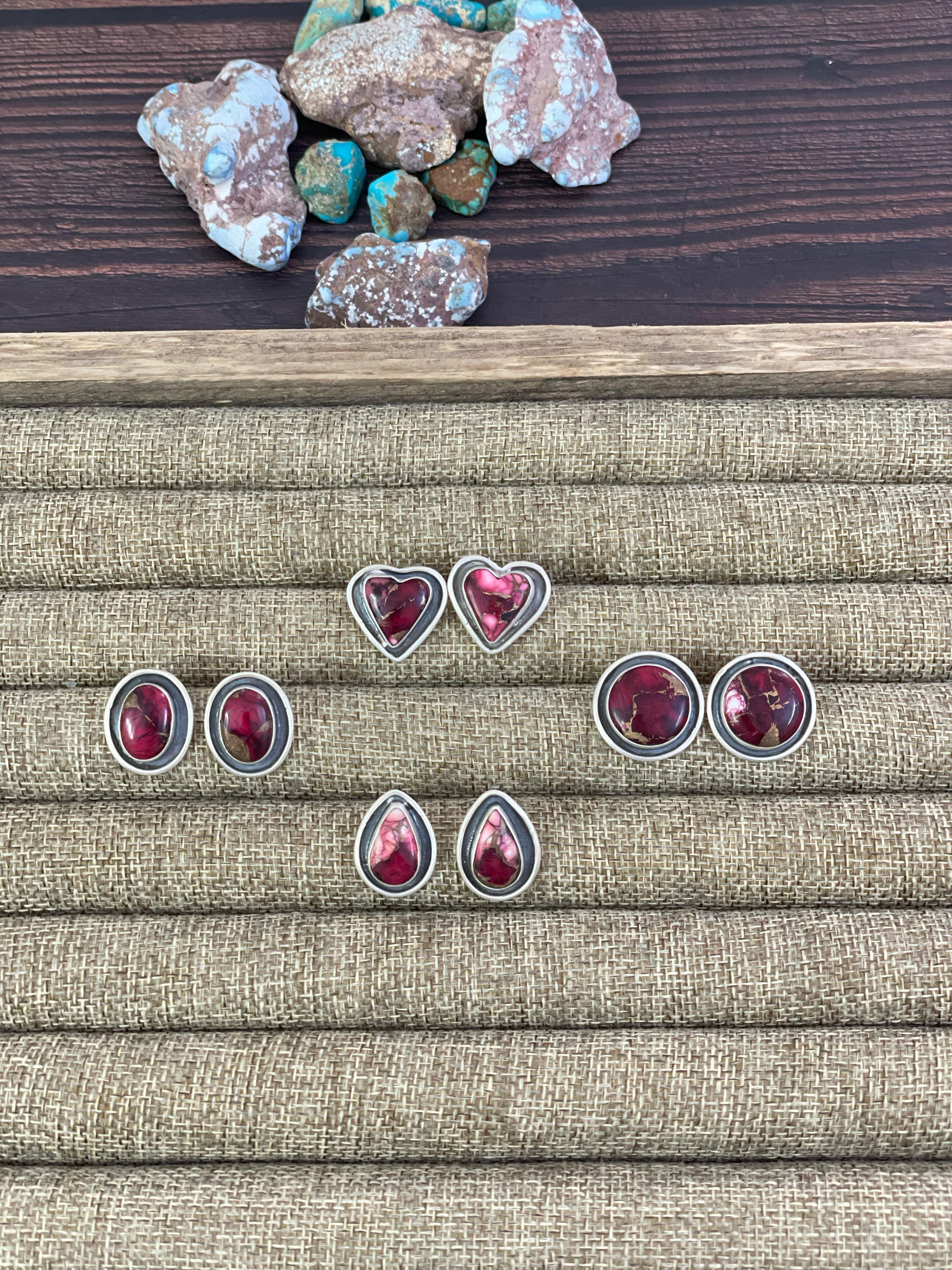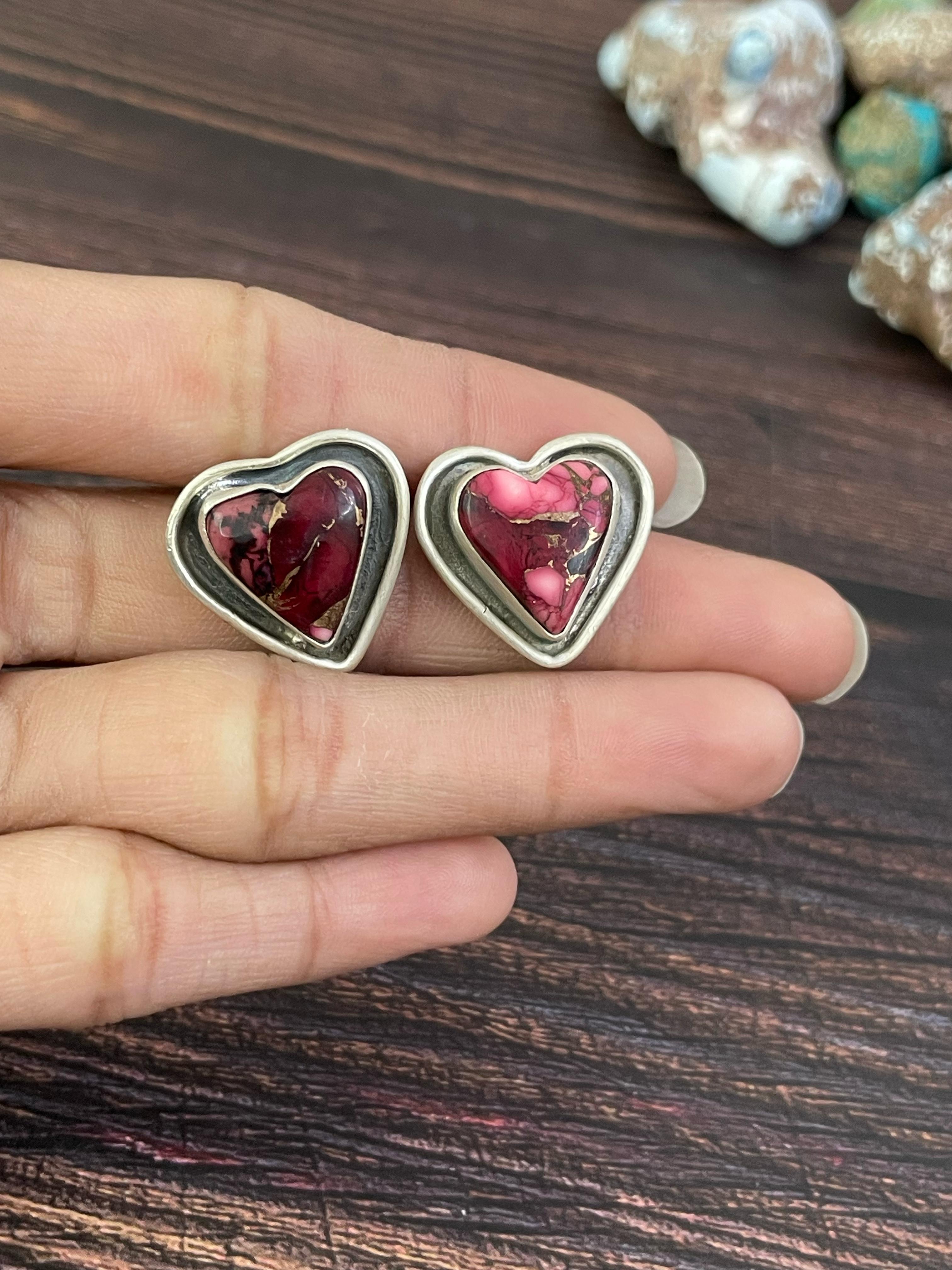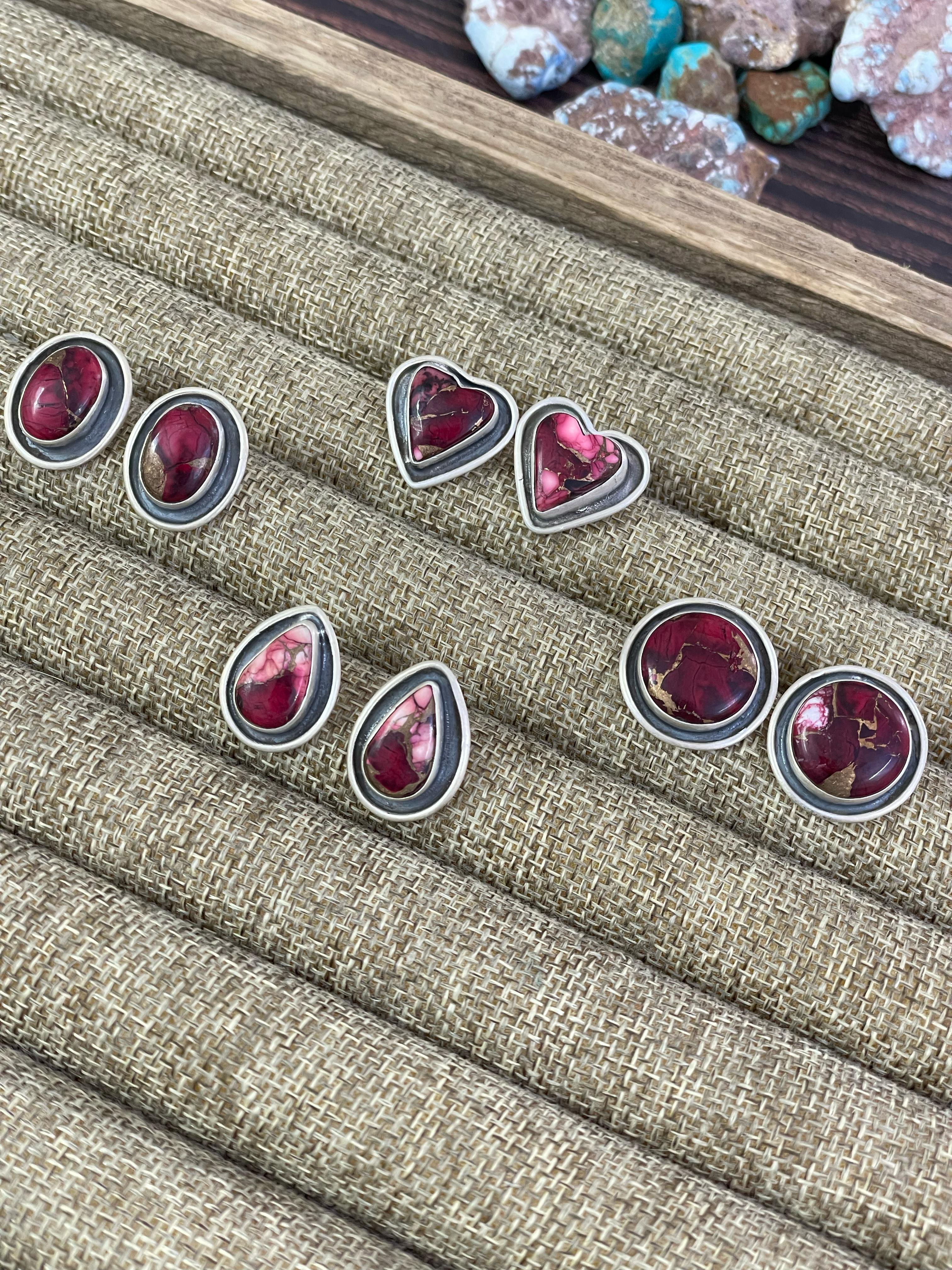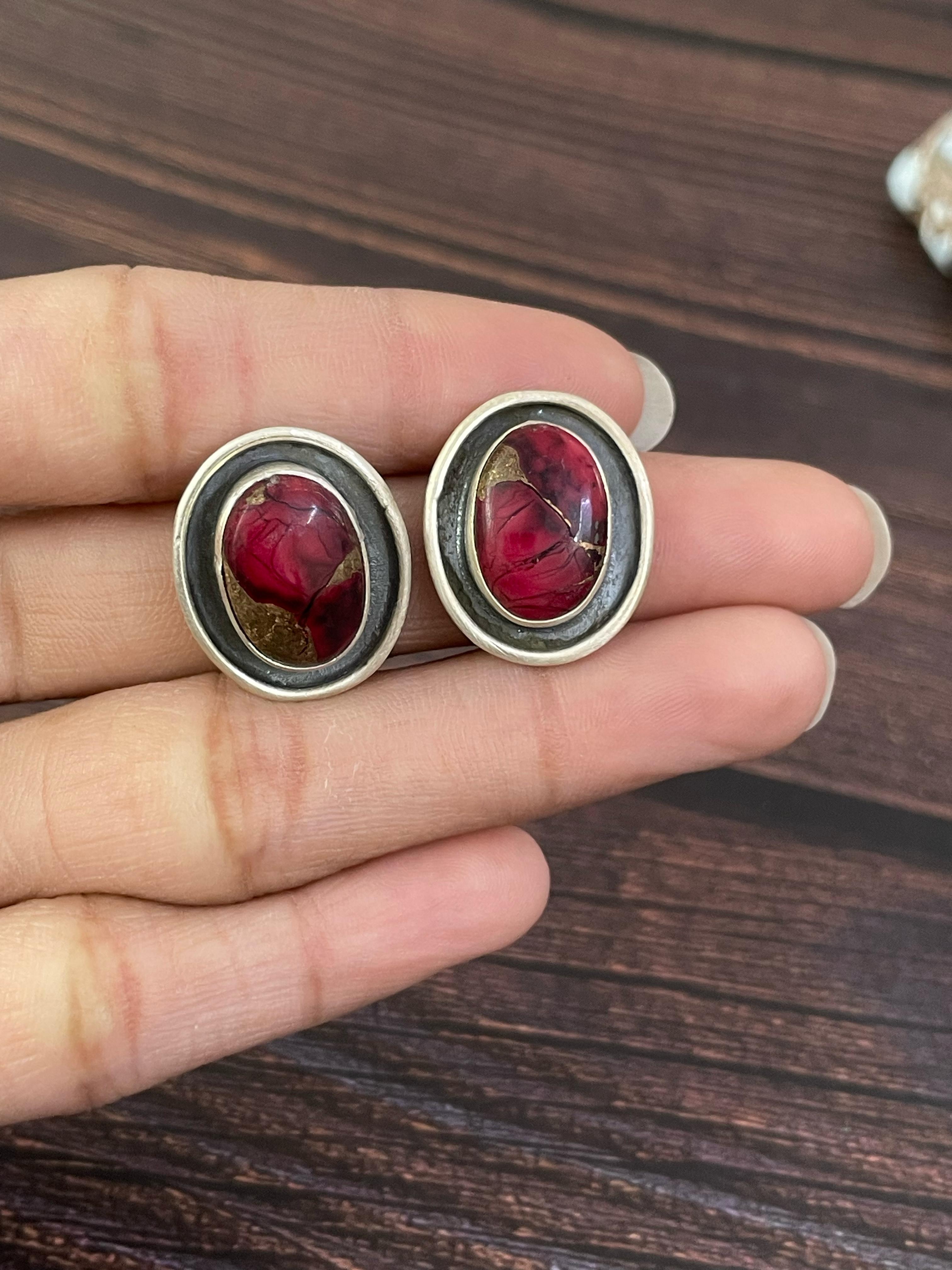 Handmade Sterling Silver Red Rose Dahlia Post Earrings, Signed Nizhoni