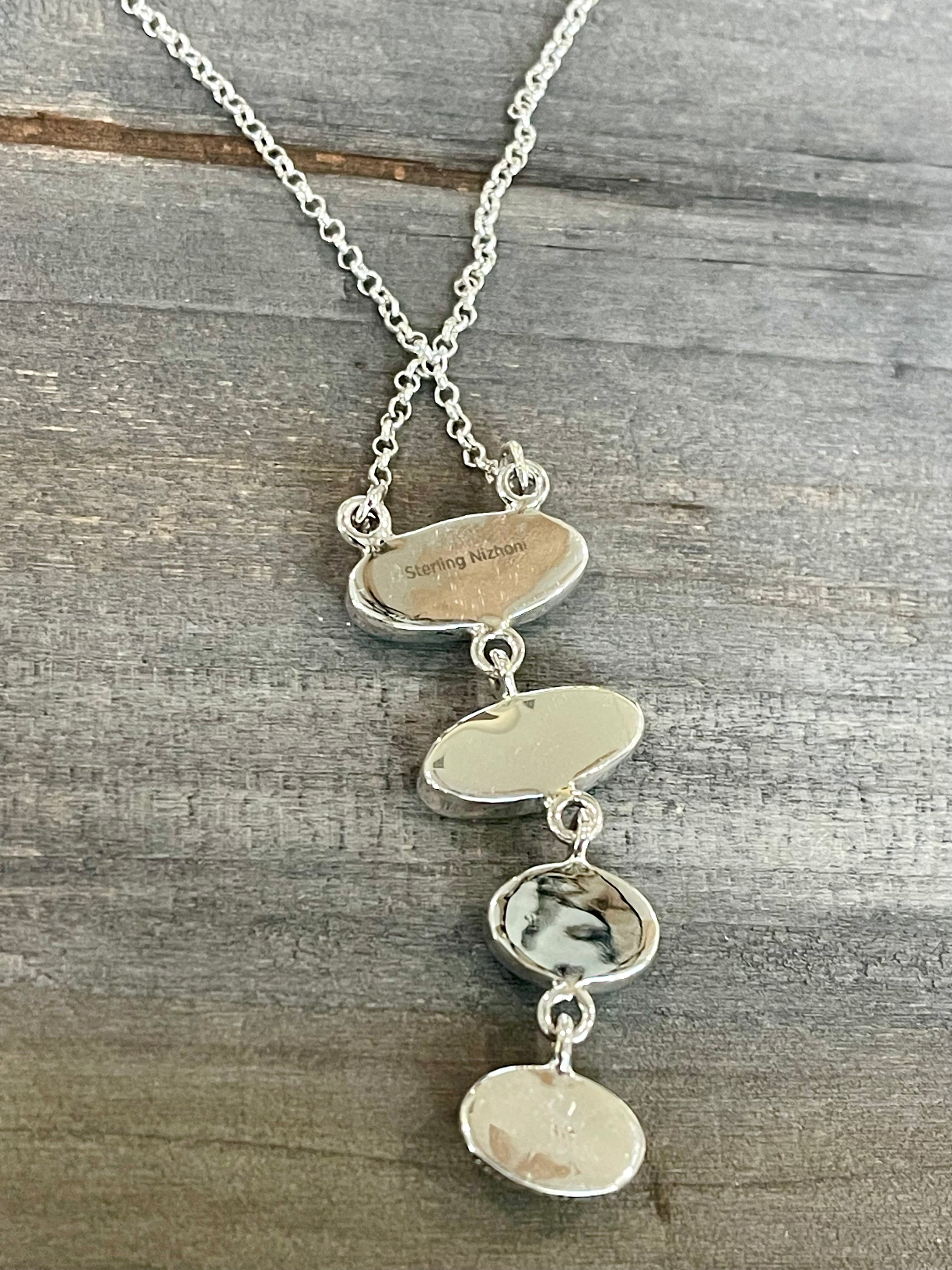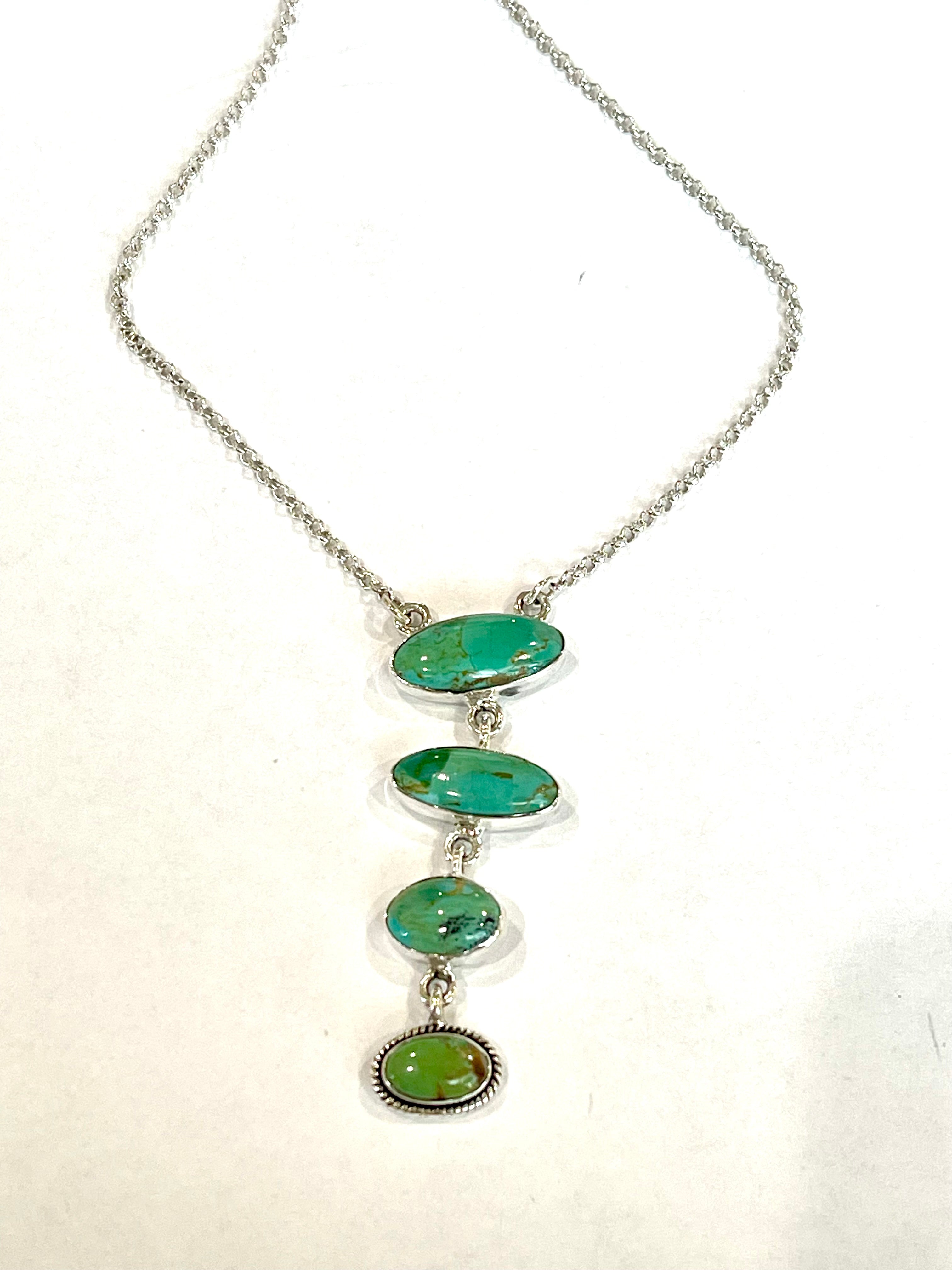 Handmade Sterling Silver & Royston Turquoise 4 Stone Drop Necklace Signed Nizhoni