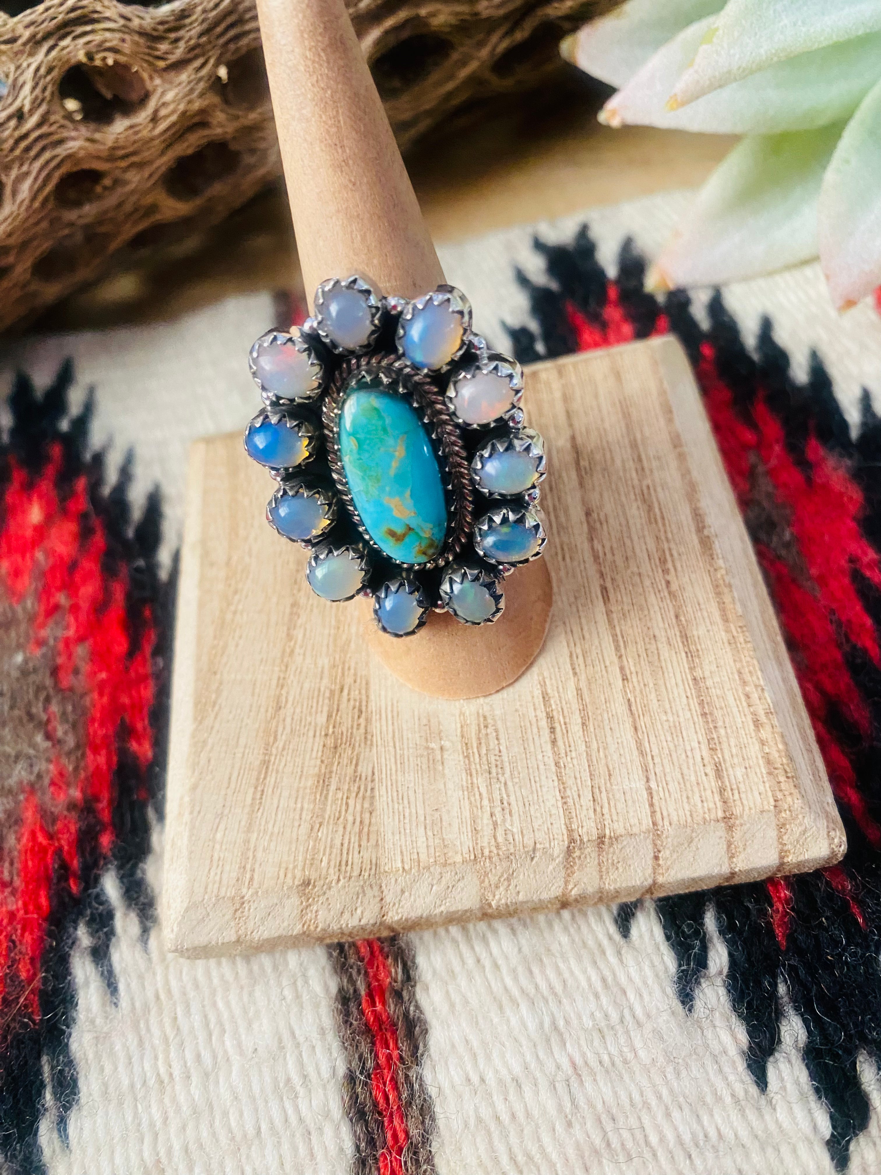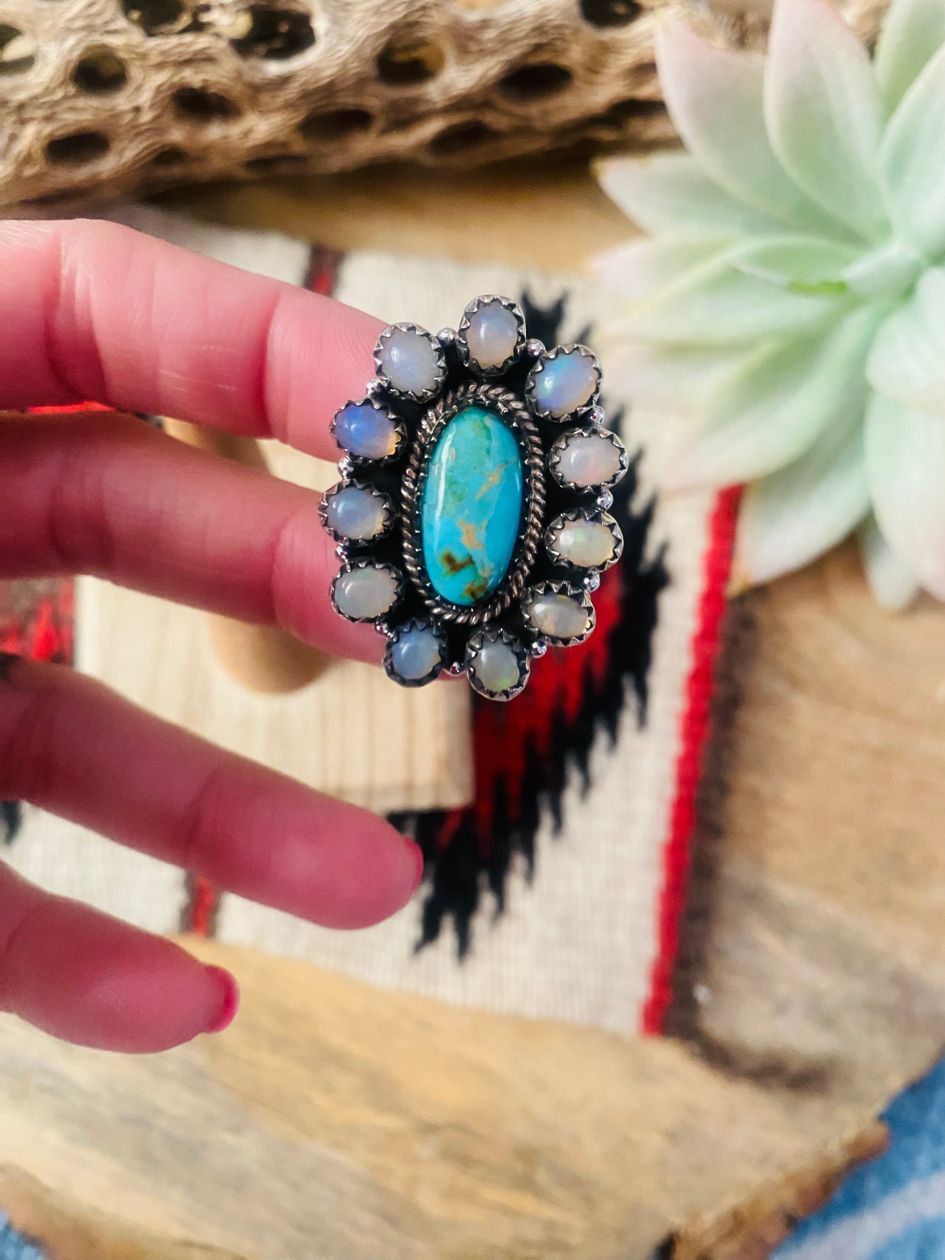Handmade Sterling Silver, Turquoise & Opal Cluster Adjustable Ring Sale price$ 189.00