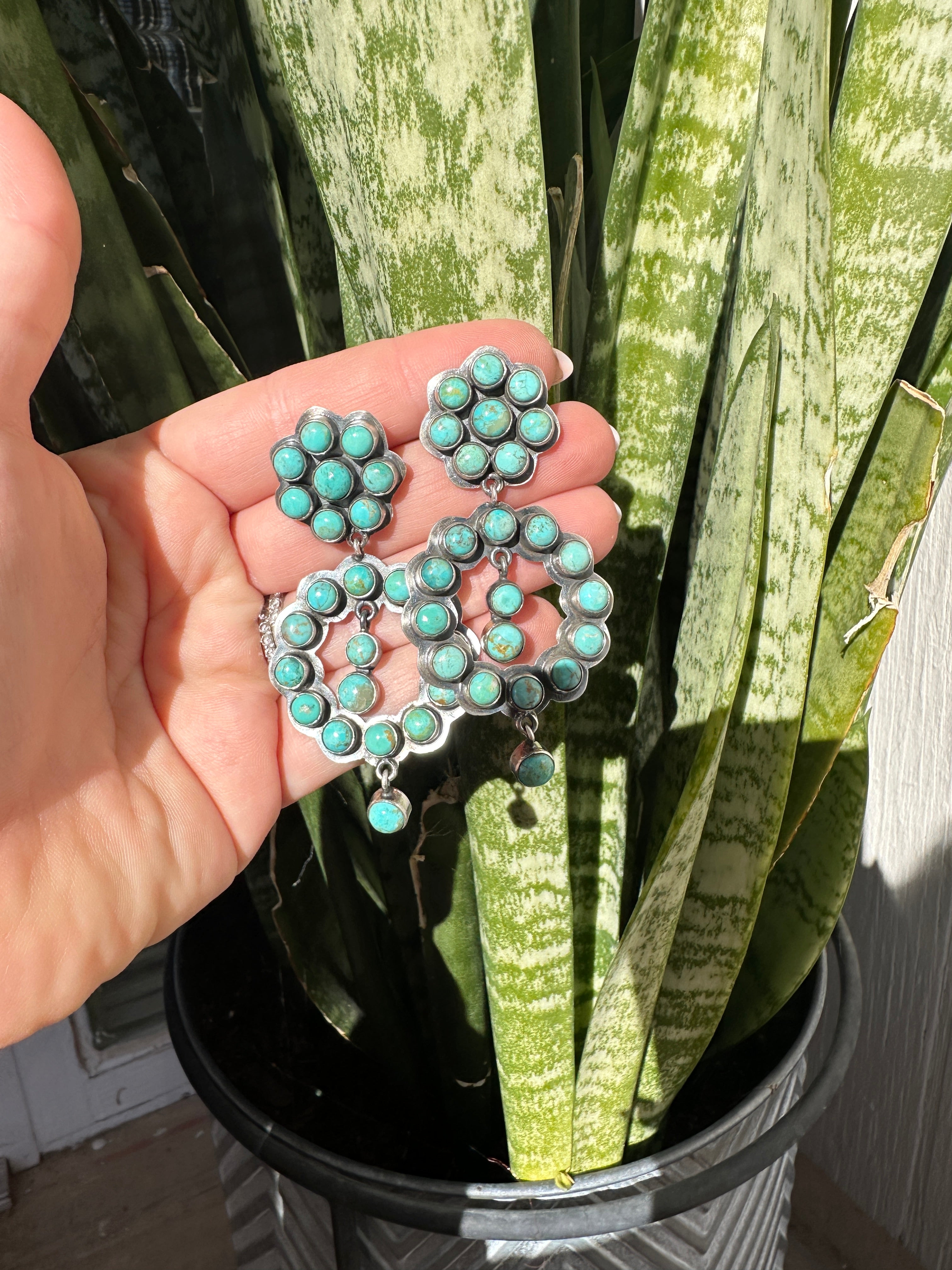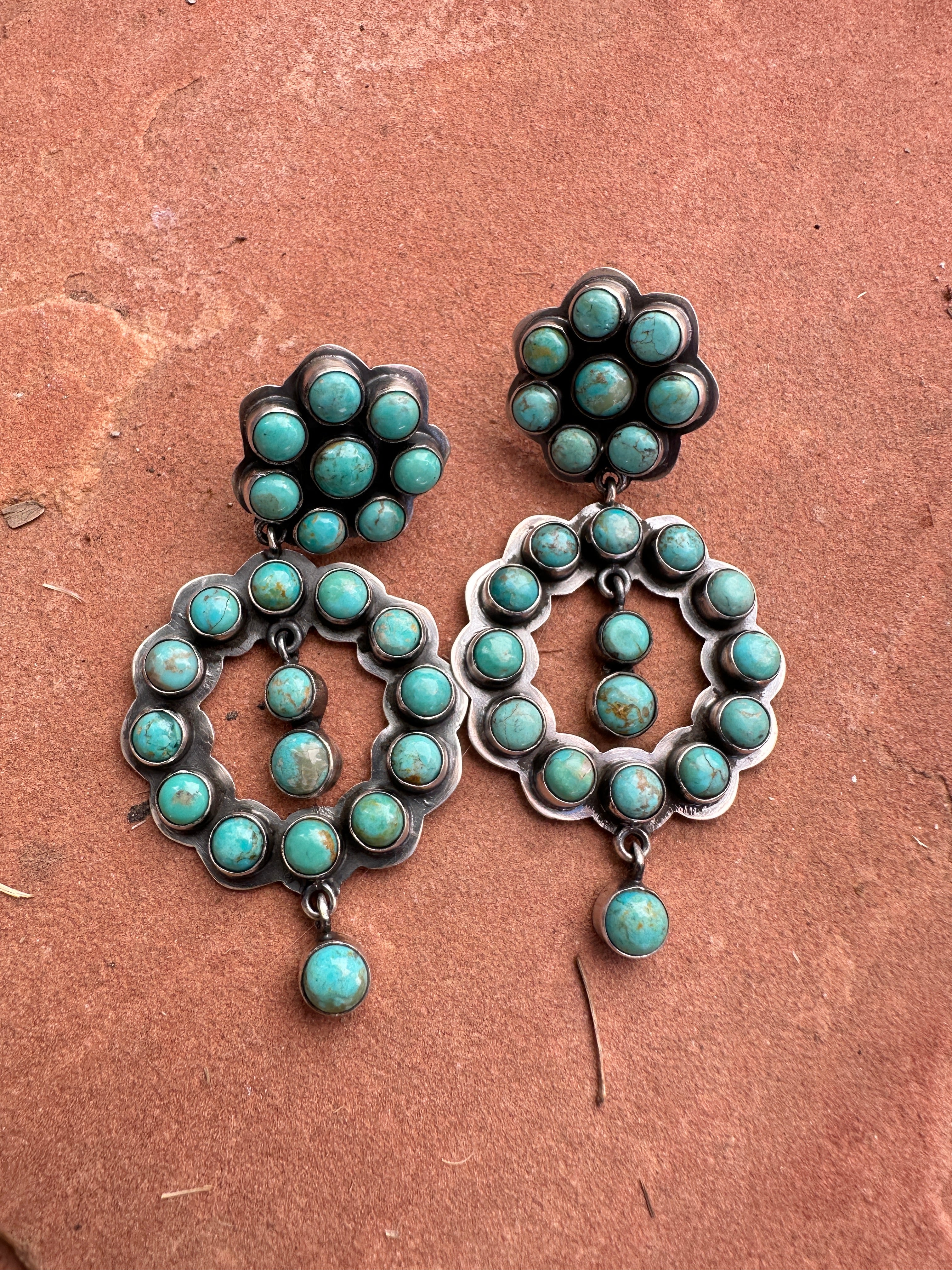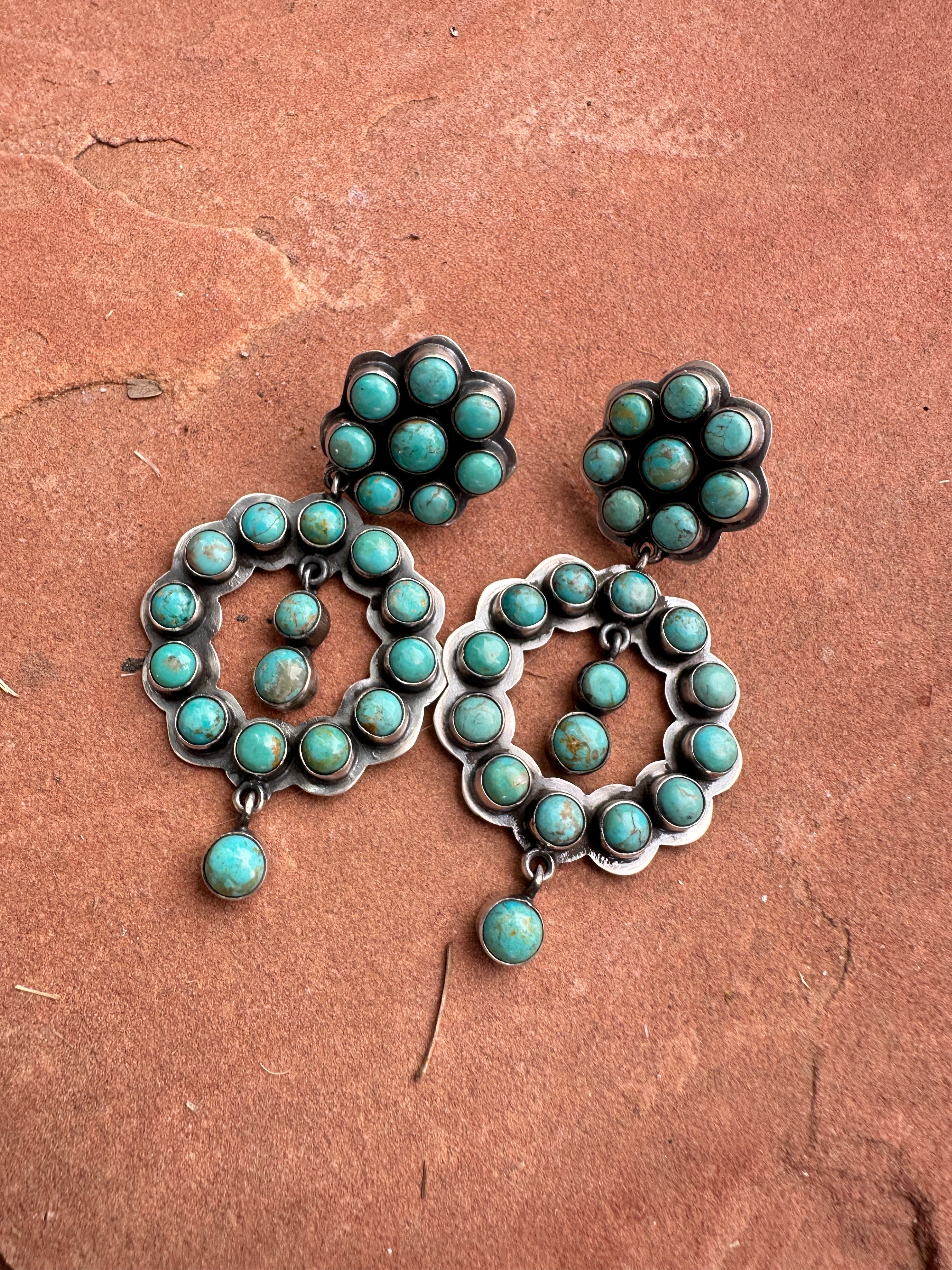 Handmade Turquoise and Sterling Silver Flower Cluster Post Dangle Earrings