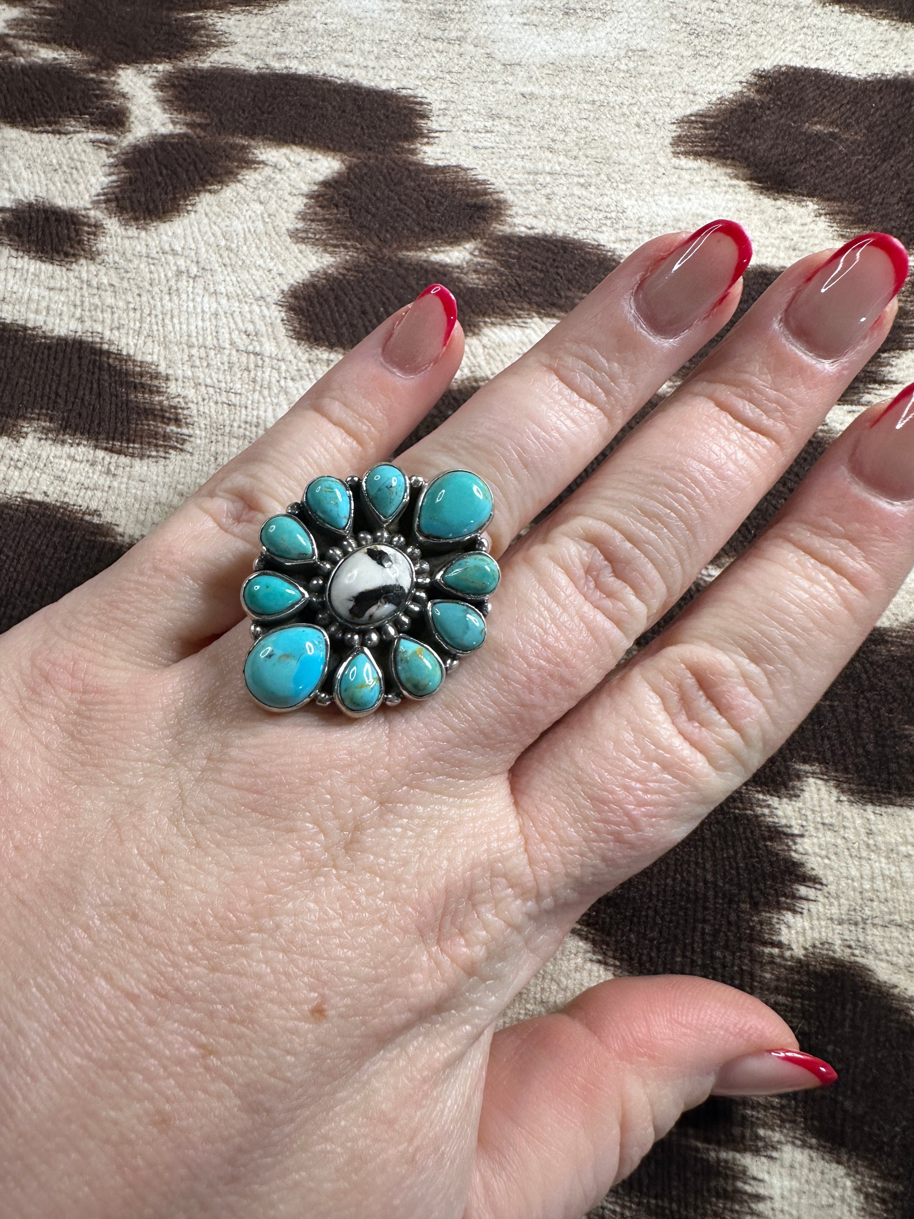 Gorgeous Handmade White Buffalo, Turquoise & Sterling Silver Ring. Such amazing craftsmanship!