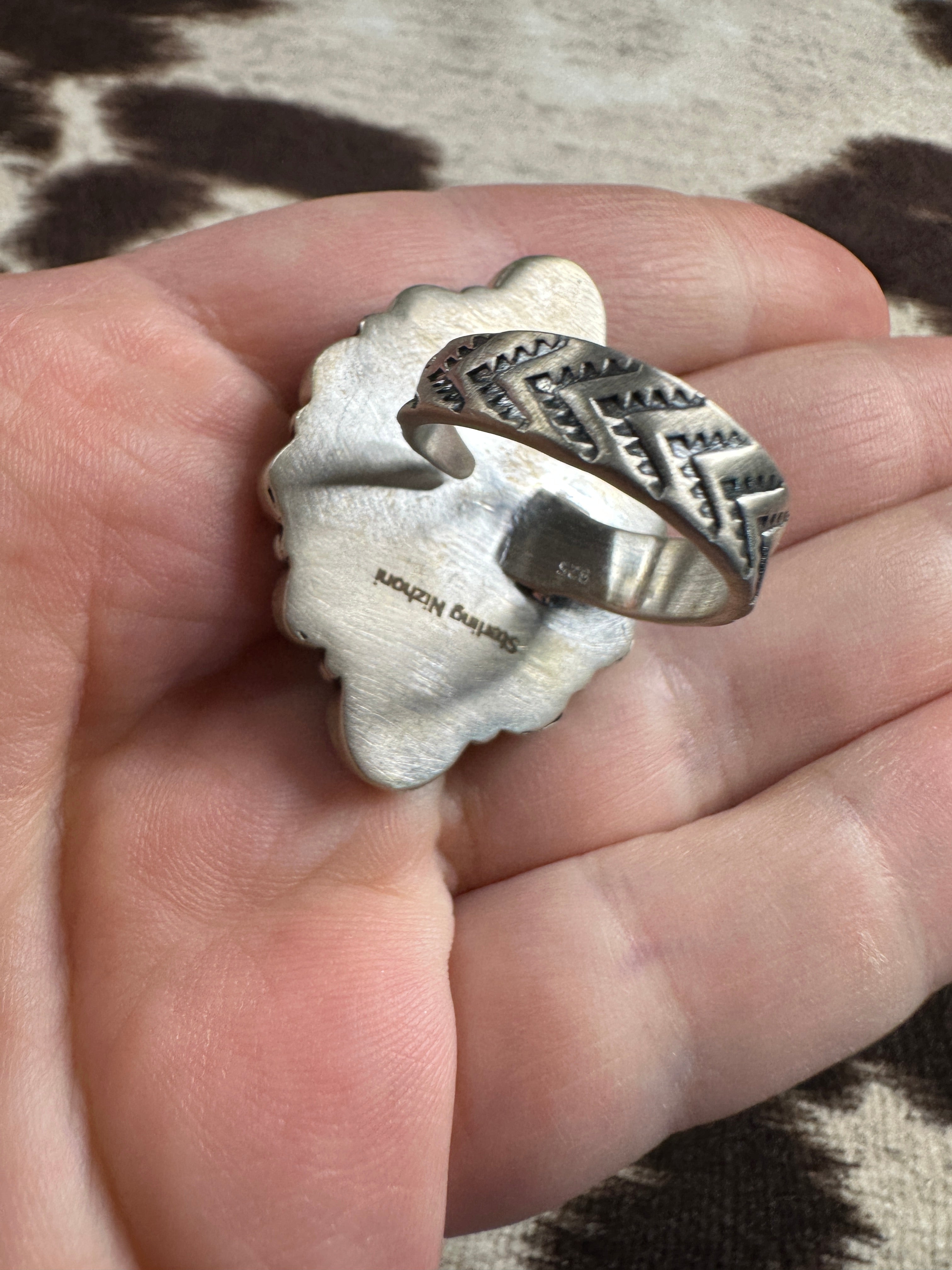 Stamped Sterling & Signed Nizhoni . This amazing ring is 1.5 inch long and 1 1/8 inch wide.