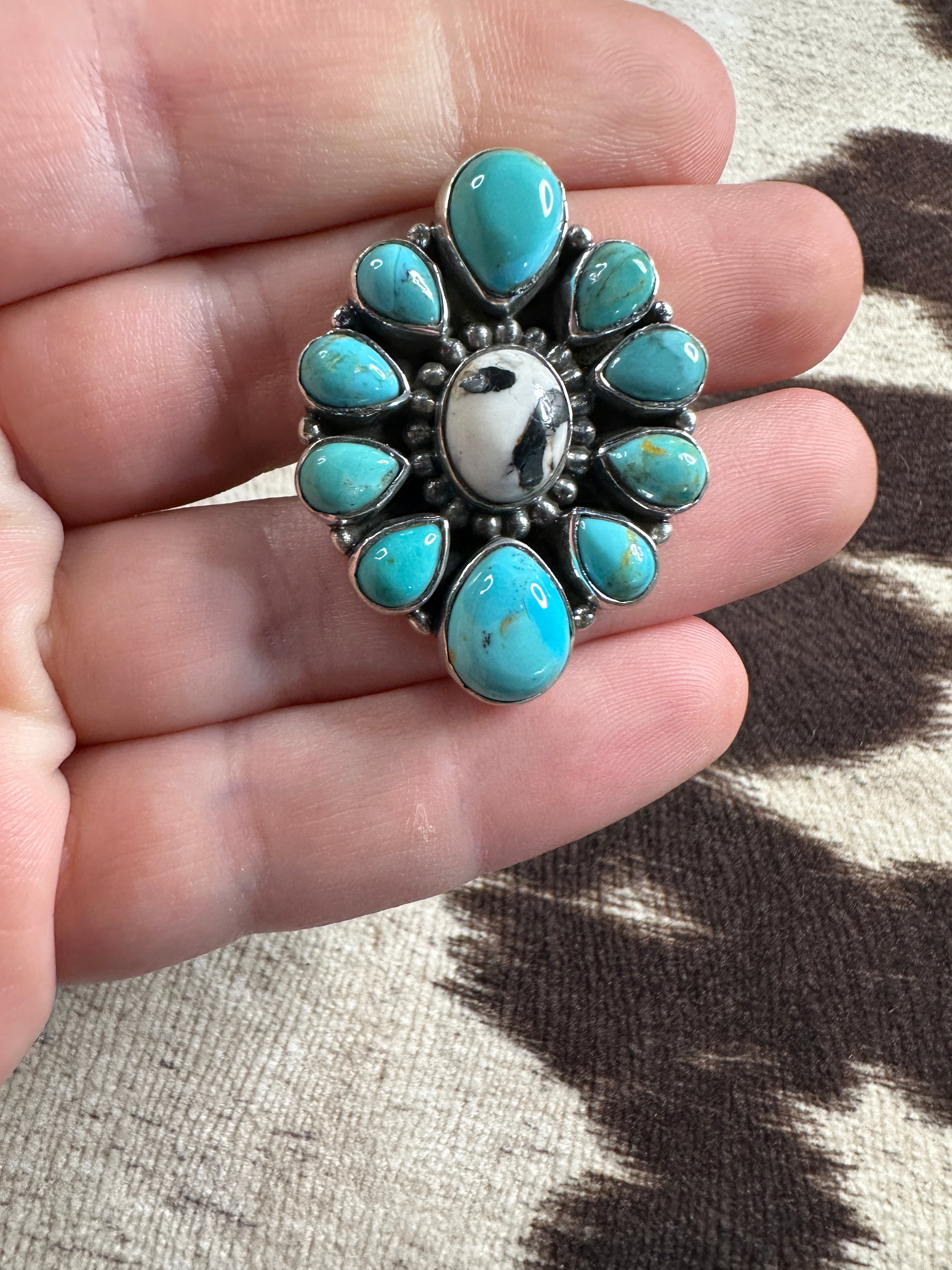 Handmade White Buffalo, Turquoise & Sterling Silver Adjustable Ring