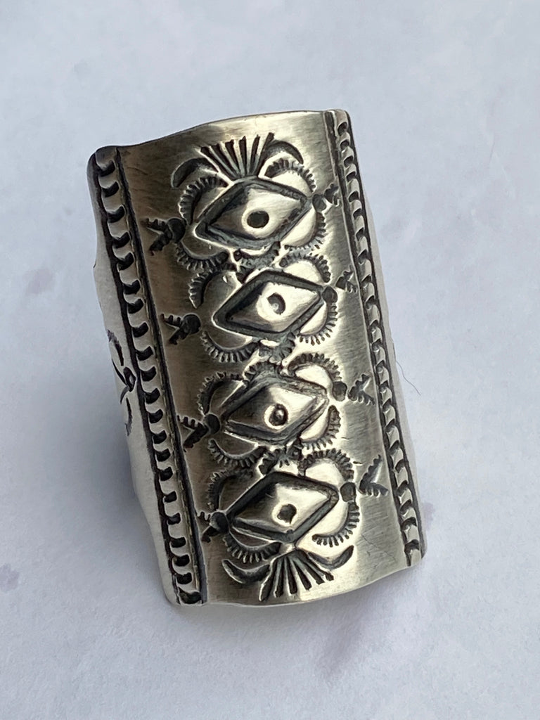 Handcrafted Marcella James Sterling Silver Concho Hand Stamped Ring