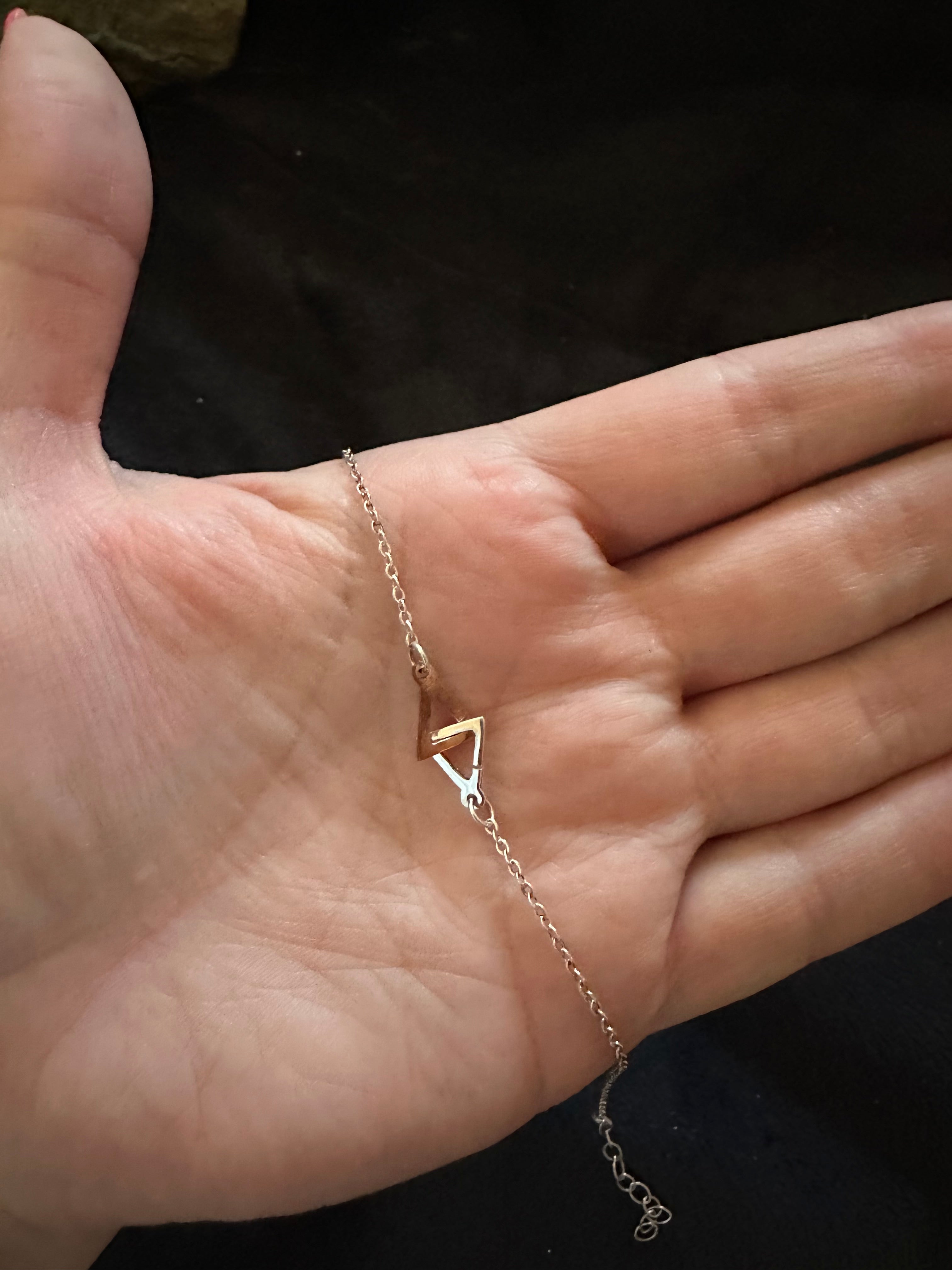 A subtle hint of copper in this very subtle bracelet make it a minimalist dream! An excellent everyday bracelet, and an easy gift to give! Measures 7 1/4" on the shortest ring, up to 8 1/2" at the end of the chain.