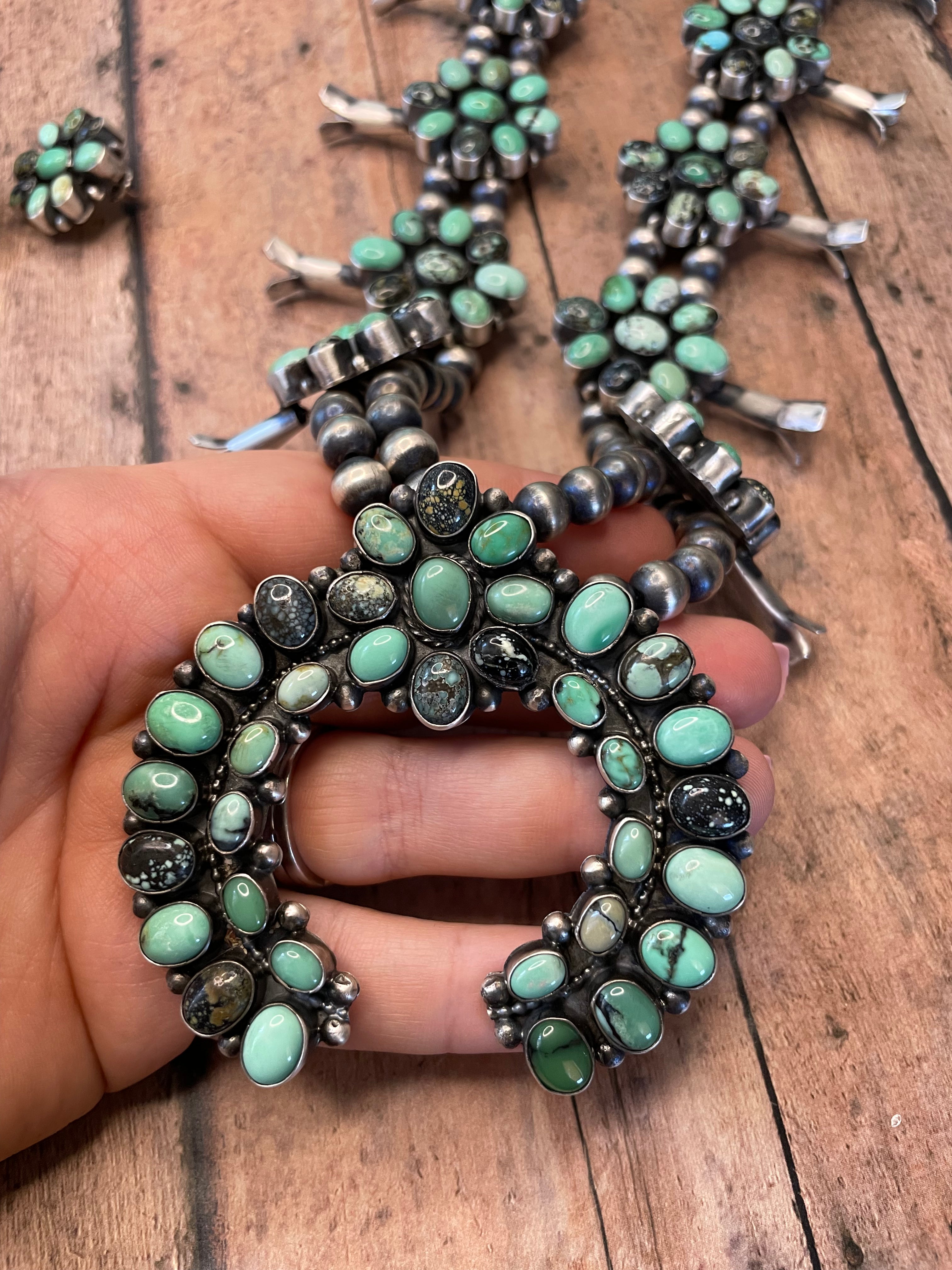 Navajo Carico Lake And Tibetan Turquoise Squash Necklace Earring Set Signed