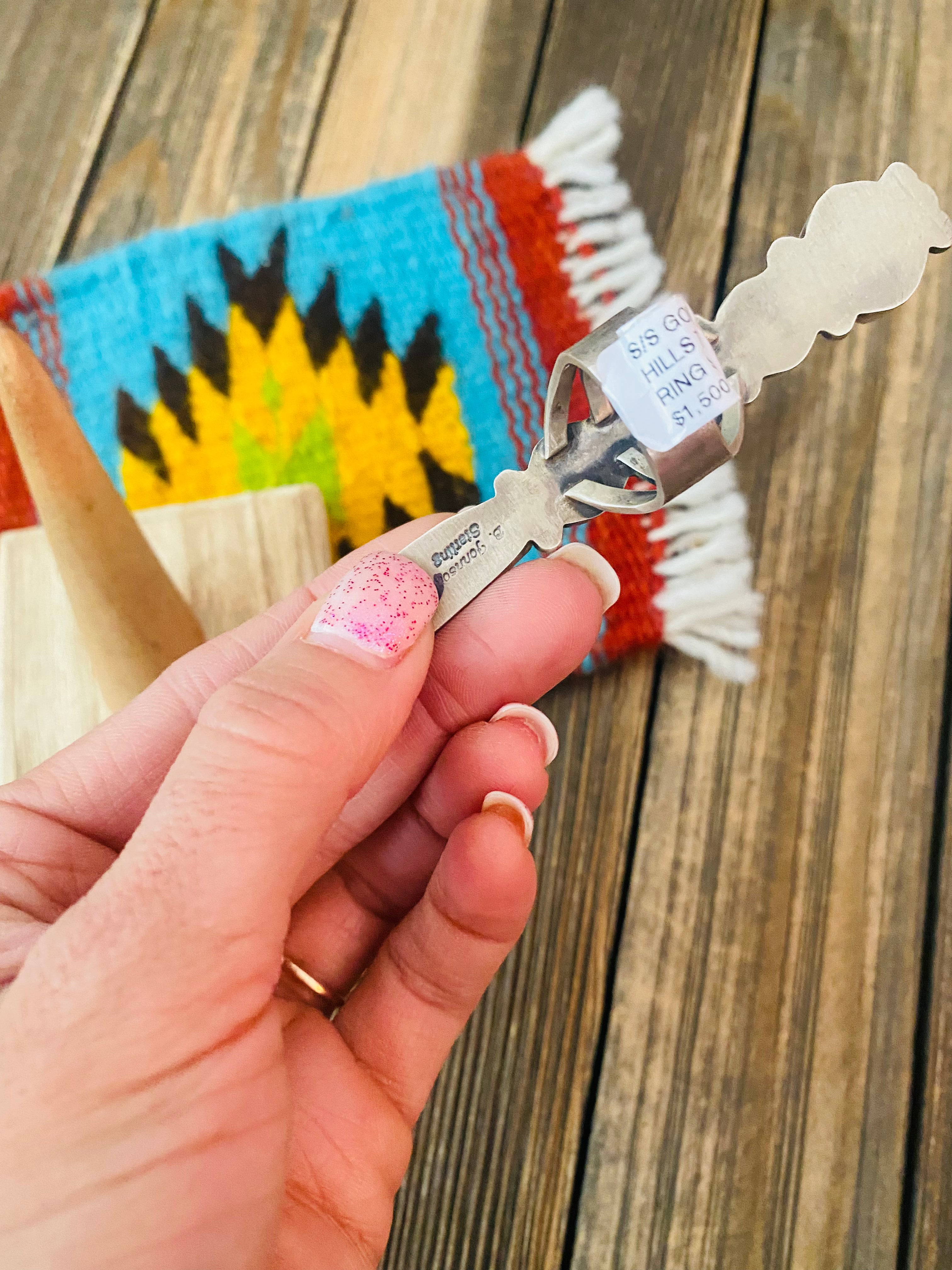 Navajo Golden Hills Turquoise & Sterling Silver Climber Ring Size 6 Signed