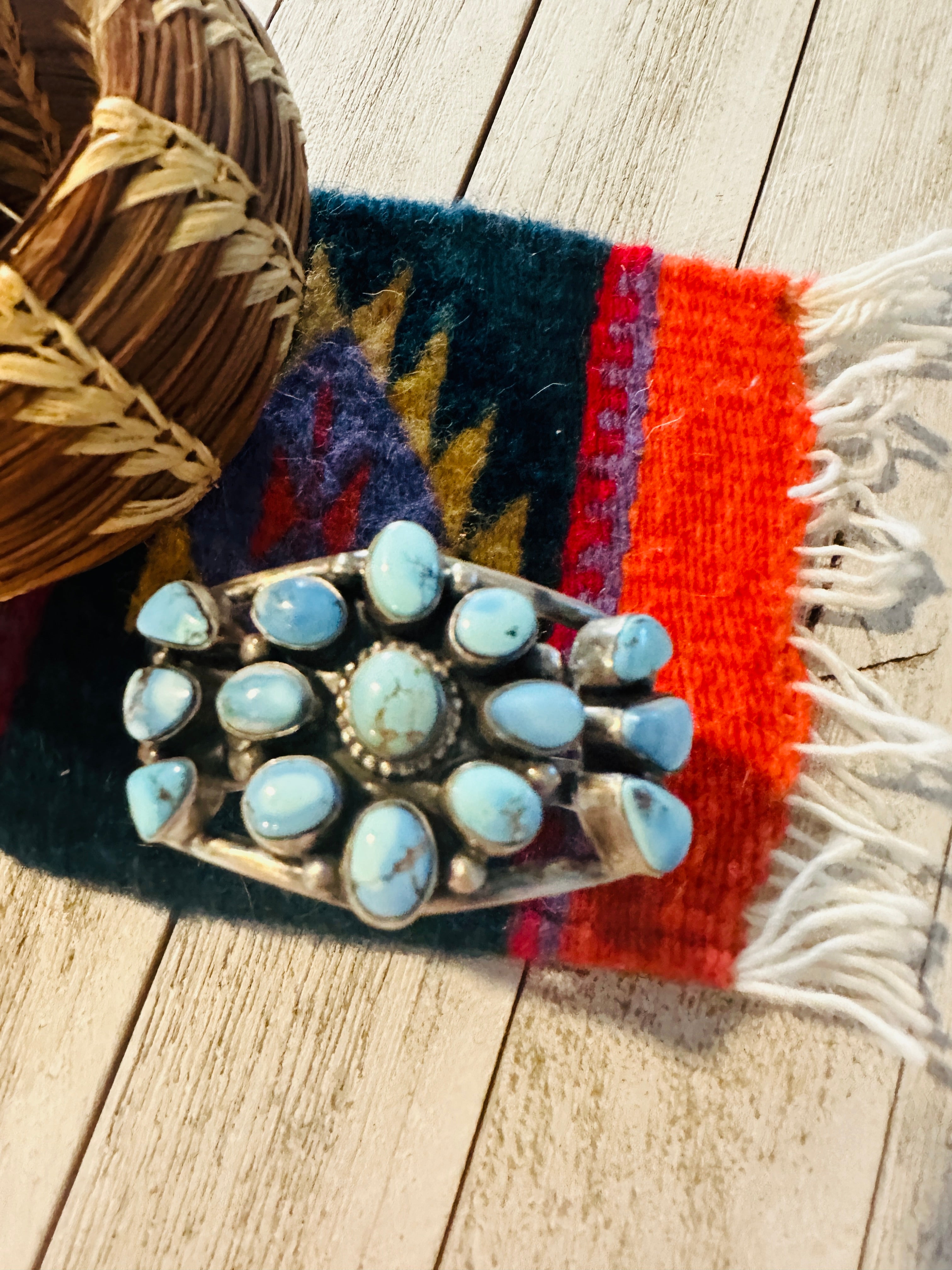 Handcrafted Golden Hills Turquoise & Sterling Silver Cluster Cuff Bracelet /