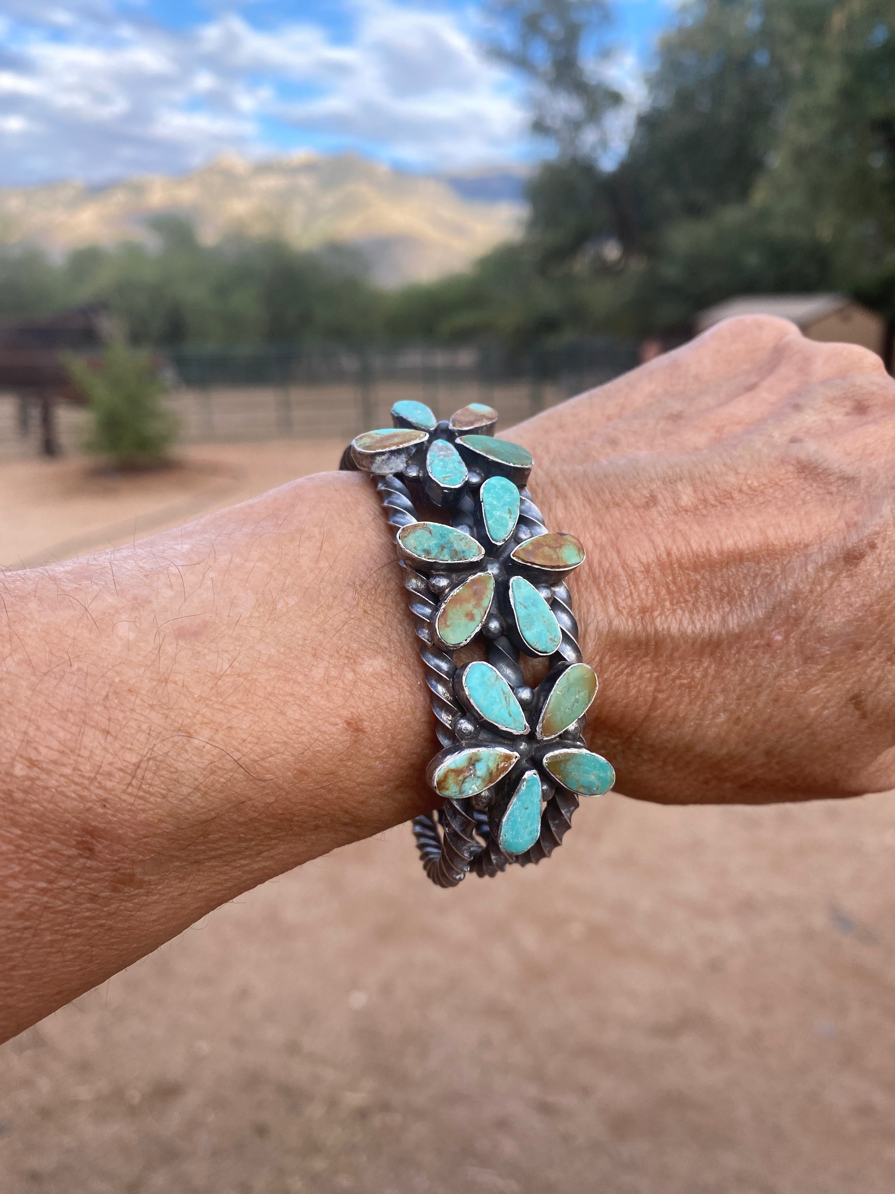 Handcrafted Jacqueline Silver Royston Turquoise & Sterling Cluster Cuff