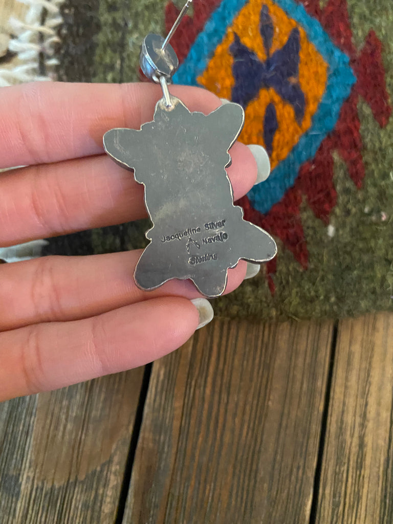 Beautiful Navajo Royston Turquoise And Sterling Silver Post Dangle Earrings. Measuring just under 2 1/2 inches long and 1 1/8 inches wide. Signed by the artist Jacqueline Silver and stamped Sterling. Absolutely gorgeous!
