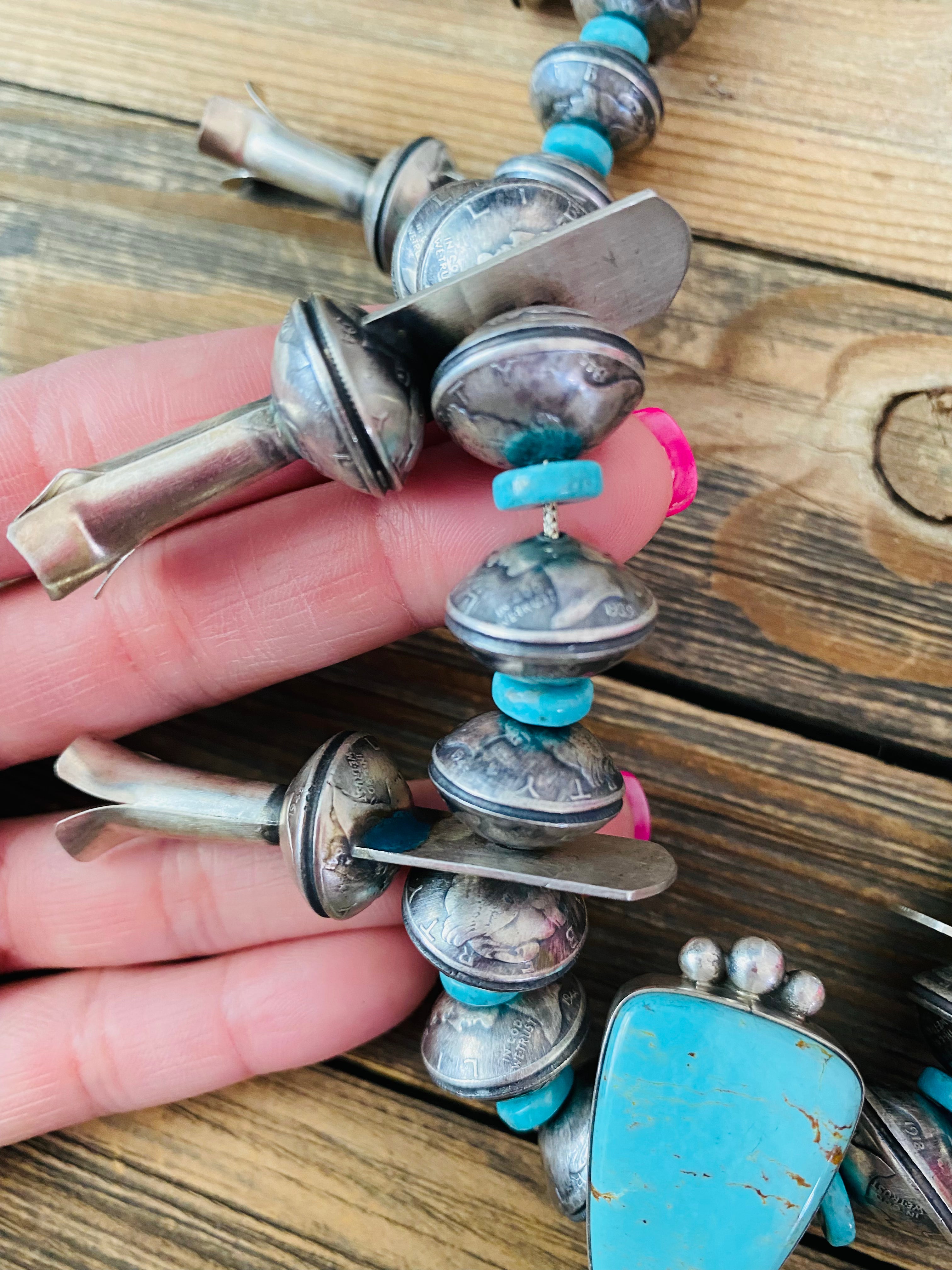 Navajo James McCabe Turquoise & Sterling Silver Liberty Dime Squash Blossom Necklace