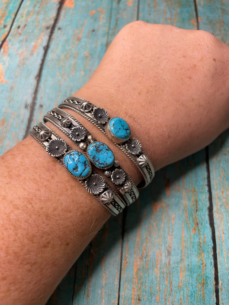 Handcrafted Kingman Turquoise Sterling Silver Cuff Bracelet