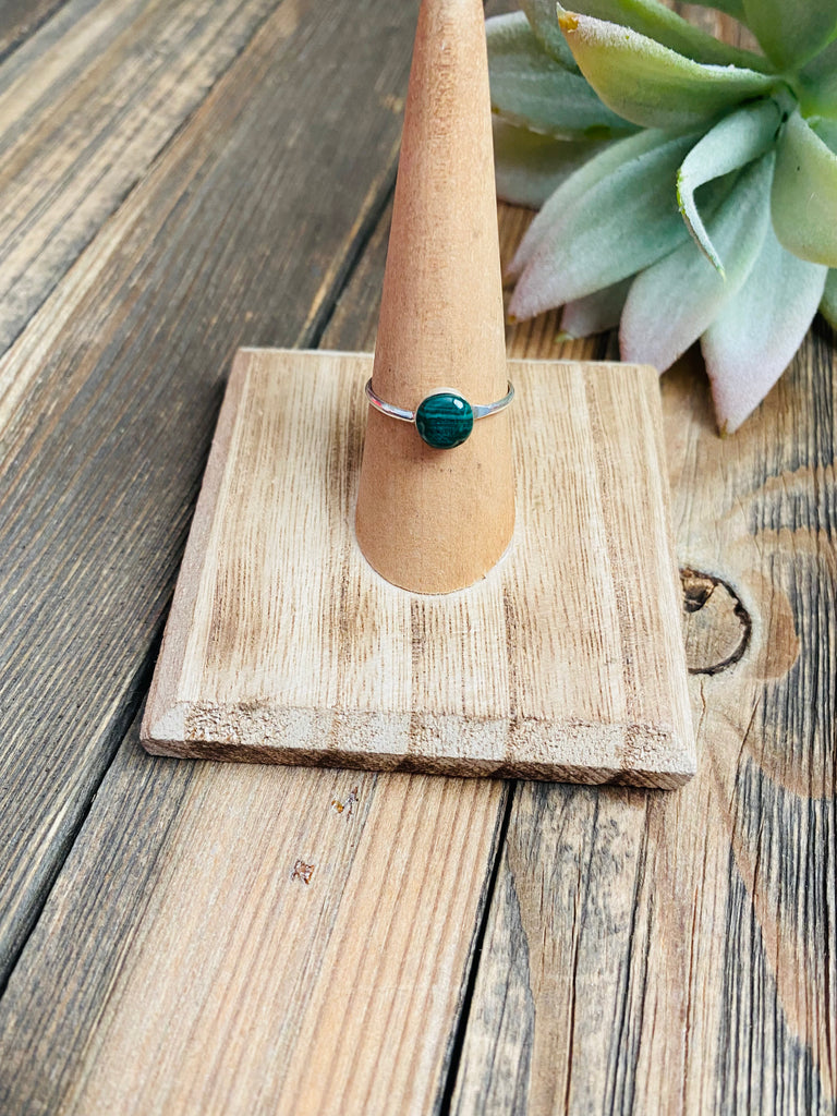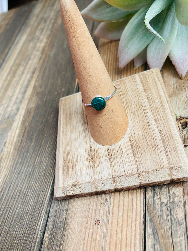 Loverly Malachite and Sterling Silver Ring. Such a great addition to any collection! Measures just over 1/4 of an inch across. Stones are natural and may vary: