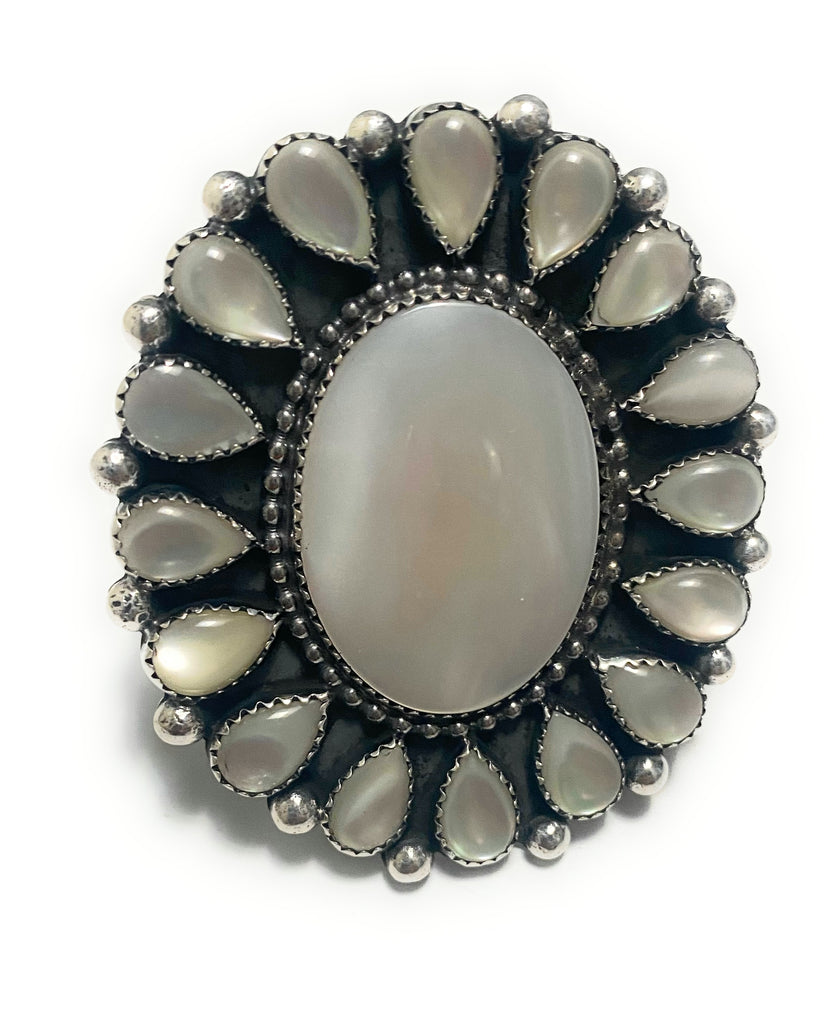 Navajo Mother Of Pearl And Sterling Silver Adjustable Ring