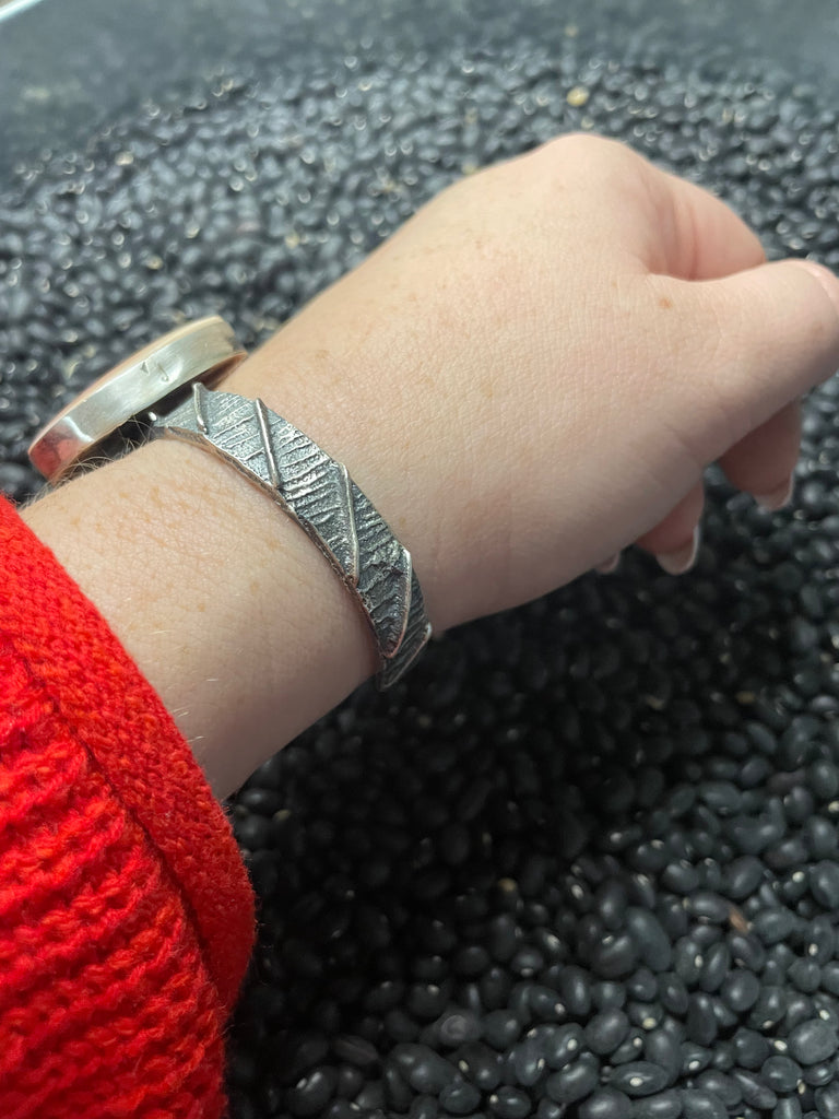 Navajo Pink Conch & Sterling Silver Tufa Cast Cuff Bracelet Signed