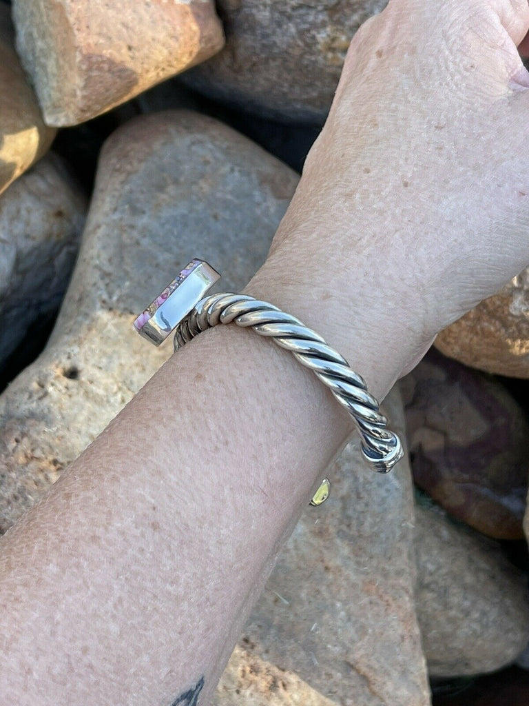 Handcrafted Pink Dream Mojave Sterling Silver Solid Twist Cuff