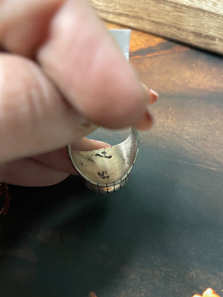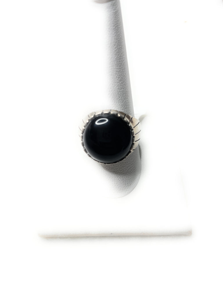 Navajo Ray Jack Sterling Silver Black Onyx Round Ring Size 10.