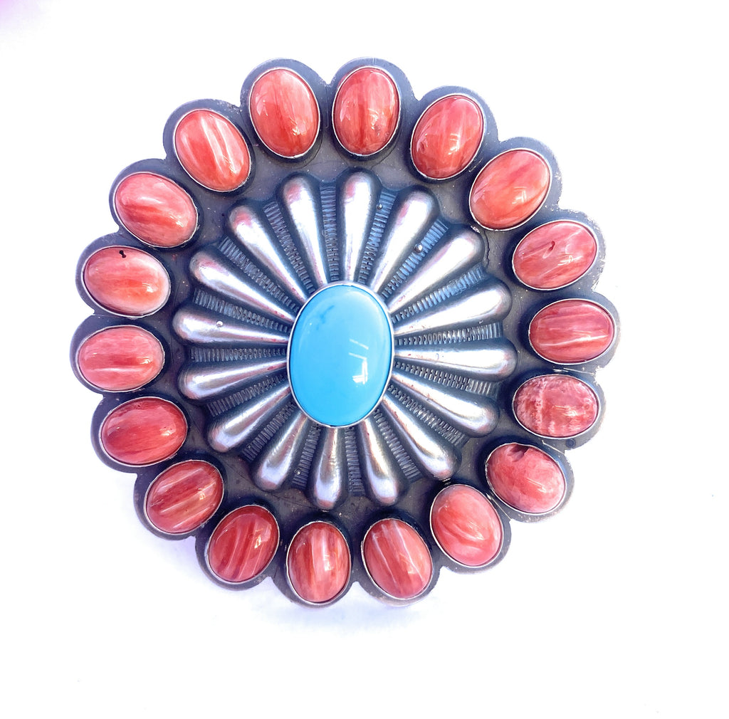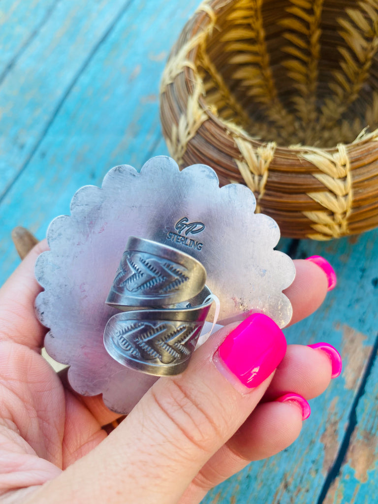 Navajo Red Spiny, Turquoise & Sterling Silver Adjustable Ring