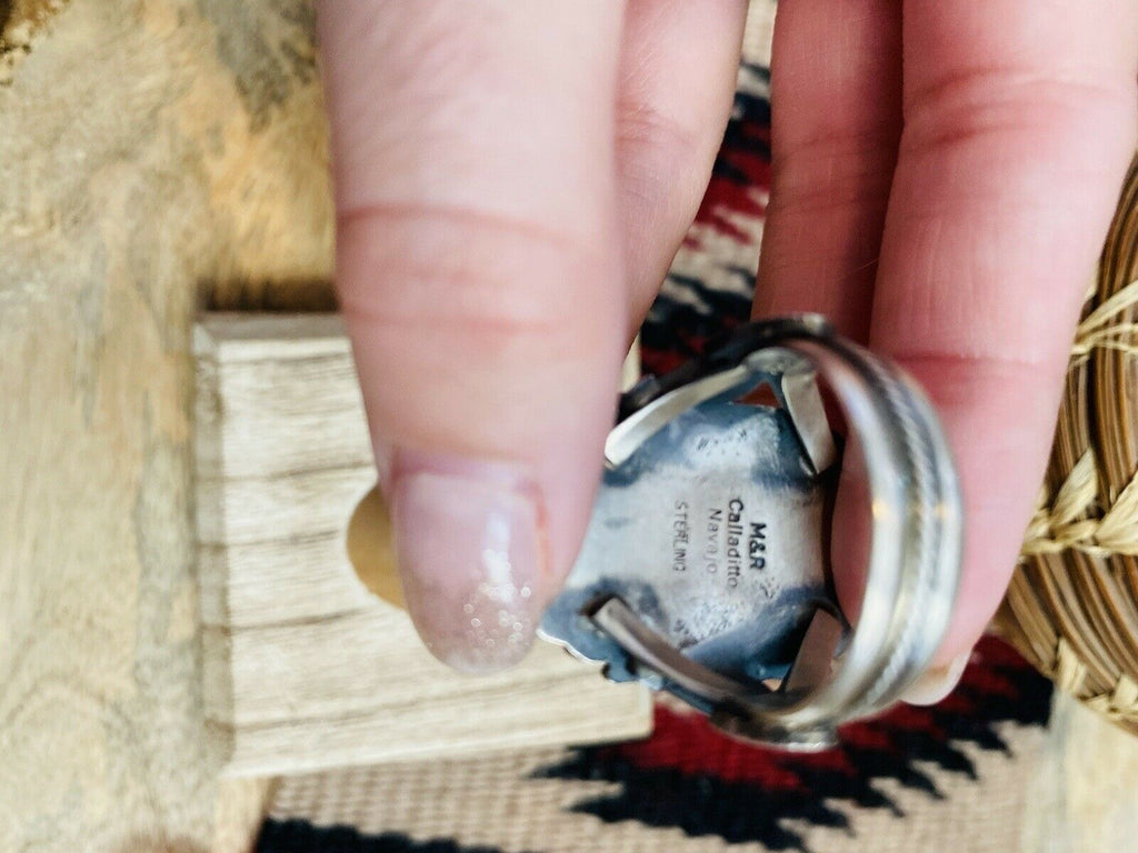 Beautiful Handmade Royston Turquoise and Sterling Silver Ring Size 12. Great statement piece of for everyday wear! The face of this ring measures 1 1/4 inches long and just over 7/8 of an inch wide. Signed by the artist M & R Calladitto and stamped Sterling.