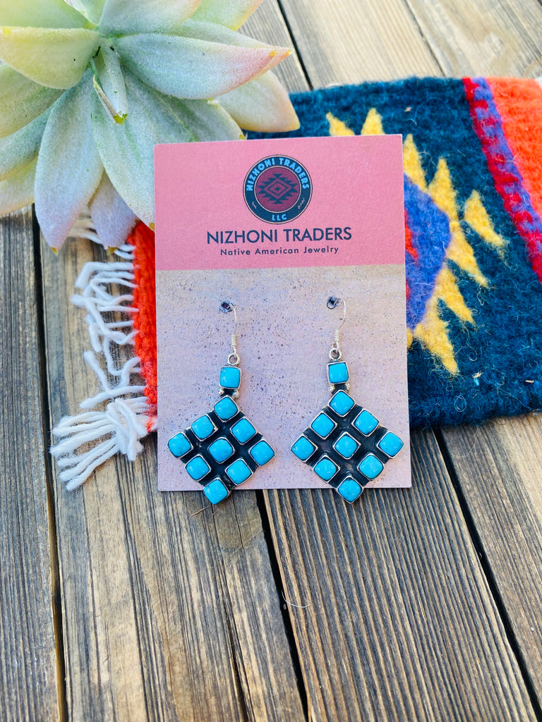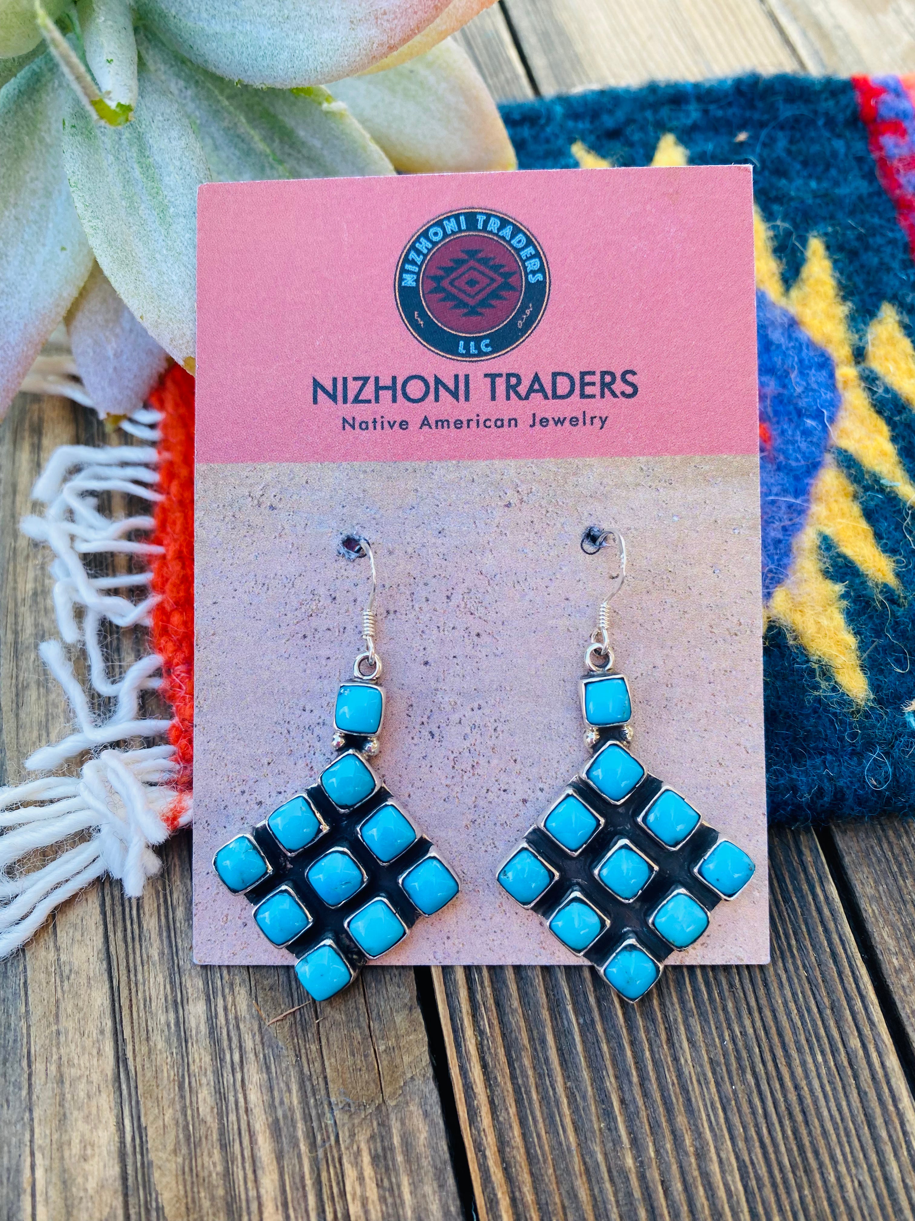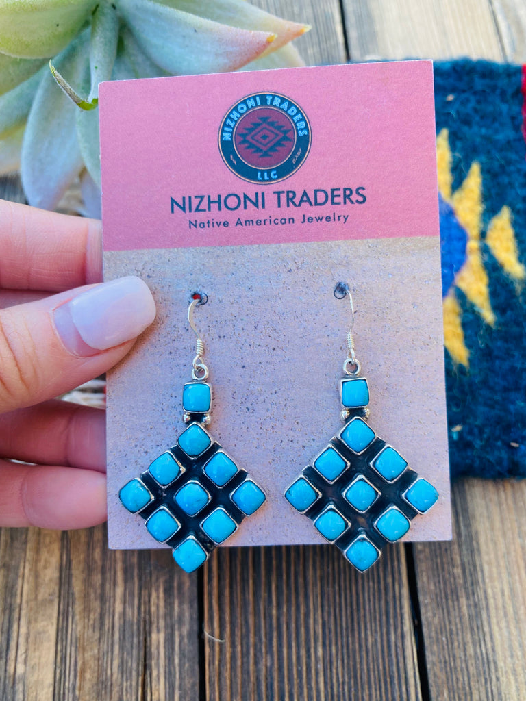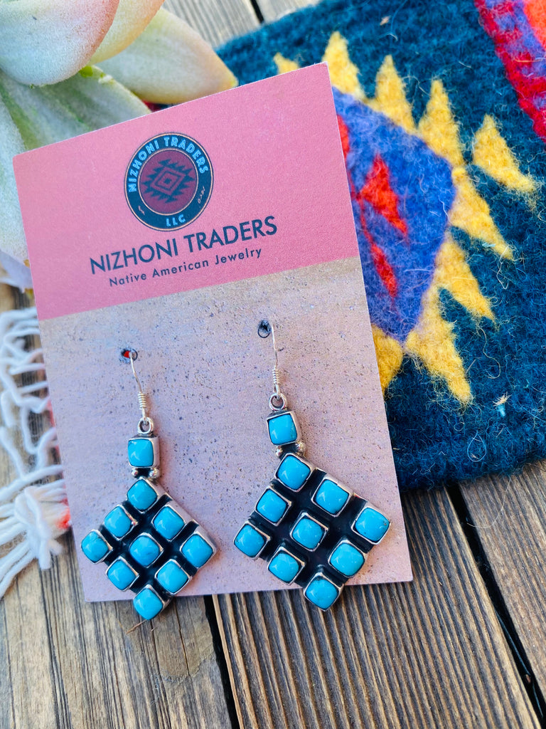 Handcrafted Sleeping Beauty Turquoise & Sterling Silver Cluster Dangle Earrings