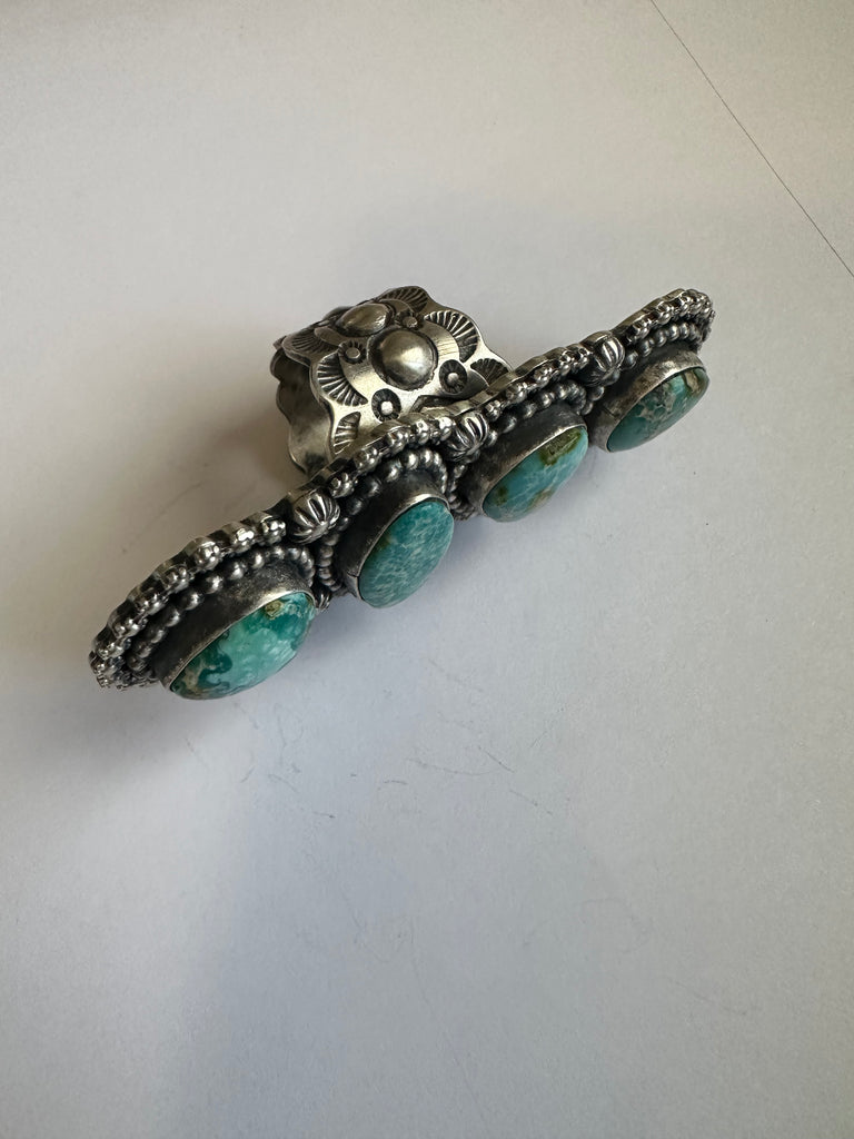 Navajo Sonoran Mountain Turquoise & Sterling Silver 4 Stone Ring Size 7.5 Signed