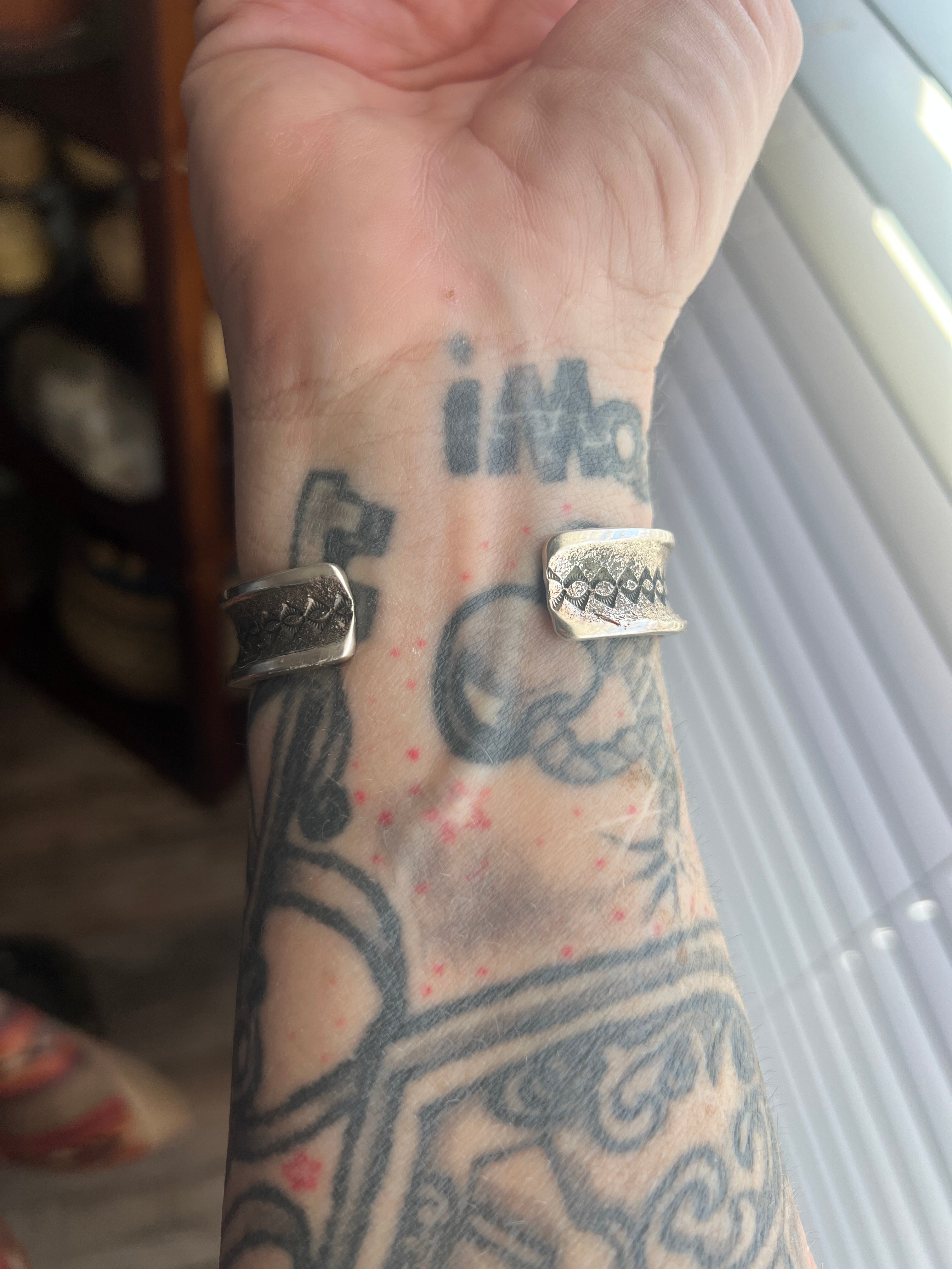 Will it fit? The best way to determine your ideal cuff size is to measure the inside circumference of a favorite cuff you already wear comfortably. The total measurement is tip to tip (inside) + the open gap. This can be accomplished with a soft measuring tape or a length of string that can be subsequently stretched along a ruler for measurement. You can use the same methods around your wrist to determine total size if you don’t have a cuff to use. If you stack bracelets, you may want to go a little larger for wiggle room, but if you only wear one bracelet at a time, a snugger fit is usually okay. If the cuff is very wide, you will generally need a larger size than usual. It comes down to your personal preference and comfort, but the more you collect, the more familiar you become with what works for you.