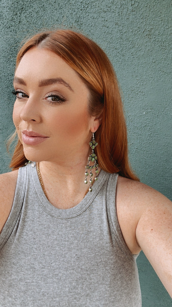 Gorgeous Colors in these beautiful Sonoran Gold Turquoise Dangle Earrings. Set in Sterling Silver. Signed by Artist and stamped Sterling. Measuring 5 inches long and 1 1/4 inch wide. Truly a beautiful pair of earrings.