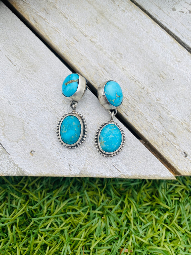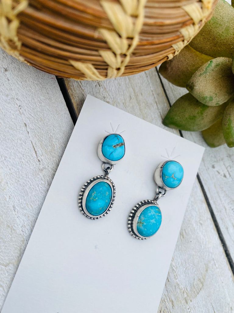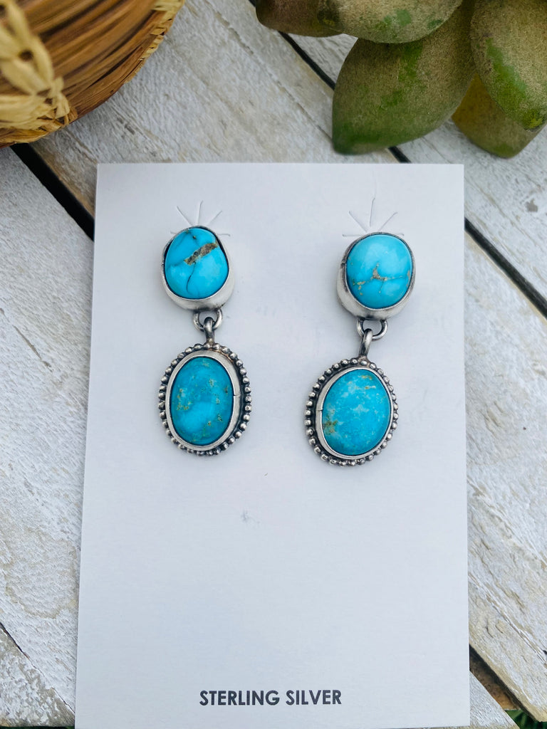 Handcrafted Sterling Silver And Turquoise Dangle Earrings Signed