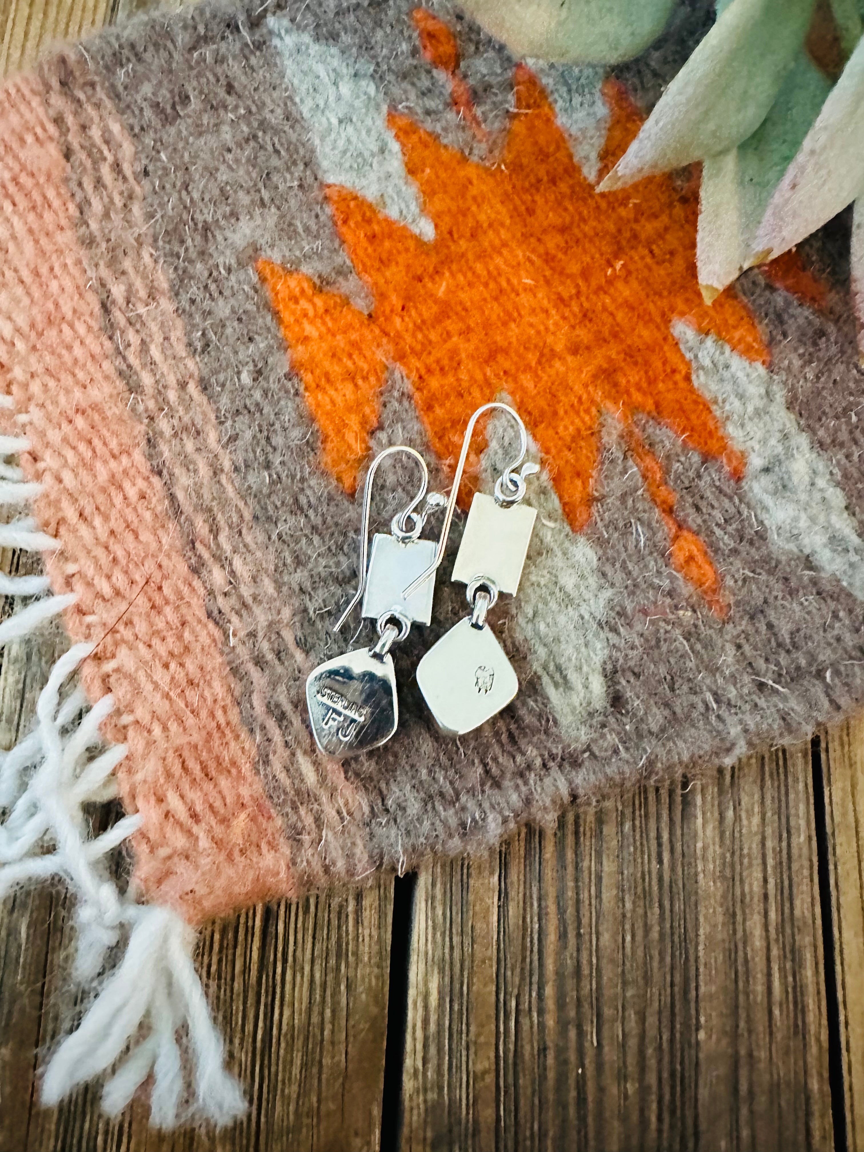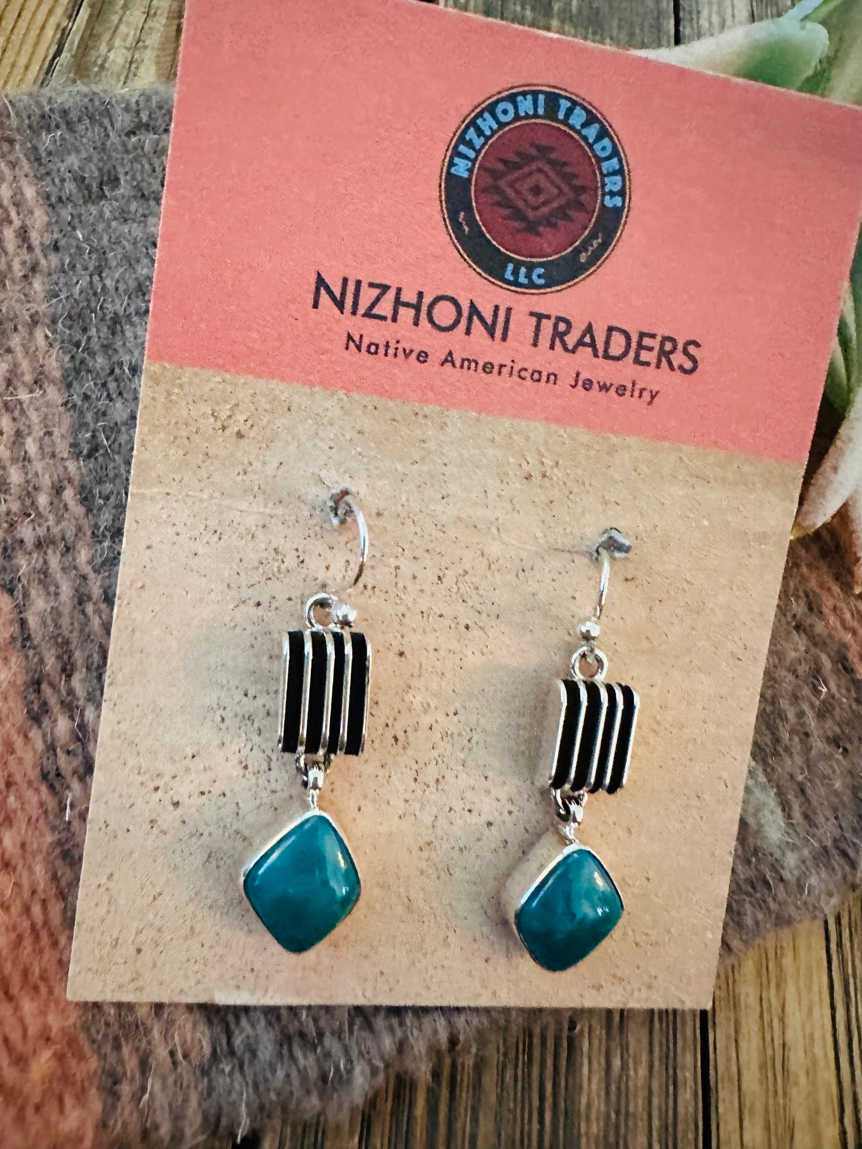 Navajo Sterling Silver & Carico Lake Turquoise Dangle Earrings