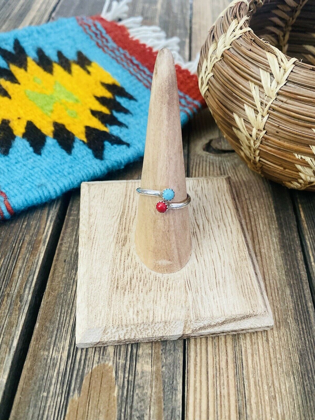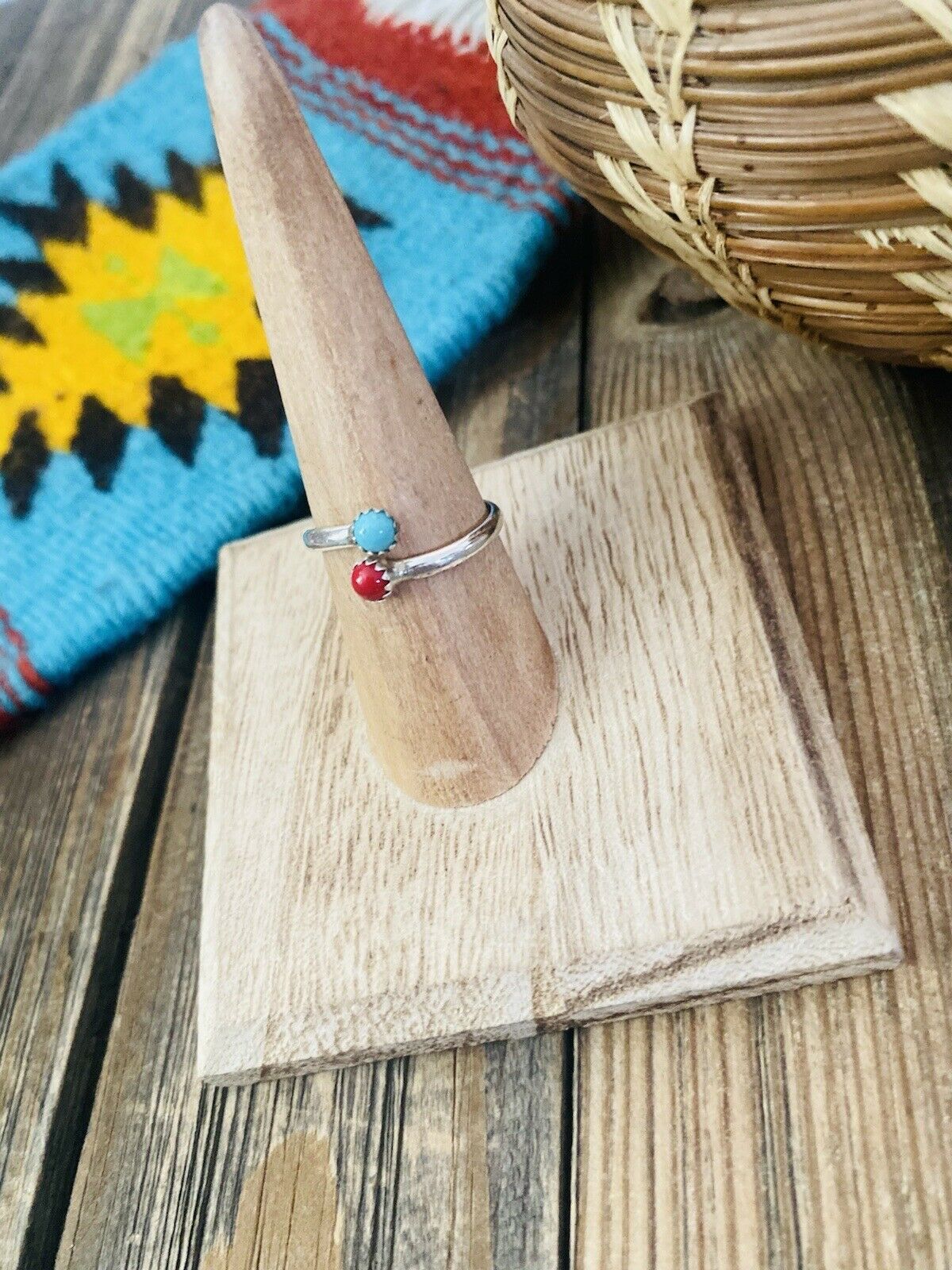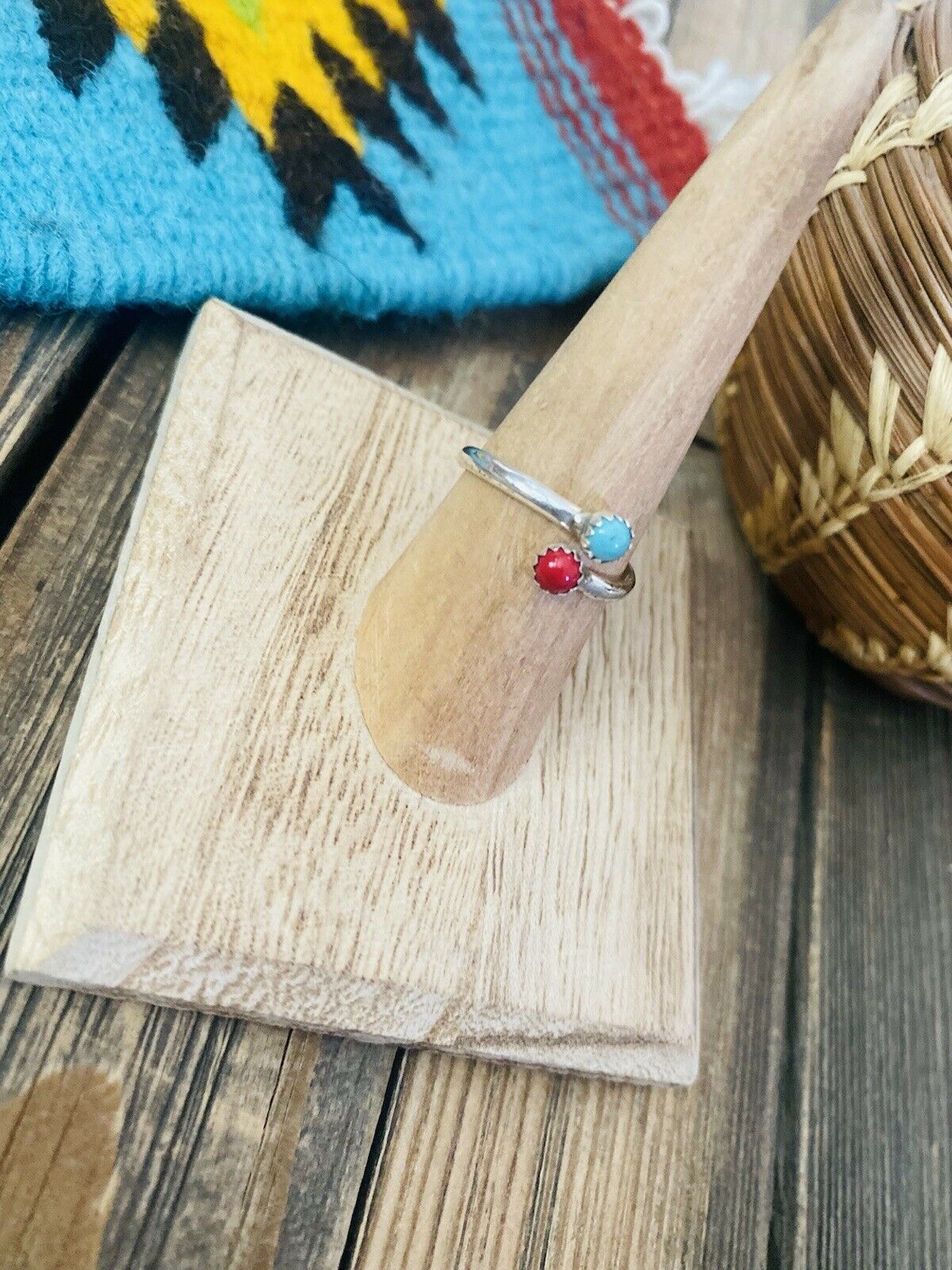 Handcrafted Sterling Silver, Coral & Turquoise Adjustable Ring