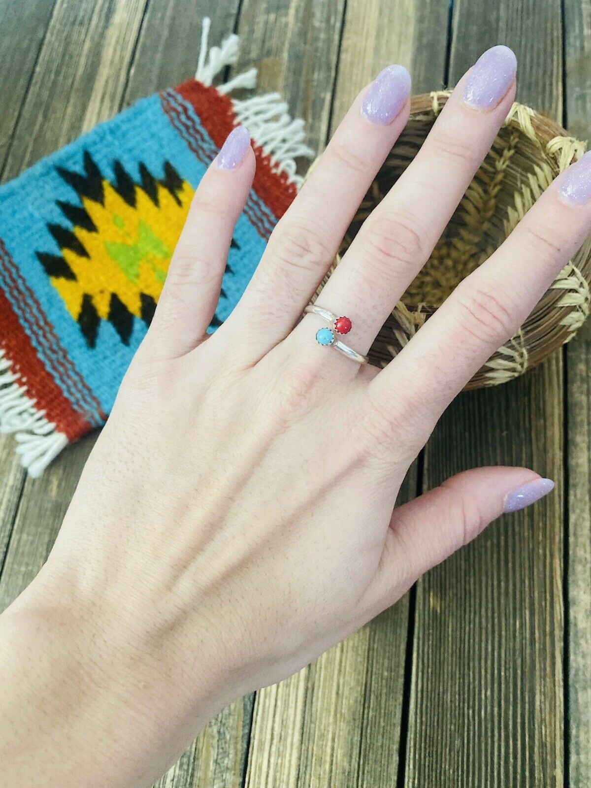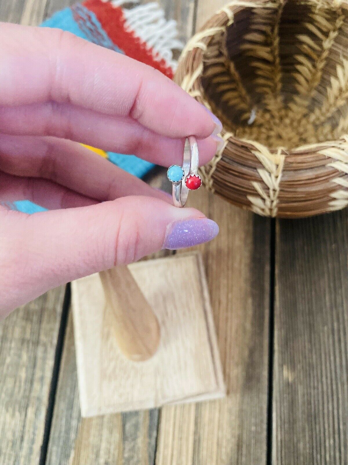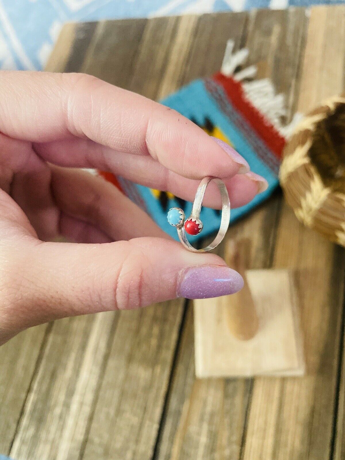 Handcrafted Sterling Silver, Coral & Turquoise Adjustable Ring