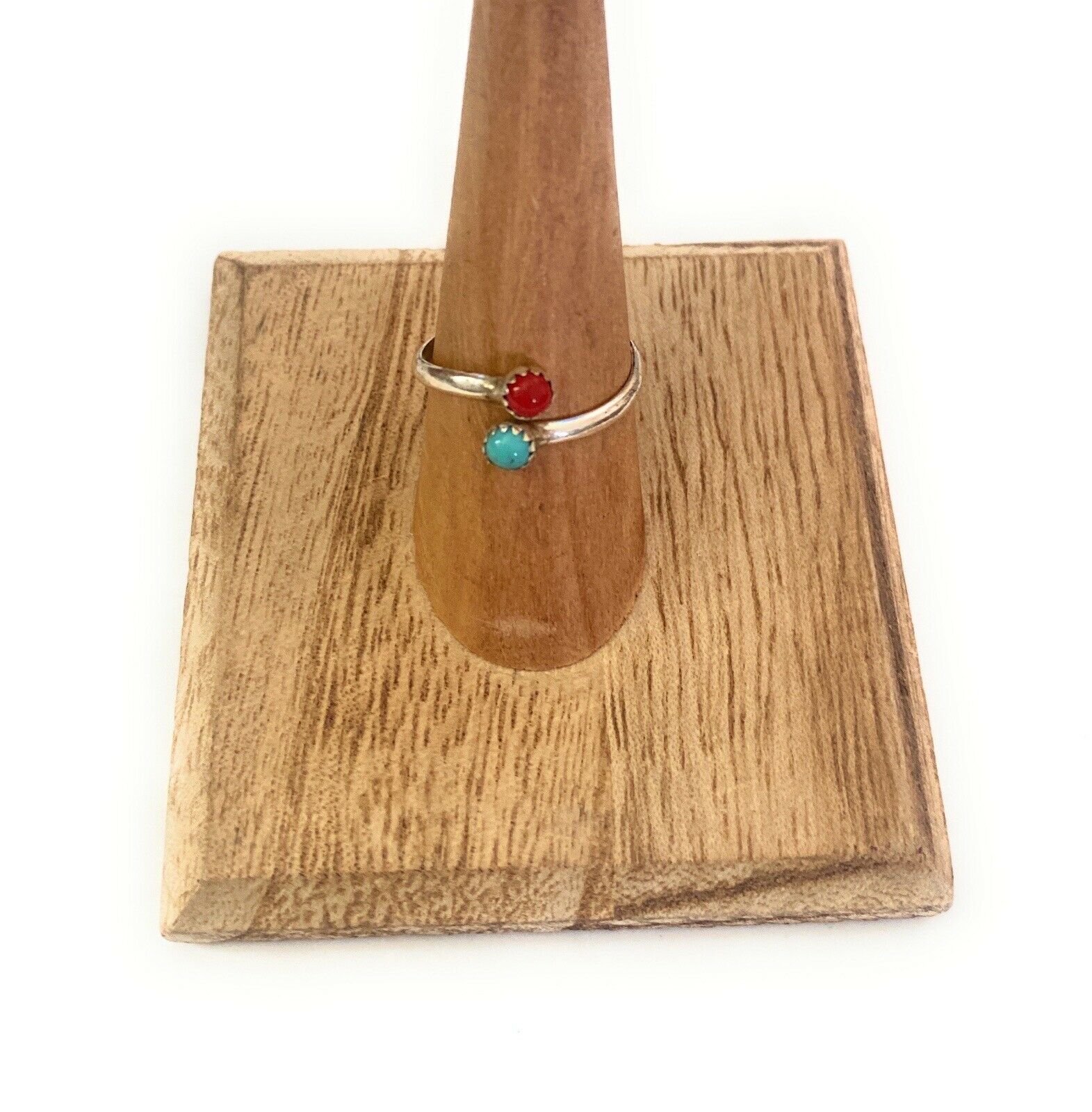 Handcrafted Sterling Silver, Coral and Turquoise Adjustable Ring. Great, simple ring for everyday! Ring measures 3/8 of an inch wide. Stamped Sterling. Great gift idea!