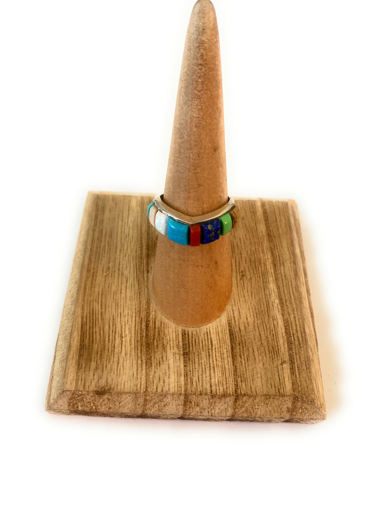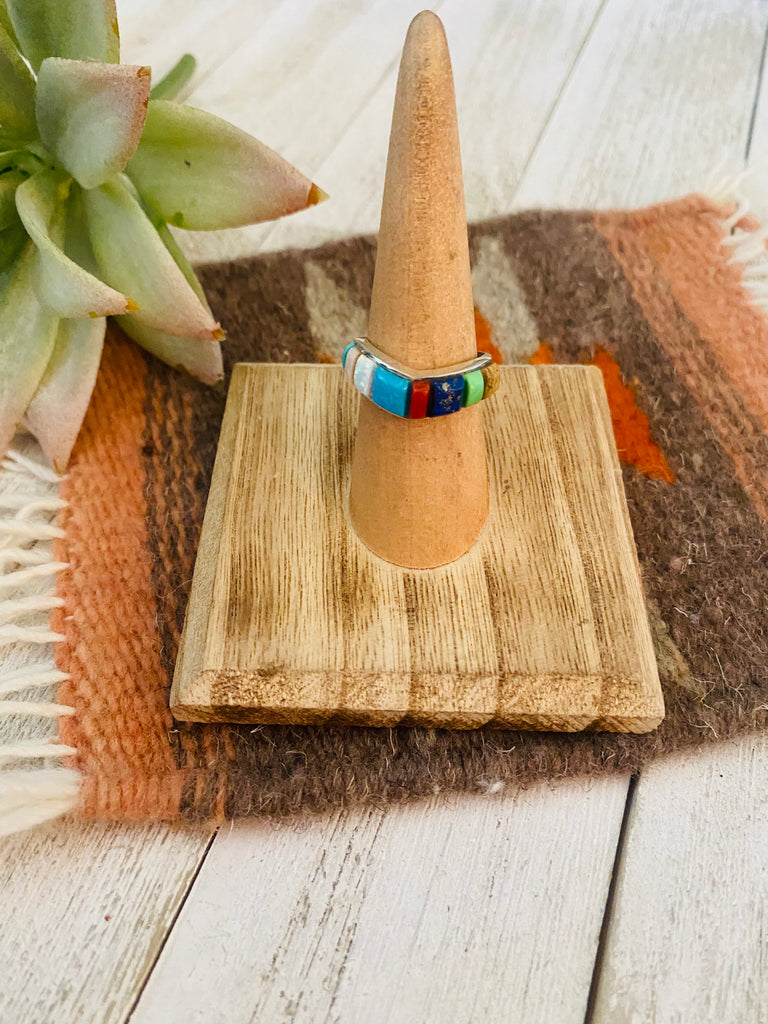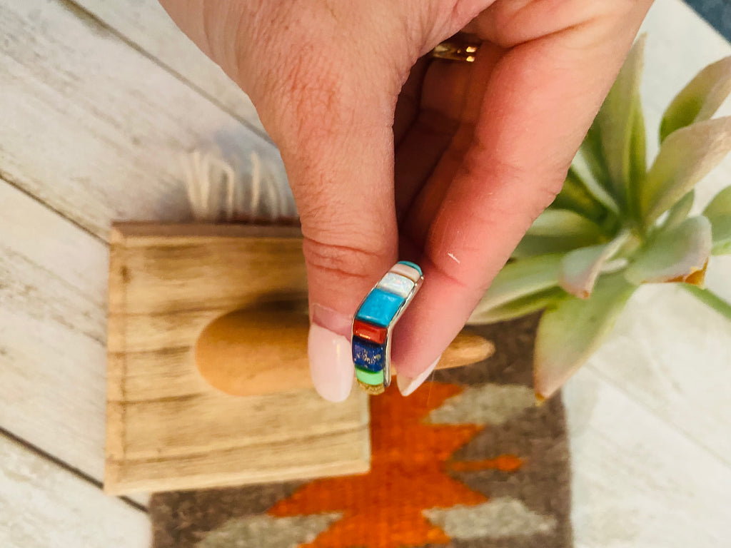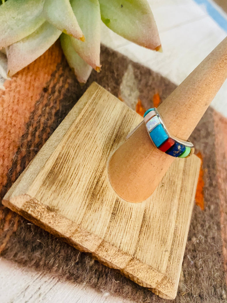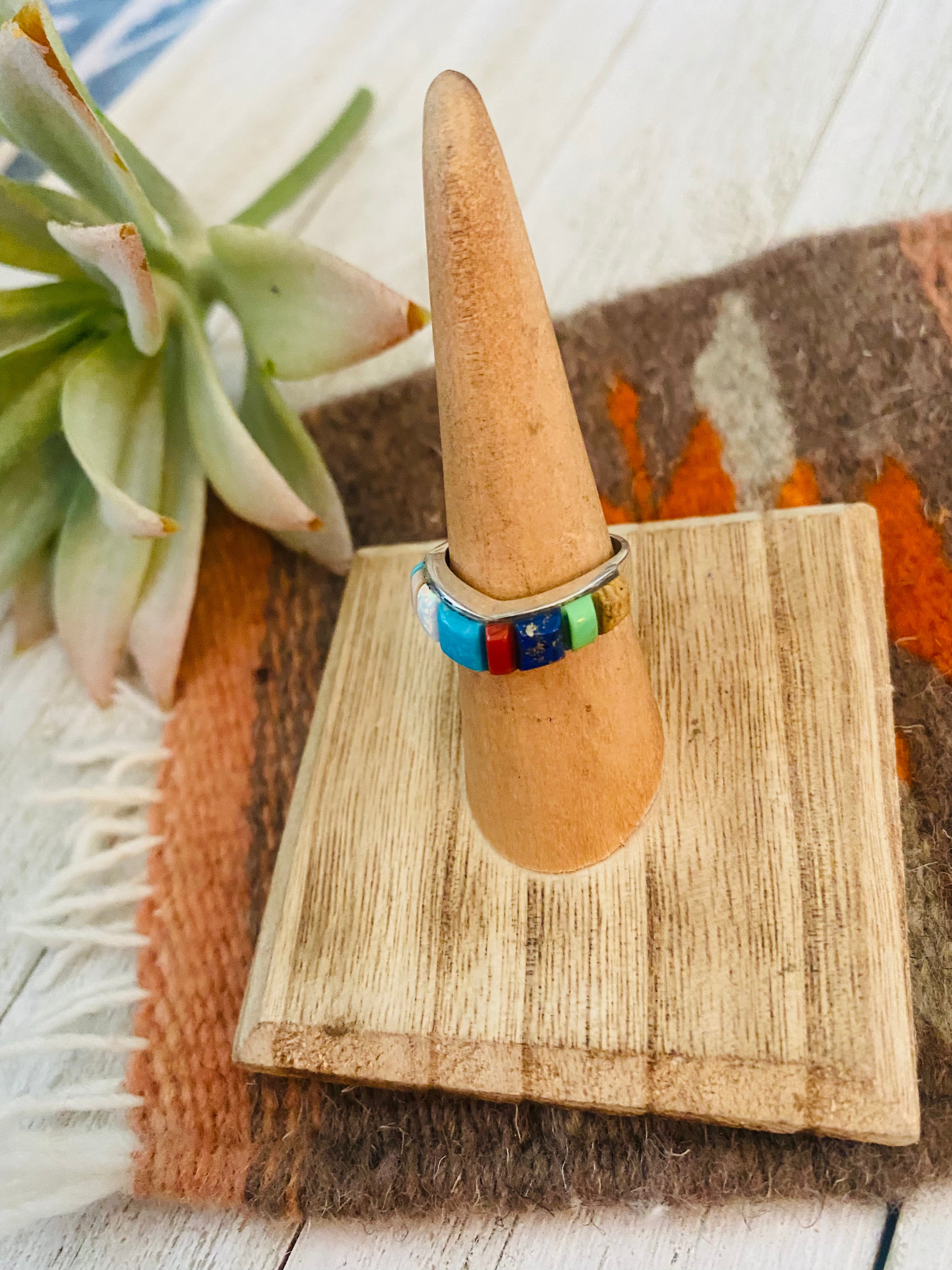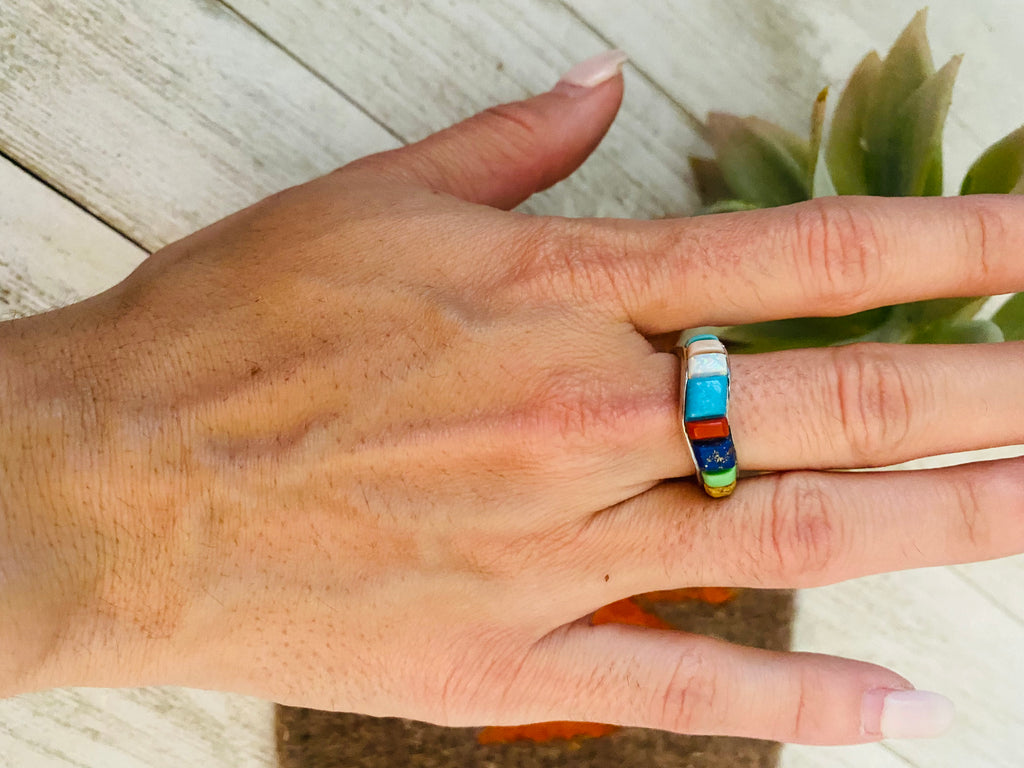 Navajo Sterling Silver & Multi Stone Inlay Band Ring Size 6.5