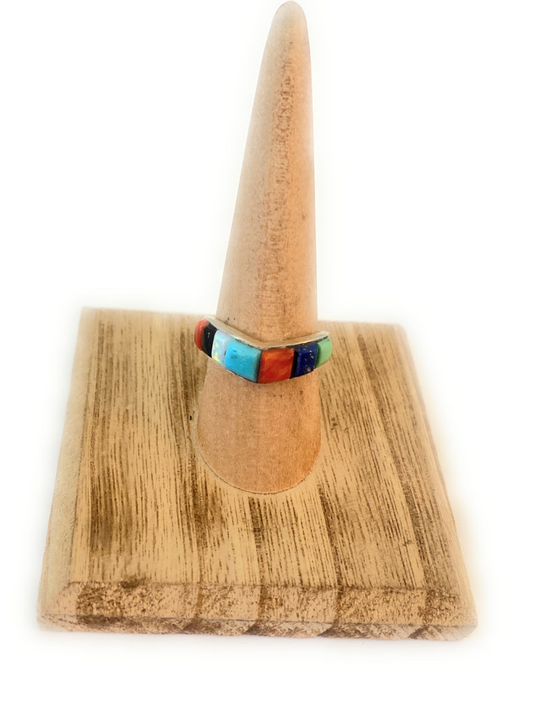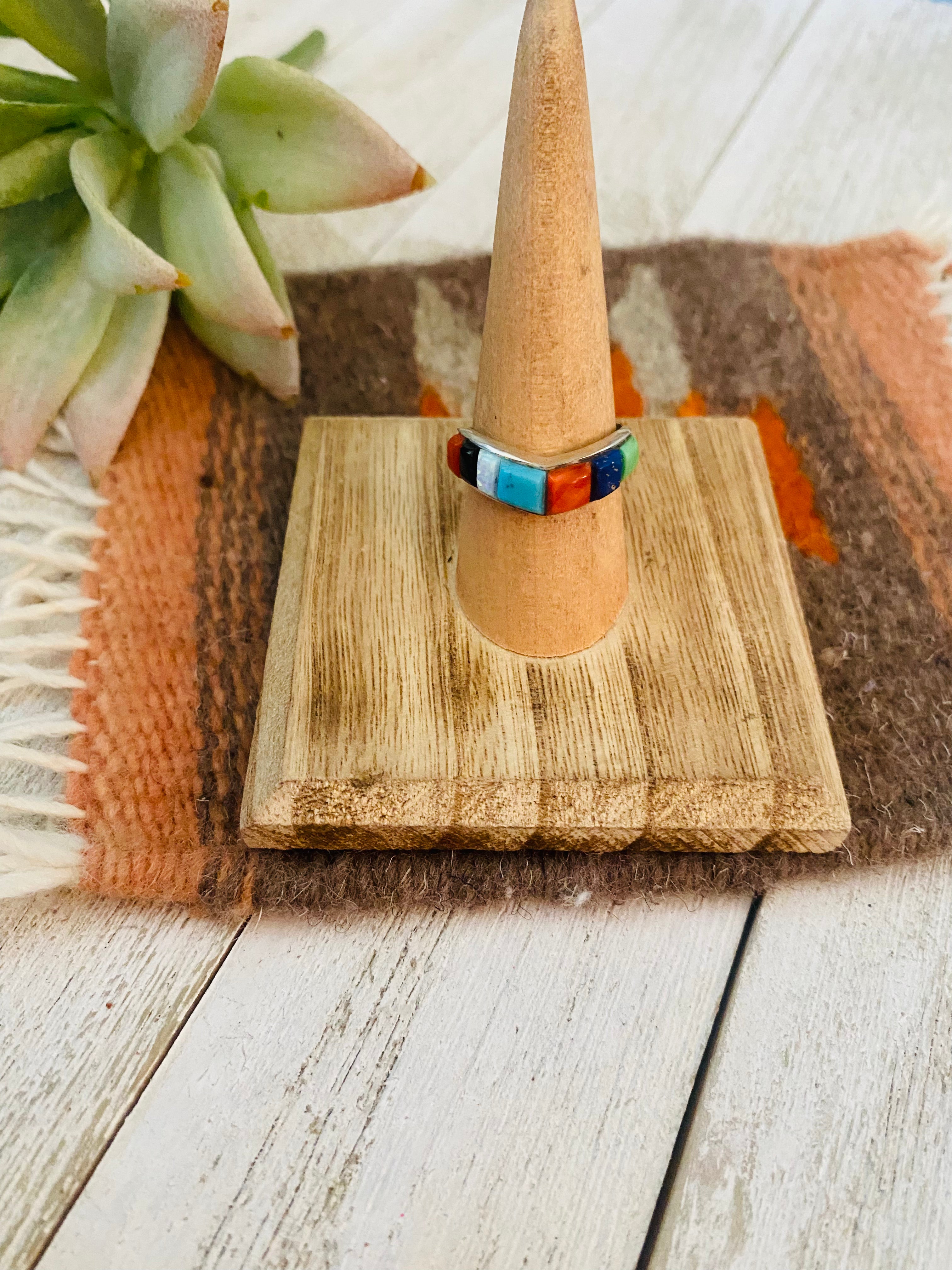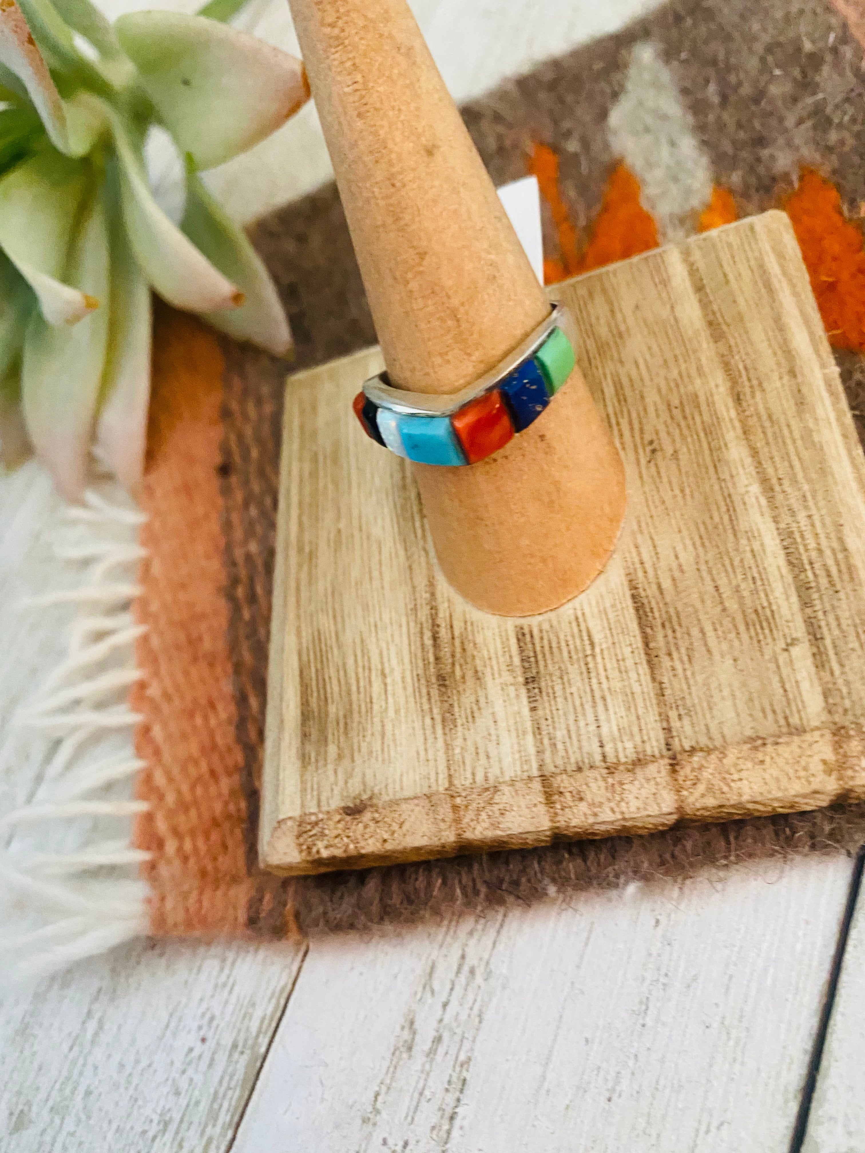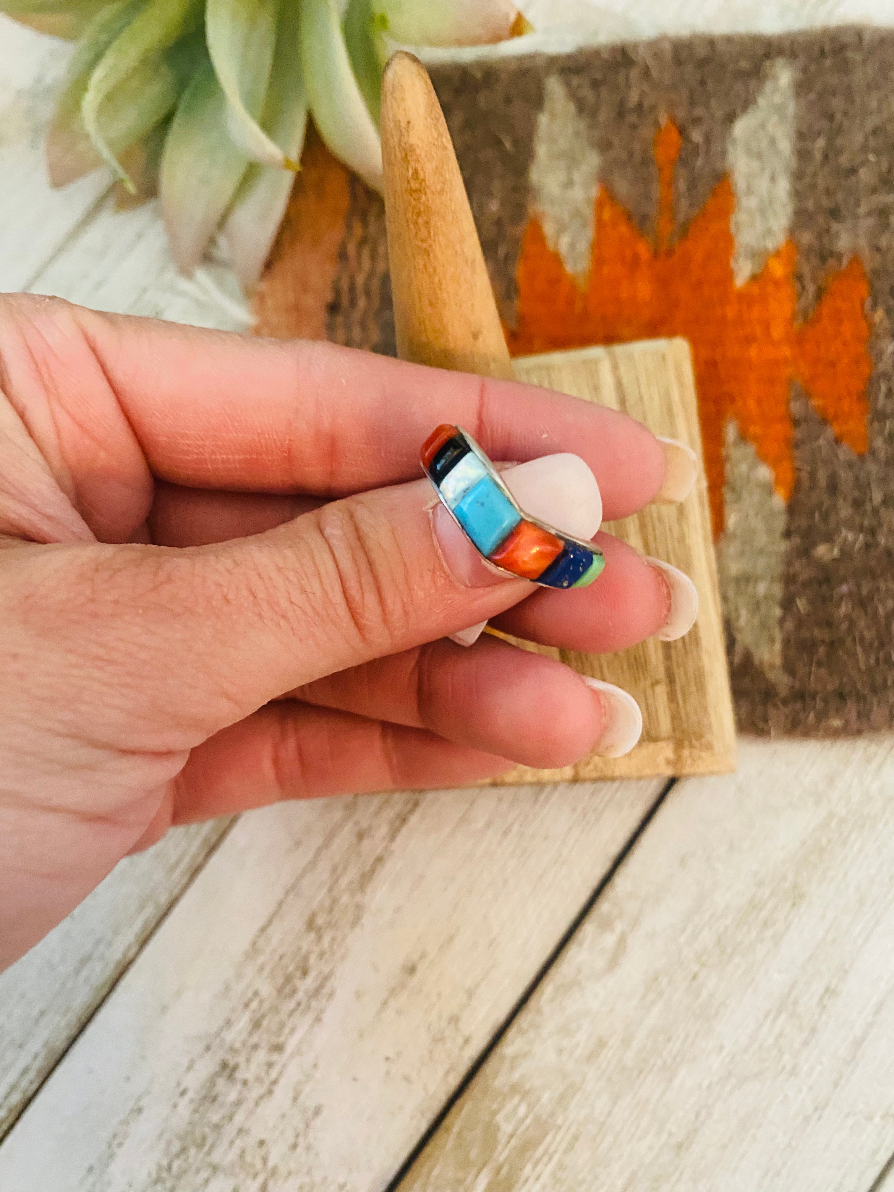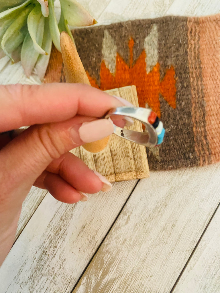 Navajo Sterling Silver & Multi Stone Inlay Band Ring Size 7.5